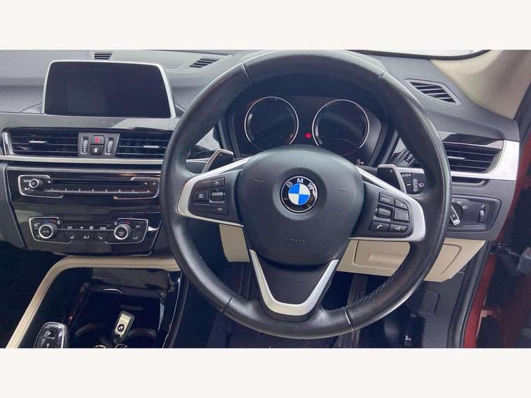 Active Guard incl speed limiting and lane departure functions with auto steering, and front collision warning with brake intervention, Ambient temperature display, Attentiveness assist, Automatic tailgate opening, BMW Online services, BMW remote services, BMW Teleservices, Lights on warning, On board computer, Outside temperature gauge, Real time traffic information, Service interval indicator, Servotronic PAS, Speed limiter, Stop/start button, Tyre puncture warning system, Electronic differential lock, Performance Control, BMW professional radio with CD player, DAB Digital radio, USB/audio interface, Adaptive LED Headlights, Adjustable headlights, Body colour bumpers, Body colour door handles, Body colour door mirrors, Electrically adjustable and heated door mirrors, Exclusive door sill finishers, Fingertip control / anti-trap function on electric window, Follow me home headlights, Front and rear electric windows, Front fog lights, Heat insulating tinted glass, Heated windscreen washer jets, LED daytime running lights, Rain sensor including auto headlights activation, Rear window wash/wipe, Twin chrome exhaust tailpipes x2, Welcome home function, 12v power point in centre console, 12V power socket in passenger footwell, 3 rear headrests, 3 spoke sport leather steering wheel, 4 grab handles, Black door sill finishers with BMW designation, Boot light, Centre console with cupholders, Dakota leather upholstery, Driver/passenger sunvisors with ticket holders, Drivers folding storage compartment, Dual zone automatic air conditioning, Front and rear door armrests, Front centre armrest/sliding cover, Front passenger isofix child seat attachment, Front/rear adjustable head restraints, Heated front seats, Illuminated glovebox, Isofix rear child seat preparation, Leather gearknob/gaiter/handbrake grip, LED ambient lighting in door trim, Luggage area underfloor compartment, Luggage compartment lighting, Multifunction steering wheel, Rake/reach adjustable steering wheel, Sliding/split/reclining 40/20/40 rear seat with 60/40 split rear seat base, Steering wheel gearshift paddles, Velour floor carpets, Extended storage package - X1, 3 rear 3 point seatbelts, ABS/EBD, Audio/visual collision warning system, Automatic Stability Control (ASC), BMW emergency call, CBC - (Cornering brake control), Crash Sensor - activates hazard/interior lighting + unlocks doors, Driver/Front Passenger airbags, Driver/front passenger side airbags, DSC - Dynamic Stability Control, Dynamic brake control, Dynamic Traction Control - DTC, Electronic parking brake, Front and rear head airbags, Front passenger airbag deactivation, Front seatbelt force limiters, Hill start assist, Pyrotechnically pre-tensioned front seatbelts, Rear door child safety locks, Seatbelt warning, Tyre pressure monitor, Warning triangle and first aid kit, Auto door lock when driving, Central locking including boot and fuel flap with deadlocks, Engine immobiliser, Locking wheel nuts, Remote control Thatcham category 1 alarm, High gloss black centre console, Low rolling resistance tyres,