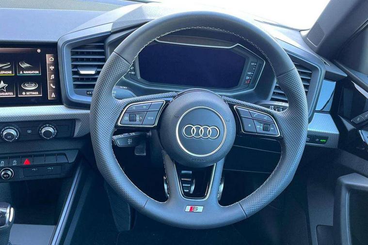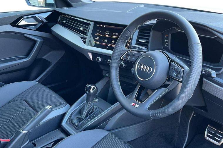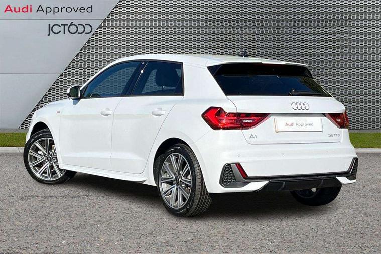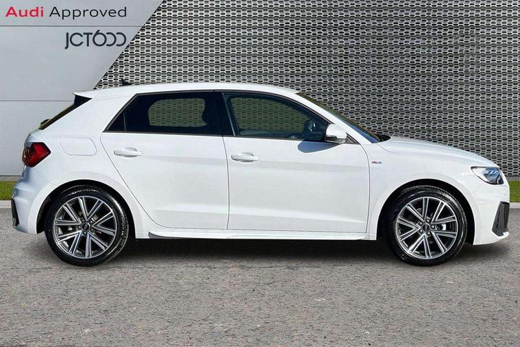 10.25" Digital instrument cluster display classis style instrument dials + speed, odometer, time, outside temperature, telephone menu + fuel level warning, Advanced driver attention and drowsiness monitor, Audi connect emergency call and service, Audi drive select, Audi remote connect and control, Audi smartphone interface, Bluetooth interface, Camera based traffic sign recognition, Cruise control, Driver's information system, Electromechanical power steering, Lane departure warning system, Rear parking sensor, Service interval indicator, Speed limiter, Start stop system with recuperation, Voice control system, Washer fluid level indicator, Sports suspension, 2 x USB type C connection points, 6 loudspeakers, DAB Digital radio, MMI radio plus with 10.1" colour MMI display screen and MMI touch, Auto dimming rear view mirror, Body coloured door mirrors, Door sill trims with aluminium inlays and S line logo in front, Electric front and rear windows, Electrically adjustable, heated, folding door mirrors with integrated LED side indicator, Front side air inlets in grained matt black and C frame in anthracite black, Headlight cleaning system, Heat insulating glass windscreen and side windows, Heated rear windscreen, High level LED brake light, LED daytime running lights, LED headlights with range control LED rear lights + dynamic rear indicators, Light and rain sensors, Privacy glass, Radiator grille and rear diffuser in matt anthracite black, Radiator protective grille frame in matt aluminium silver, Rear fog lights, Rear side wing doors, Rear wiper, S line badges on front wings, Side front spoiler lips in grained matt black, 12V socket in centre console with two cup holders, 3 rear seats with headrests, 3 seat bench in 2nd row, 3 spoke leather multi-function plus steering wheel features S badging and grips in perforated leather with contrast stitching, 40:60 Split folding rear seat or fully collapsed, Black cloth headlining, Front and rear velour black floor mats with contrast stitching in fine silver, Front head restraints, Front passenger seat, Height and reach adjustable steering wheel, Interior lighting includes roof module, front and rear reading lights and right luggage compartment lighting, ISOFIX child seat mounting for front passenger and outer rear seats including top tether attachment point of outer rear seats, Leather gear knob with aluminium trim, Leather handbrake grip, Manual air conditioning, Manual height adjustable for driver and front passenger seat, Manually adjustable lumbar support in front seats, Stainless steel pedals, Ambient lighting package - A1, Luggage compartment pack - A1, S line exterior styling pack - A1 Sportback, 3x3 point rear seatbelts, Audi pre-sense front with pedestrain and cyclist recognition, Brake assist function, Driver and front passenger airbag with front side and head airbags, Electronic Stability Control including ABS, EBD, ASR and EDL, Front passenger airbag deactivation switch, Hill hold assist, Manual rear child locks, Seatbelt height adjustment for front seats, Seatbelt monitoring, Tyre pressure loss indicator, Warning triangle and first aid kit, Anti theft alarm, Anti theft wheel bolts, Immobiliser, Remote control key with safelock, Aluminium trim for control switches, air vents and digital instrument cluster, Black dashboard, Silver grey inlays polygon structure in diamond paint finish, Structured grey accent surfaces insert of air vents, interior door handle recesses and centre console in quartz paint finish,