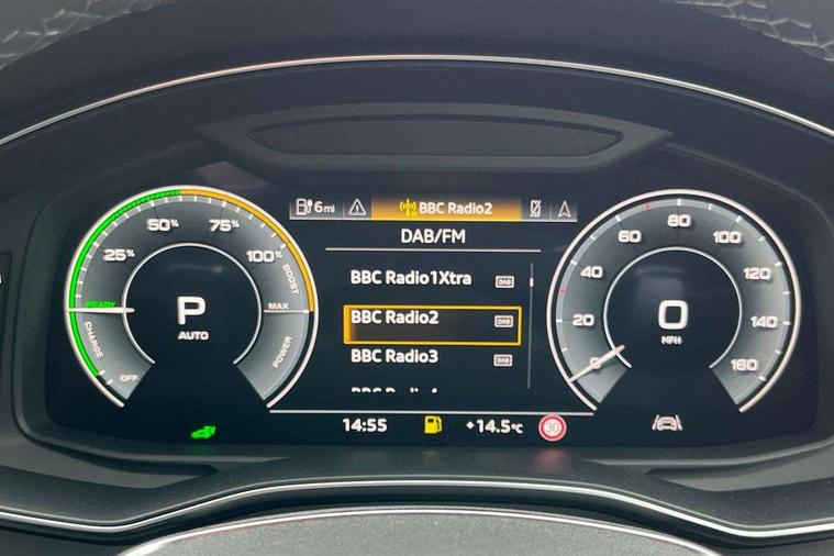 Audi connect safety and service (e-call), Audi connect with Amazon Alexa Integration, Audi drive select, Audi parking system plus - acoustic and visual park assist system for front and rear, Audi virtual cockpit, Automatic start/stop system with coasting functionality, Bluetooth interface, Camera based traffic sign recognition, Electric boot lid release, Lane departure warning system, MMI navigation plus with 10.1" and 8.6" touch screens, Progressive steering, Rear view camera, Service interval indicator, Smartphone interface includes wireless Apple carplay/Android Auto, Voice control system, 3 pin 10 amp domestic charging cable, 52 litre fuel tank, 7.4 kW onboard charger, Compact charging system, Hybrid propulsion system, Industrial connector CEE 32A, 230V, long and straight for the e-tron charging system, Mode 3 charging cable for public charging (AC), Sports suspension, Type 2 socket for AC charging, Audi front music interface, Audi sound system, Auxiliary input socket, DAB Digital radio, USB connection, Audi beam, Electric front/rear windows, Electrically adjustable heated and folding + automatically dimming exterior mirrors with memory function, Frameless auto dimming interior rear view mirror, Front intermittent wipers, Heat insulating darkened glass in side and rear windows, Heat insulating glass in windshield, LED rear lights with dynamic indicators, LED signature front daytime running light, LED third brake light, Matrix LED headlights, Matt black rear diffuser with diffuser strip and tailpipes in chrome, Matt black side air intake grille with inlay in matt aluminium, Omission of output/technology badging, Privacy glass, Radiator grille in anthracite black matt, single frame in chrome and horizontal struts in matt aluminium silver, Rain and light sensors, Rear boot, Rear side wing doors, 4 zone deluxe automatic climate control, 40/20/40 split folding 3 rear seat bench in 3 parts with rear centre armrest, Audi phone box light, Black cloth headlining, Electrically adjustable front seats including seat height, fore/aft position, backrest angle and 4-way lumbar with memory for driver's seat, Front and rear floor mats, Front centre armrest, Front head restraints, Heated front seats, Height/reach adjust steering wheel, Illuminated door sill trims with S logo, Illuminated sun visors with vanity mirrors, Leather gear knob, Rear headrests, Single front passenger seat, Stainless steel pedals and foot rest, Tool kit and car jack, Black styling package plus - A6 Black edition, LED Interior Ambient Lighting Pack - A6, Non smoking pack - A6, S line exterior style pack - A6, 3 point seatbelts on all seats, Airbags - Front side, front and rear including head, Audi pre-sense front, EBD - Electronic brakeforce distribution, Electromechanical parking brake, Electronic Stability Control (ESC) including ABS, ASR and EDL, Extended pedestrian protection measures, ISOFIX child seat mounting for front passenger seat and ISOFIX child seat mounting with Top Tether for outer rear seats, Manual child proof rear door locks, Seatbelt monitoring, Tyre pressure warning light, Warning triangle and first aid kit, Anti theft alarm with tow away protection, Anti-theft wheel bolts and wheel loosening detection, Immobiliser, Keyless Go, Remote central locking, Carbon twill inlays, Tyre repair kit,