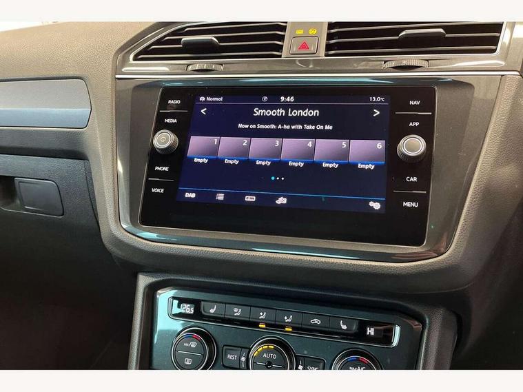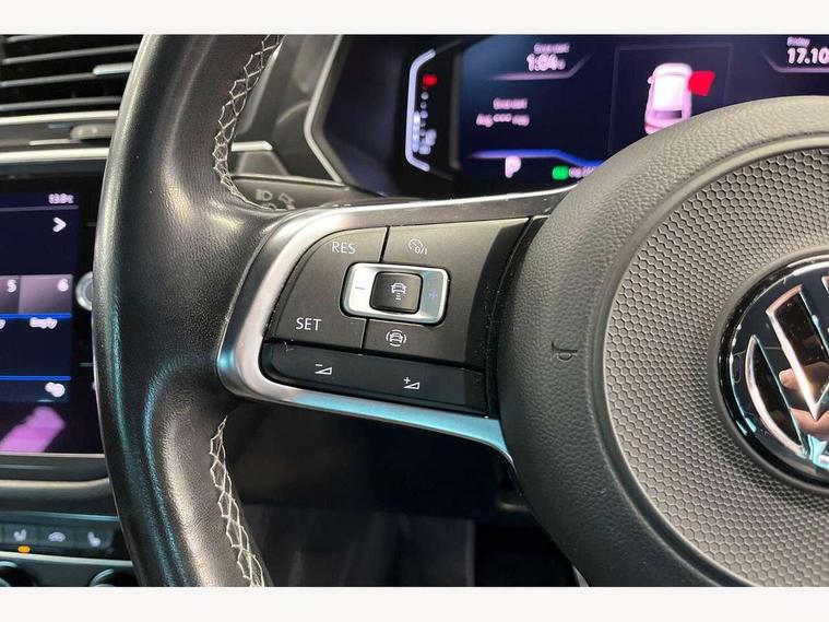 Active information display, Adaptive cruise control, App-Connect, Bluetooth phone integration system, Car-Net Security and Service, Coasting function, Distance control assist, Drive mode selector, Driver profile selection, Fatigue detection system, Front assist, radar sensor controlled distance monitor, city emergency braking + predictive pedestrian protection, Instrument cluster, Lane assist, Low washer fluid warning light, Outside temperature display, Service interval indicator, Speed limiter, Start/Stop function, Warning lights, Misfuel prevention device for diesel engine, XDS electronic differential lock, 2x USB sockets in front, 4 X 20 watt output, DAB Digital radio, SD card slot, Simultaneous pairing of 2 compatible mobile devices, SMS functionality - read, compose and send SMS messages using touch-screen display, Title and cover art display, 3D effect cherry red LED rear tail lights, Auto dimming interior mirror, Automatic activation of hazard warning lights, Black door protector with chrome inserts, Body colour door handles, Body colour door mirrors, Body coloured bumpers, Chrome side body trim, Chrome side window surrounds, Chrome trimmed radiator grille, Coming/leaving home lighting function, Dusk sensor + auto driving lights, Electric folding door mirrors, Electric heated + adjustable door mirrors, Electric panoramic sunroof with sunblind, Front air intake with chrome strip, Front and rear electric windows, Heated rear window, High level 3rd brake light, LED headlights with dynamic light assist daytime running lights and cornering front fog lights, LED rear number plate lights, Rain sensor windscreen wipers, Rear tinted glass from B-pillar backwards approx 65% tinted, Rear windscreen washer and wiper with interval delay, Side door sills with chrome inserts, Side skirts and rear bumper with chrome insert, Silver rear diffuser trim, Silver roof rails, Silver under body guard, Windscreen wipers/ intermittent wipe + 4 position delay, 12V Accessory socket in centre console, 3 rear headrests, 3 zone climate control, 4 load lashing points, 40:20:40 split folding rear seats, Bag hook in luggage compartment, Foldable passenger seatback, Front + rear carpet mats, Front centre armrest with 12v socket, Front centre armrest with storage + rear 2 air vents + cupholders, Front seat back storage pockets, Front seatback folding tables, Height/reach adjust steering wheel, Illuminated driver/passenger vanity mirrors, Illuminated scuff plates, Instrument lighting white adjustable panel illumination, Interior light with delay, Isofix Preparation 2 Rear child seats, Leather gear knob, Load through provision with 2 cupholders when folded, Lockable cooled glovebox, Luggage compartment lighting, Luggage compartment side storage, Map pockets on front seats, Passenger seat height adjuster, Passenger underseat drawer, Rear cupholders, Removable luggage cover, Sliding/reclining rear seats, Storage compartment in driver's door, Storage compartment in passenger's door, Storage compartment in rear doors, Storage tray on dashboard, Sunglasses storage, Variable boot floor, Ambient lighting pack - Tiguan, Winter pack - Tiguan/Tiguan Allspace, 3 rear 3 point seatbelts, ABS+EBD+Brake assist, Active bonnet, Active pedestrian safety system, Curtain airbags, Driver/Front Passenger airbags, Driver/Passenger whiplash optimised head restraints, Drivers knee airbag, DTC - Drag torque control, Electronic parking brake with auto hold, ESP with EDL + ASR, First aid kit, Front side airbags, Front ventilated disc brakes and rear disc brakes, Head airbag system, Height adjustable front 3 point seatbelts + pretensioners, Hill hold control, Passenger airbag deactivate switch, Passenger knee airbag, Proactive preventive occupant protection, Rear side airbags, Rigid safety cell with front and rear crumple zones, Seatbelt warning lamp and buzzer, Two tone horn, Warning triangle, Alarm with interior protection, Electronic engine immobiliser, Remote central locking with 2 remote folding keys, Chrome door trim inserts, Piano black interior trim,