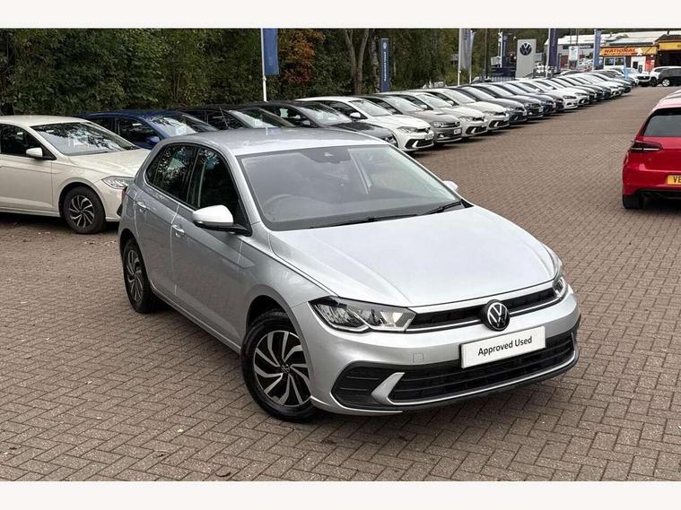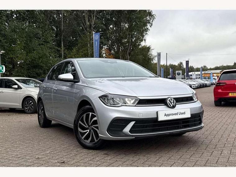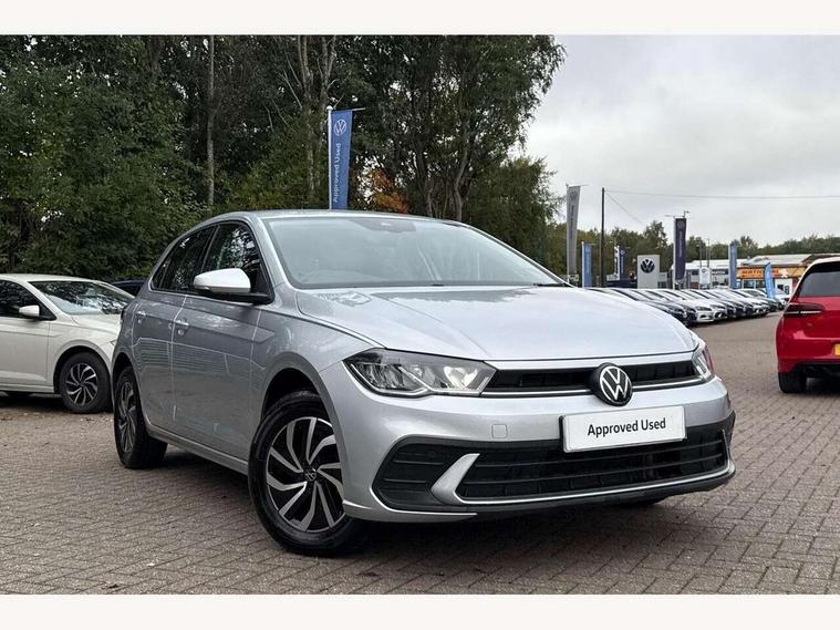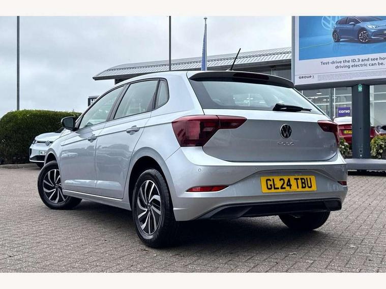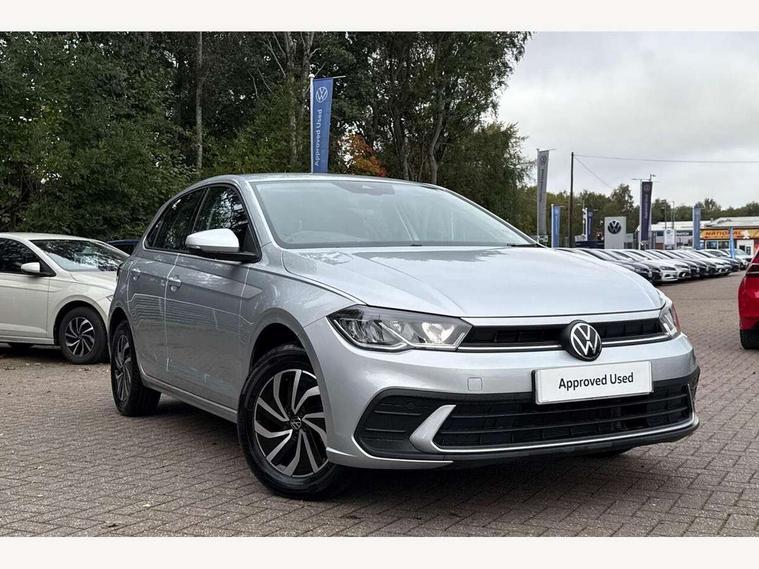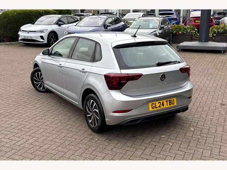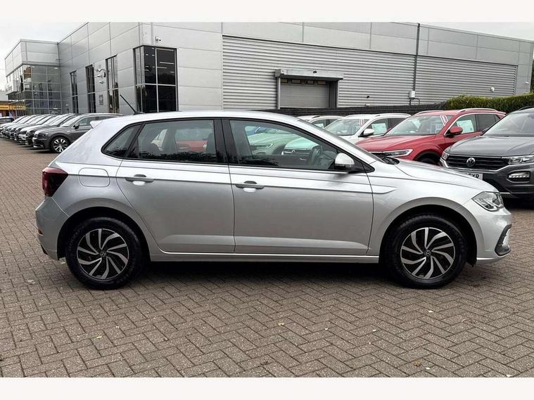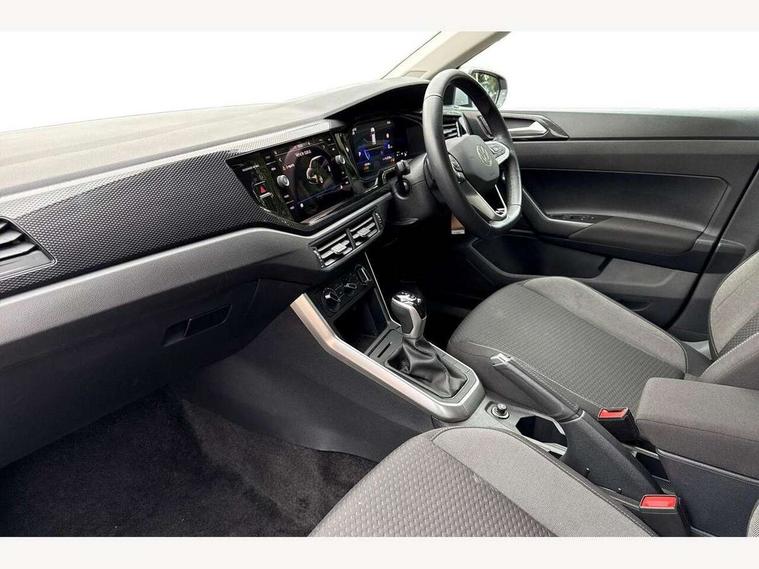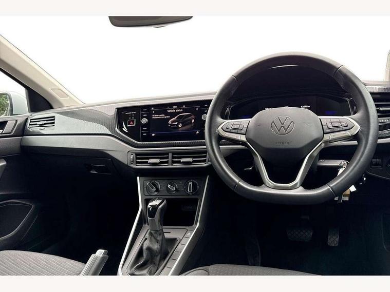 Adaptive cruise control with follow-to-stop and speed limiter, Advanced driver attention and drowsiness monitor, Bluetooth mobile phone interface, Dynamic road sign display, Emergency call service, Power assisted speed sensitive steering, Preparation for navigation system with media and internet package, Preparation for We connect and We connect plus, Speedo and rev counter, electronic odometer, trip, service interval display and exterior temperature gauge, Standard rear axle, Travel Assist - Lane keeping system and traffic jam assist, Travel assist including emergency assist, Trip computer, Warning signal and warning light for front and rear seatbelts not fastened, Washer fluid level indicator, Wireless app connect, Front wheel drive, Rear shock absorpion, Start-stop system with battery regeneration (recuperation - energy recovery during braking), DAB Digital radio, Diversity antenna for FM reception, Automatic dimming interior rear view mirror, Automatic headlight control with LED separate daytime running lights with coming/leaving home function, Body colour bumpers with chrome inserts, Body colour door handles, Body colour door mirrors, Electric front windows, Engine badge deletion, Headlight range adjustment, Heat insulating and laminated safety glass windshield, Heat insulating darkened glass in side and rear windows, Heat insulating glass windscreen, LED Headlights, LED rear combination lamps, Power folding adjustable/heated exterior mirrors and front passenger exterior mirror lowering function, Rain sensor, Rear electric windows, Rear fog light, Rear side wing doors, Rear windscreen washer and wiper with interval delay, Third brake light, 12V power socket in centre console, 2 front and 2 rear reading lights with switch off delay and dimmer, 2 USB-C ports in the front, 2 USB-C charging sockets on the center console in the rear, 3 rear head restraints, 60/40 split folding rear seat and rear seat bench not split, Ceramique roof lining, Chrome plated radiator grille inserts, air vent surrounds and light switch surrounds, Door and side trim panel, Driver and front passenger seat height adjustment, Driver/passenger sunvisors with illuminated vanity mirrors, Front centre armrest, Front seat backrest storage pockets, Front standard seats, Handbrake lever handle in leather, Hartley/Thomas cloth upholstery, Headliner in recycled material, Isofix child seat preparation easy-fit (for two outer rear seats, and front passenger seat) compatible with I-size, Leather trimmed gear knob, Luggage compartment cover, Luggage compartment lighting, Removable luggage compartment floor, Single front passenger seat, Standard climatic zones, Standard pedal cluster, Three spoke leather wrapped multifunction steering wheel with shifting paddles, Light and vision pack - Polo, 3 point height adj front seatbelts + pretensioners, 3x3 point rear seatbelts, ABS, Driver and front passenger airbag with front passenger airbag deactivation, Drivers and front passengers safety optimised head restraints, ESC (Electronic stability control) + EDL (Electronic Differntial lock) and ASR (Traction control), Extended and predictive pedestrian/ cyclist protection, Front assist with autonomous emergency braking (for Adaptive Cruise Control ACC up to 130 mph), Front curtain and side airbags with center airbag, Front disc brakes, Hill hold control, Manual child lock in rear doors, Rear drum brakes, Single tone horn, Tyre pressure loss indicator, Alarm with interior protection, Anti-theft alarm system with interior monitoring, backup horn, and towing protection, Anti-theft wheel bolts, Electronic engine immobiliser, Lava stone black gloss/matt decorative inserts in dash and front door panels, Low rolling resistance tyres,