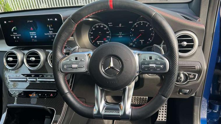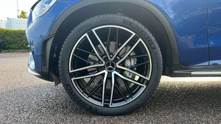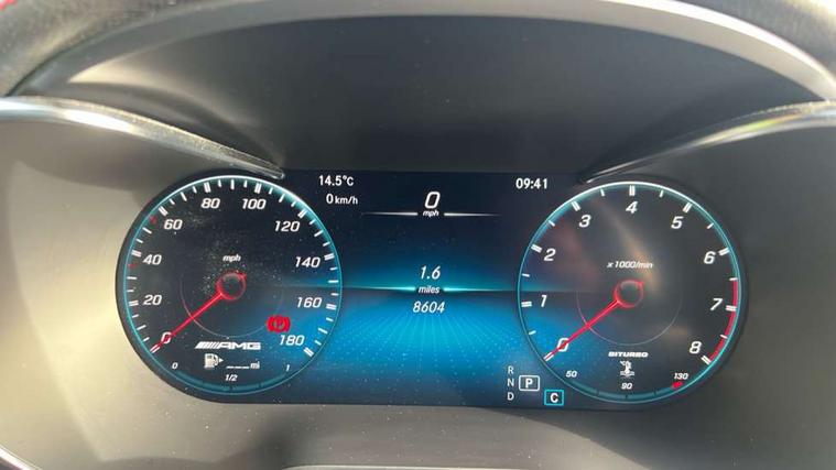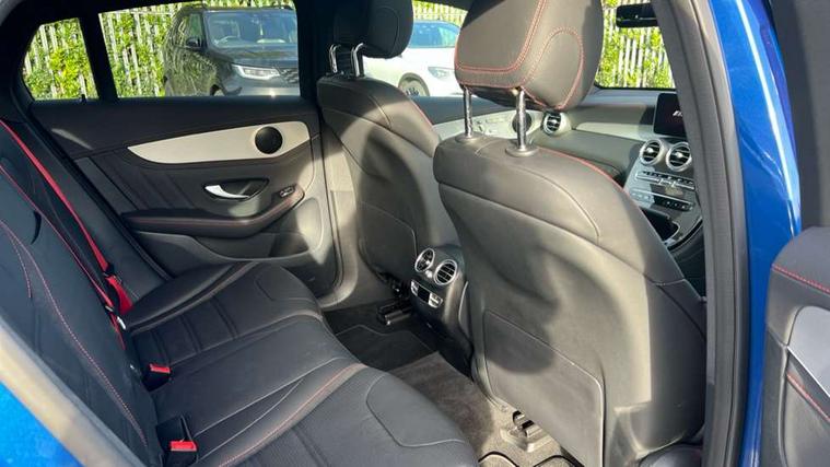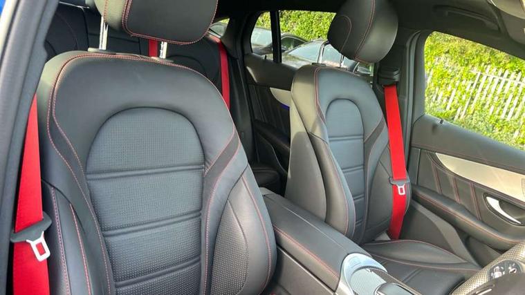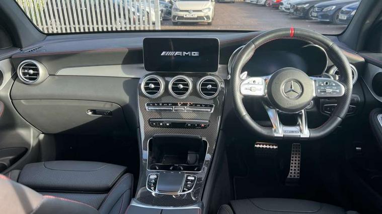 360 degree camera, Active parking assist with parktronic system, Attention assist, Bluetooth interface for hands free telephone, Collision prevention assist plus, Cruise control with speedtronic variable speed limiter, Direct steer speed sensitive steering, DYNAMIC SELECT with a choice of driving modes (ECO, Comfort, Sport, Sport+ and Individual), Easy pack automatic powered tailgate, eCall emergency call system, ECO start/stop function, Hard disk navigation, Hey Mercedes Voice activation, Instrument cluster with12.3-inch digital instrument cluster display. High resolution instrument cluster screen with choice of three display styles, MBUX Interior assistant, Mercedes connect me with remote online services, Multi function trip computer, Outside temperature display, rear seatbelt status indicator, Remote boot release, Service indicator (ASSYST), Smartphone integration with Apple CarPlay and Android auto, Traffic sign assist, 66 litre fuel tank, AMG electronic rear axle limited slip differential lock, AMG performance 4MATIC+, AMG ride control air suspension for front and rear axles with continuously adjustable damping, AMG SPEEDSHIFT TCT 9G 9-speed automatic transmission with steering column gear selector, DIRECT SELECT steering wheel gearshift paddles, Petrol Particulate Filter (PPF), Advanced sound system, MBUX multimedia system with DAB digital radio and touchpad, Media display 10.25-inch touchscreen display, Pre installation for Mercedes Benz Link, USB ports x 2 in centre console, Adaptive brake lights, Adaptive high beam assist, AMG bodystyling front apron in jet wing design with silver chrome front splitter, AMG bodystyling with 2 black louvres in outer air intakes, AMG bodystyling with rear apron and diffuser fins, AMG bodystyling with side sill panels, AMG Performance exhaust, AMG radiator grille with black vertical louvres and trim strip in high gloss chrome, AMG spoiler lip, Body colour door mirrors, Body coloured bumpers, Electric sliding glass sunroof, Electric windows one touch open/close, Electrically adjustable and heated door mirrors, Front, side and rear exterior chrome trim, Headlamp assist automatic headlamp activation, High level LED brake light, LED high performance headlamps with integrated LED daytime running lights, LED tail lamp, Motor way mode function and locator lighting, Privacy glass with dark glass from B pillar backwards, Rain sensor windscreen wipers, Range adjustable headlights, Rear side wing doors, Rear wiper, Roof spoiler, Running boards, Tinted glass all round with single layer safety glass, Tinted rear windows, Two chrome plated tailpipe trim elements, Variable front intermittent wipers, 2 way rear head restraints, 3 seat bench in 2nd row, 40:20:40 split folding rear seats, Ambient lighting, AMG floor mats with edging and embroidered AMG lettering, AMG illuminated door sills, AMG sports seats, Artico man-made leather upper dashboard with contrast topstitching, Automatic child seat recognition sensor, Black roof lining, Dividing net - rear, Double cup holder in centre console, Easy-pack removable load compartment cover, Electric height/reach adjustable steering column, Flat bottomed multifunction sports steering wheel in black nappa leather, embossed in central grip, with silver chrome steering with red topstitching, Front armrest with storage box, Front door sills with Mercedes Benz lettering, Front head restraints, Front passenger seat, Heated front seats, Heated steering wheel, Illuminated and lockable glove compartment, Leather upholstery, Rear top tether child seat ISOFIX attachment, Sports pedals with stainless steel surfaces and rubber studs, Steering wheel with touch control buttons, THERMOTRONIC 3 zone automatic climate control, Interior lighting pack - GLC, Memory pack - GLC, Mirror pack - GLC, Storage pack - GLC, 3 rear 3 point seatbelts, Active bonnet, Adaptive brake system with HOLD function and brake drying in the wet, ASR, Brake calipers with Mercedes-Benz lettering + perforated brake discs, Child proof door locks, Dual-stage airbags - driver and front passenger, driver knee bag and window bags for driver, front passenger and rear passengers, Electronic parking brake, Electronic stability programme (ESP) with curve dynamic assist and cross wind assist, Front and rear seatbelt reminder, Front passenger seat occupancy sensor, Hill hold function, MANUFAKTUR seat belts in red, Tyre pressure monitoring system, Warning triangle and first aid kit, Alarm system/interior protection/immobiliser, Automatic door locking, Keyless Go entry and starting function, Remote central locking, AMG carbon-fibre with light longitudinal grain aluminium trim, 21" AMG 5 twin spoke design alloy wheels painted in black with high sheen finish, Summer tyres, Tirefit tyre sealant kit,