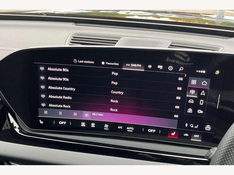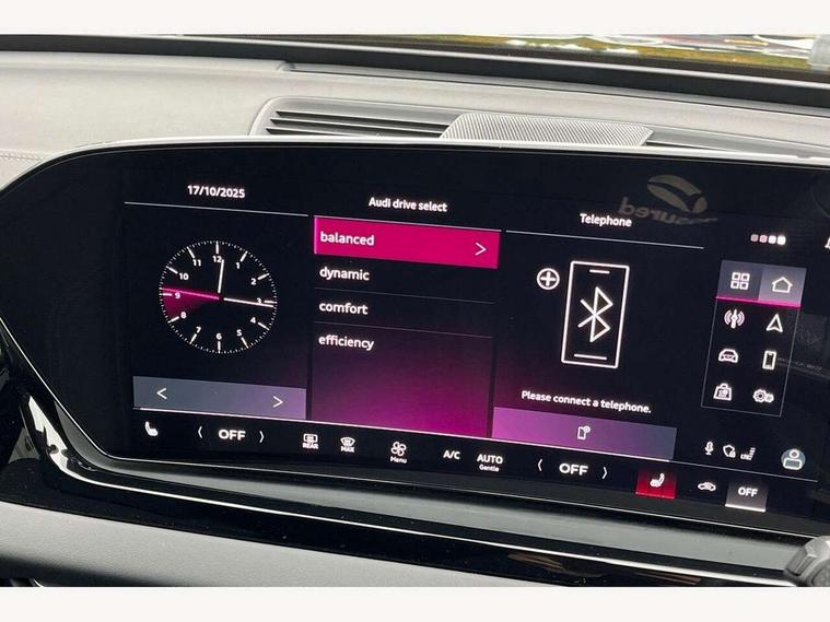Adaptive cruise control, Advanced driver attention and fatigue montior, Audi application store, Audi assistant, Audi connect emergency call and service, Audi drive select, Audi smartphone interface, Audi virtual cockpit plus with 11.9" OLED colour display, Automatic start/stop system with coasting functionality, Camera based traffic sign recognition, Intersection assist, Lane departure warning, MMI navigation plus with high resolution 14.5" OLED touchscreen colour display, Park assist plus, Parking system plus with 360 display, Progressive steering with servotronic, Rear view camera, Swerve assist and turn assist, Traffic sign based speed limiter, Sports suspension lowered by 20mm, 2 USB-C ports in both the front and rear, Audi sound system impressive sound with 10 loudspeakers including centre speaker and subwoofer, 6-channel amplifier with a total output of 180 watts, DAB digital radio reception, Smartphone compartment with wireless charging, Aluminium roof rails, Aluminium window trims, Auto dimming rear view mirror, Body colour door mirrors, Door mirrors - electrically adjustable, heated, folding and auto dimming on both sides, Front and rear electric windows, Front door sill trims with aluminium inlays, illuminated with 'S' logo, High beam assist, LED headlights Plus incl. digital daytime running lights, turning light, all-weather light, motorway light, manouevring light and intersection light, LED rear lights pro incl. dynamic rear indicators and illuminated light strip with animated coming and leaving home function, LED third brake light, Privacy glass, Rear and side windows with heat insulating glass, Rear side wing doors, Rear wash/wipe, S Line badges on the front wings, S line bumpers, radiator grille and diffuser in phantom black and diffuser insert in matt anthracite, White rhombus logo projection light in exterior mirrors, Windscreen with acoustic glazing, 3 rear headrests, 3 seat rear bench, 3 spoke leather steering wheel with multi-function buttons with touch control, flattened on top and bottom, with S badging and contrast stitching, 3-zone automatic climate control, 40:20:40 split folding rear seat bench with centre armrest and cup holders, Comfort front centre armrest, Front and rear floor mats, Front seats with manual adjustment for position and 4-way electric lumbar support, Front sport seats with integrated headrest and S embossed logo, Headlining in black cloth, Heated front seats, i-Size child seat mounting on the front passenger side and outer rear seats, i-Size and top tether on the outer rear seats, Luggage compartment lid, electrically opening and closing, Manual steering column height and depth adjustment, Single front passenger seat, Stainless steel pedals and footrest, Steering wheel grips in perforated leather and shift paddles, Ambient lighting package plus - A5, 3x3 point rear seat belts, Driver airbag, Electric child safety locks, First aid kit with warning triangle and vests, Front emergency brake assist, Front passenger airbag, Front passenger airbag deactivation, Front side airbags with head airbag system and front interaction airbag, Hill hold assist, Seat belt monitoring with rear seat occupant reminder, Tyre pressure loss indicator, Anti theft alarm, Anti-theft wheel bolts, Keyless Go, Accent surfaces and control buttons in gloss black, Black dashboard with contrast stitching, Inlays in matt brushed aluminium with linear embossing, anthracite, Softwrap in leatherette with contrast stitching, Upper and lower interior elements in leatherette, Tyre repair kit,