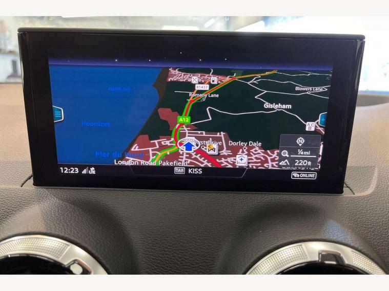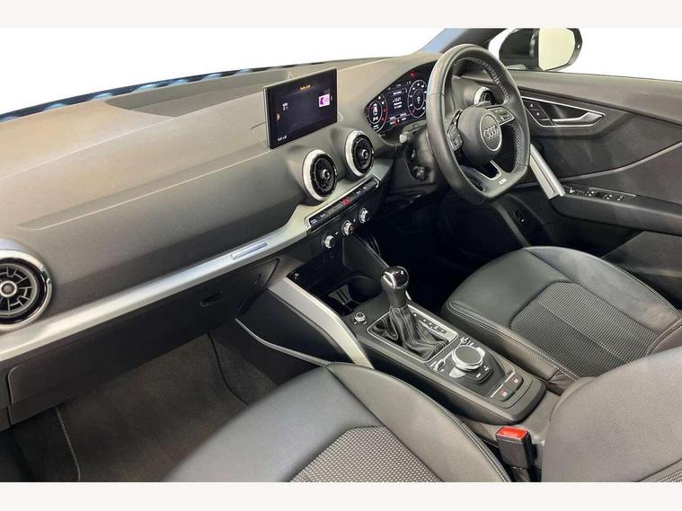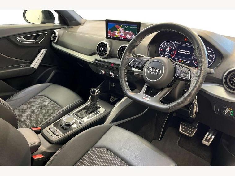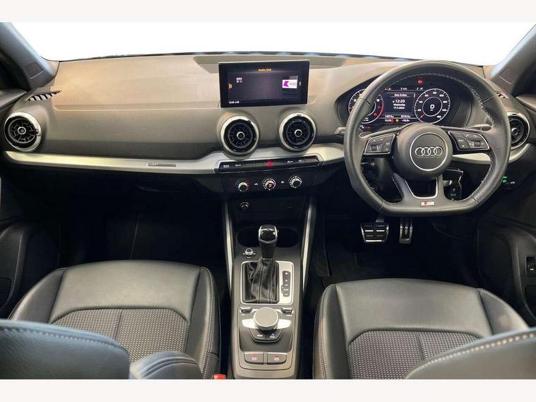 Audi connect navigation and infotainment includes innovative services, Audi connect remote and control connects your vehicle to your smartphone, Audi drive select, Audi drive select - Power steering assistance + engine + gearshift, Audi drive select with efficiency, Audi smartphone interface, Audi virtual cockpit, Automatic start/stop system with recuperation, Bluetooth interface includes bluetooth audio streaming, Cruise control, E-call, MMI navigation plus with MMI touch, Power operated tailgate, Progressive steering, Rear parking sensors, 2 x SDXC card reader, 8 passive loudspeakers, DAB Digital radio, DVD Drive, Auto dimming rear view mirror, Black window trims, Bumper in full body colour paint finish, Electrically adjustable, folding, auto dimming and heated door mirrors with integrated LED side indicators, Front windscreen with grey tinted sunband, LED daytime running lights, LED headlights with LED rear lights, LED third brake light, Privacy glass - dark tinted rear and rear side windows from B-pillar backwards, Rear side wing doors, Rear wiper, Variable front intermittent wipers, Wheel arch trims in manhattan grey, 12v socket in front, 3 seat bench in 2nd row, 3 spoke flat bottomed multi-function leather sport steering wheel with gear shift paddles, 4-way electric lumbar support for front seats including seat height adjustment for both front seat, 60/40 split folding rear seat bench, Black cloth headlining, Front and rear head restraints, Front centre armrest, Front/rear floor mats, Height/reach adjust steering wheel, Illuminated door sill trims with S logo, ISOFIX child seat mounting for front passenger with airbag deactivation and outer rear seat including top tether attachment point for outer rear seats, Single front passenger seat, Stainless steel pedals, Tool kit, Black styling pack - Q2, 3x3 point rear seatbelts, 6 airbags - Front, curtain and front side airbags, Electromechanical parking brake, Electronic stabilisation control including ABS, ASR and EDL, Hill hold assist, Pre-sense front with pedestrian recognition, Seatbelt monitoring, Tyre pressure warning light, Warning triangle and first aid kit, Anti theft alarm, Anti theft wheel bolts, Electronically operated child locks, Remote central door locking, Aluminium interior element, Matt brushed aluminium trim inlays,