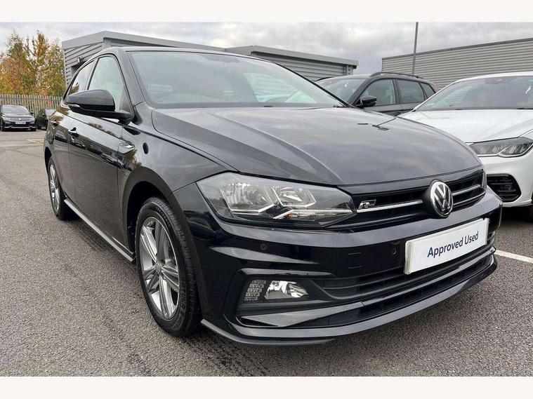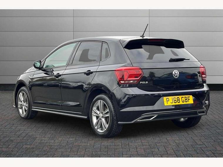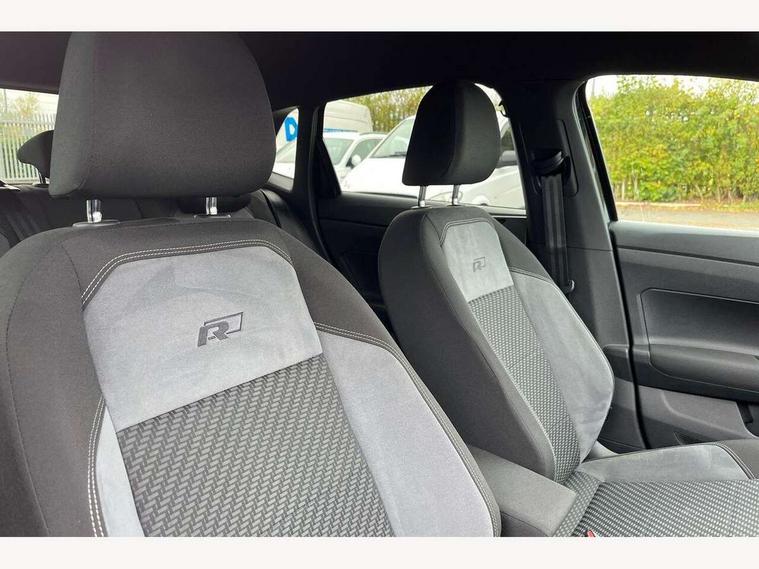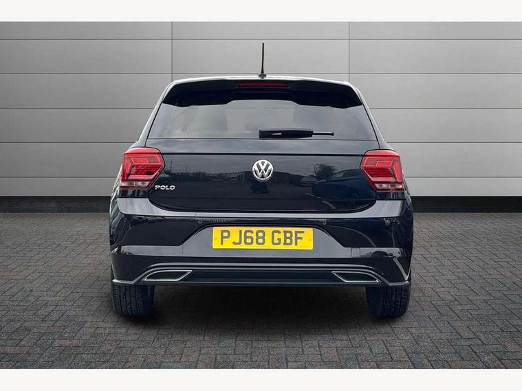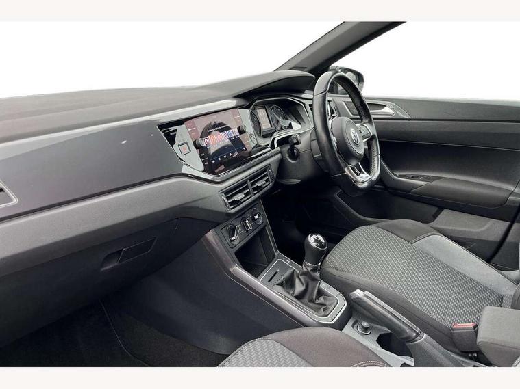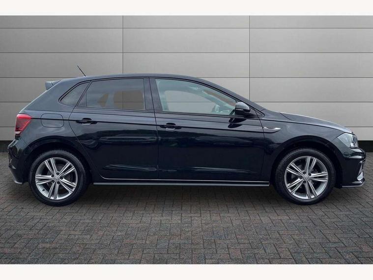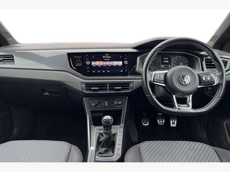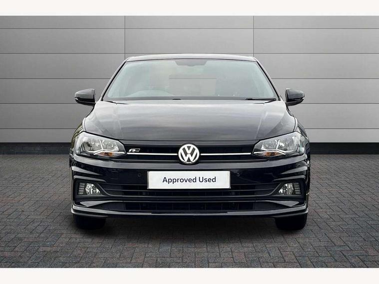 App-Connect, Bluetooth Telephone preparation, Driver alert system, Multifunction colour display, PAS - speed related, Service interval indicator, Start/stop system, Trip computer, Warning buzzer and light for front seatbelts unfastened, Battery regeneration during braking, 6 speakers, Composition media system with radio, glovebox mounted CD, colour touch screen, SD card, aux-in, USB, multimedia interface, DAB Digital radio, Automatic dimming interior rear view mirror with rain sensor, Automatic headlamp activation, Black grille with chrome surround, Black radiator grille with chrome insert, Body colour bumpers, Body colour door handles, Body colour rear spoiler, Body coloured side sills, Chrome insert to lower bumper, Chrome trimmed front air intake surrounds, Electric folding door mirrors, Electric front windows, Electric operated/heated door mirrors, Front fog lights including static cornering, Front wash/wipe with interval delay, Fully galvanised body, Heated rear window with auto timer, High level 3rd brake light, LED darkened rear light clusters, LED daytime running lights, LED rear number plate lights, Manual coming/automatic leaving home lighting function, R Line body kit, Rear diffuser, Rear electric windows, Rear windscreen washer and wiper with interval delay, Stainless steel door sill protection, Twin chrome exhaust tailpipes, 12V power socket in centre console, 2 bag hooks in luggage compartment, 2 cupholders, 3 rear head restraints, 3 spoke steering wheel, 60/40 split folding rear seat, Ambient lighting, Carbon flag cloth upholstery, Chrome-plated electric window button surround, Driver/front passenger seat height adjustment + underseat drawers, Driver/passenger sunvisors with illuminated vanity mirrors, Dust/pollen filter, Front + rear carpet mats, Front centre armrest with storage compartment, Front seat backrest storage nets, Front sport seats, Front/rear reading lights, Glovebox, Handbrake grip button in chrome effect, Height/reach adjustable steering column, Instrument lighting, white adjustable panel illumination, Interior light with delay, Isofix Preparation 2 Rear child seats, Jack and tool kit, Leather multifunction steering wheel, LED footwell lights, Luggage compartment cover, removable, Luggage compartment lighting, Matt chrome gear lever gaiter surround, R Line badge, Stainless steel pedals, Storage compartment in front doors, Storage compartment in rear doors, Storage compartment under front seats, Titanium black headlining, Titanium black roof lining, Variable boot floor, Variable Luggage compartment, Light and sight pack - Polo, R Line styling pack - Polo, 3 point height adj front seatbelts + pretensioners, 3x3 point rear seatbelts, ABS, Automatic post collision braking, Driver/front passenger airbag, Driver/Passenger whiplash optimised head restraints, ESP with EDL + ASR, Front and rear passengers curtain airbag system including front side airbags, Front passenger airbag deactivation, Front/rear disc brakes, HBA (Hydraulic Brake Assist), Hill hold control, Two tone horn, Tyre pressure monitoring system, Alarm with remote central locking and interior protection, Electronic engine immobiliser, Chrome plated electric mirror adjustment light switch surround, Cortina silver air vent surround, Matt chrome interior trim, Snow shadow steel dashboard pads, Steering wheel aluminium inserts, Space saver spare wheel,