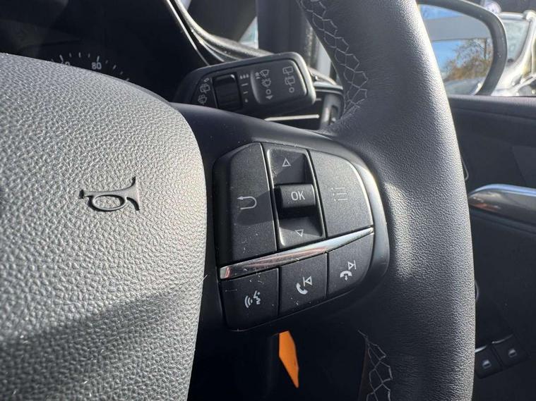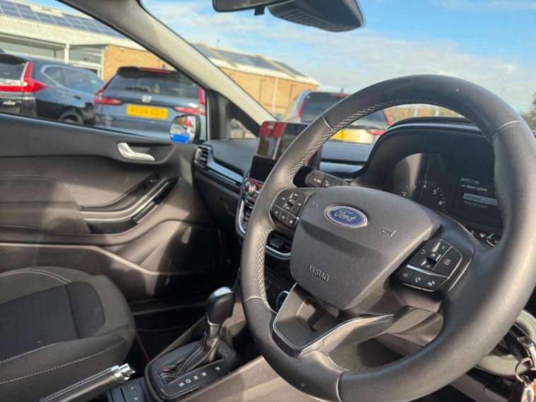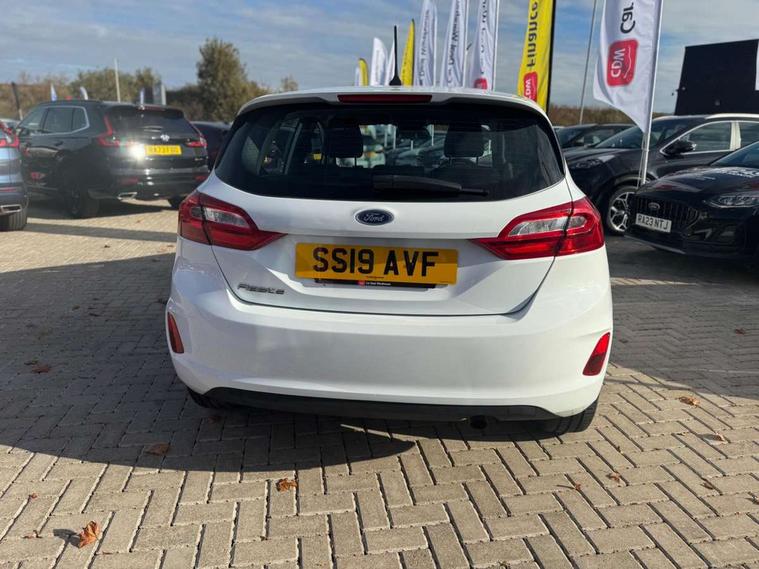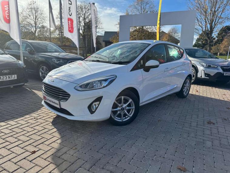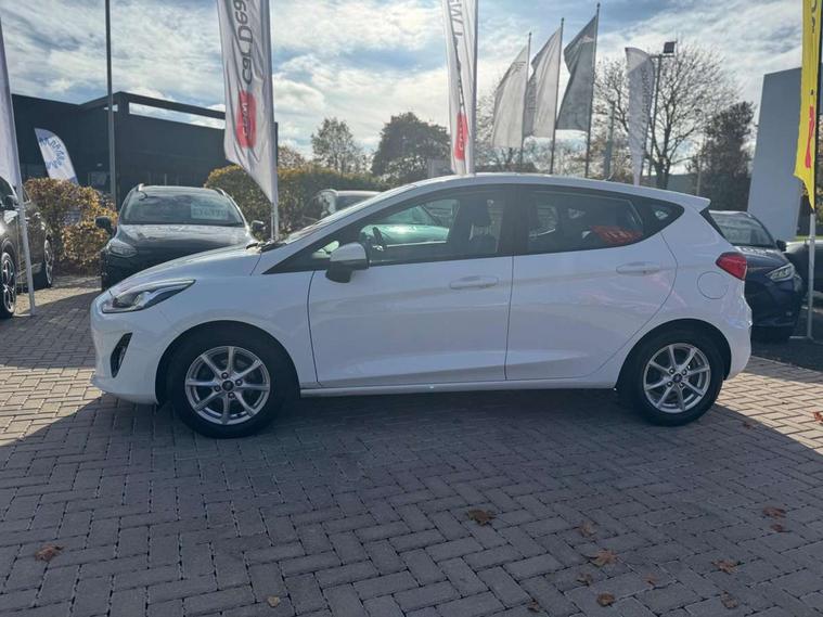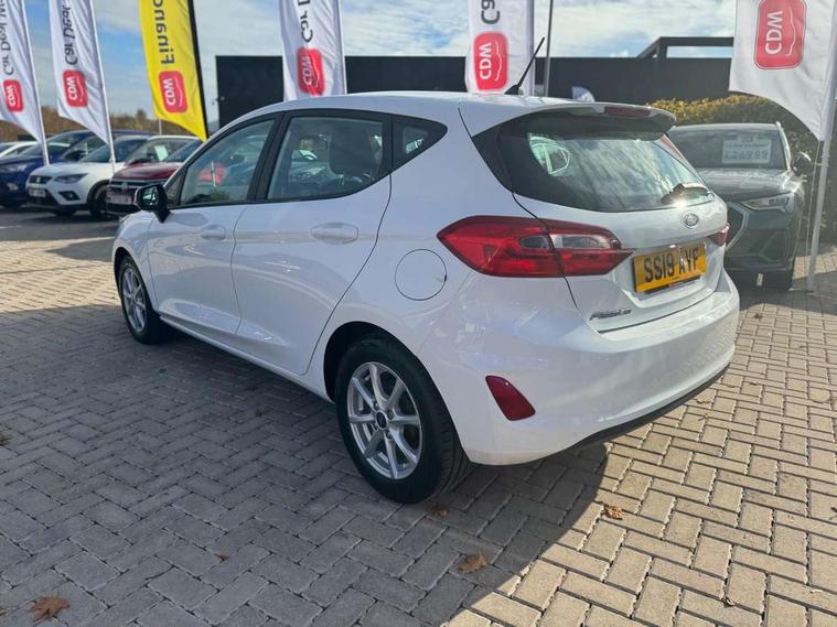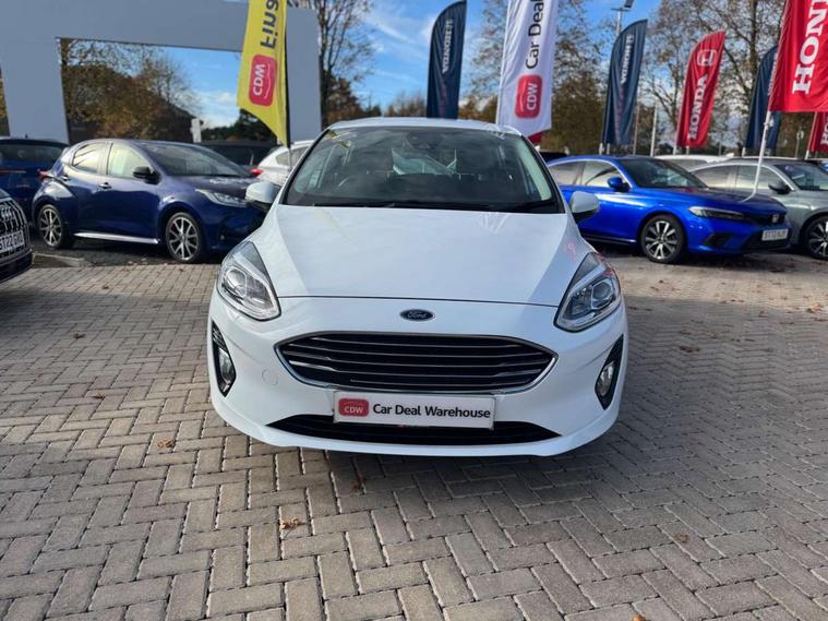 Bluetooth system, Electric power steering, Ford easy fuel, Trip computer, 2 USB ports, Auxiliary input socket, DAB Digital radio, Steering wheel mounted controls, Automatic headlights, Body colour bumpers, Body colour door handles, Body colour electric adjustable heated door mirrors with integral indicators, Body colour rear spoiler, Chrome beltline trim, Cornering front fog lights, Electric front windows/one touch facility, Halogen projector style headlights with static cornering lights + LED daytime running lights, Quickclear heated windscreen, Rear wiper, Tinted glass, Upper front grille chrome surround, 12V Accessory socket in centre console, 3 spoke leather trimmed steering wheel with audio control, 60/40 split folding rear seat, Adjustable head restraints, Boot carpet, Chrome inner door handles, Cloth upholstery, Footwell illumination, Front map reading lights, Front seat and rear pockets, Height adjustable driver's seat, Illuminated glovebox, Leather gear knob, Leather trimmed handbrake handle, Load area light, Luxury woven headliner, Manual air conditioning, Overhead console with sunglasses holder, Pollen filter, Rake/reach adjustable steering wheel, Rear centre head restraint, NCAP Pack - Fiesta, 3 point seatbelts on all rear seats, ABS+EBA, Curtain airbags, Driver and passenger airbags, Drivers knee airbag, Electronic stability control with hill start assist, Front passenger airbag deactivation, Front side airbags, Seatbelt warning, Tyre pressure monitoring system, MyKey system, Remote central locking & engine immobiliser, Thatcham Cat.1 alarm,