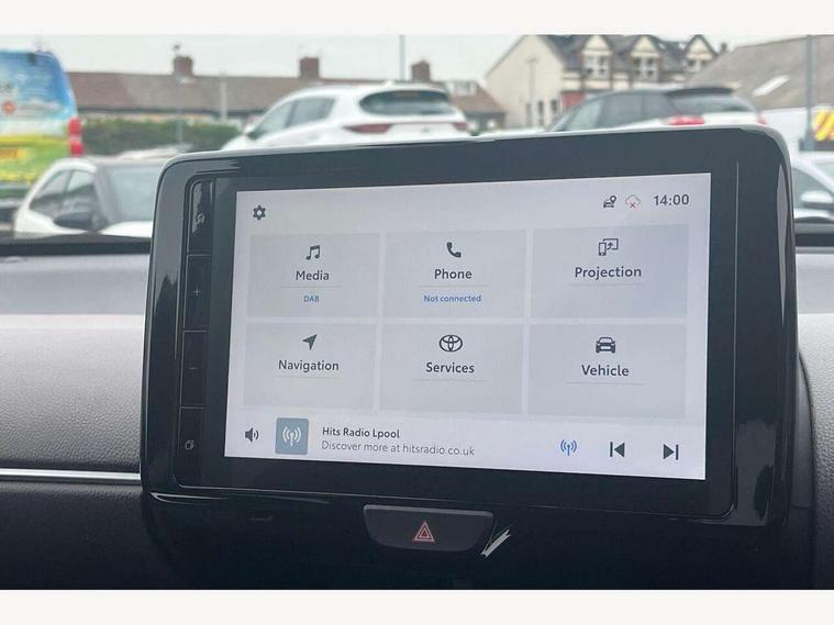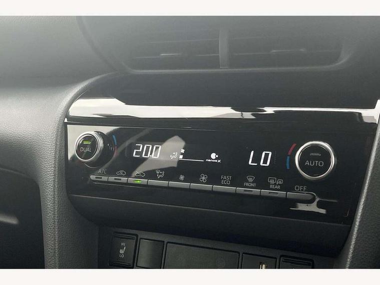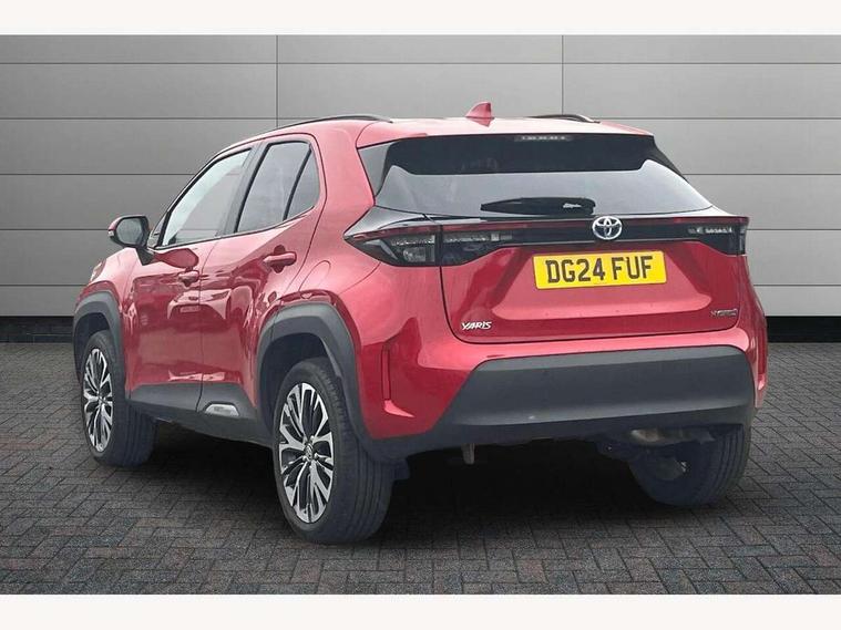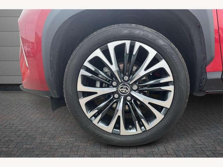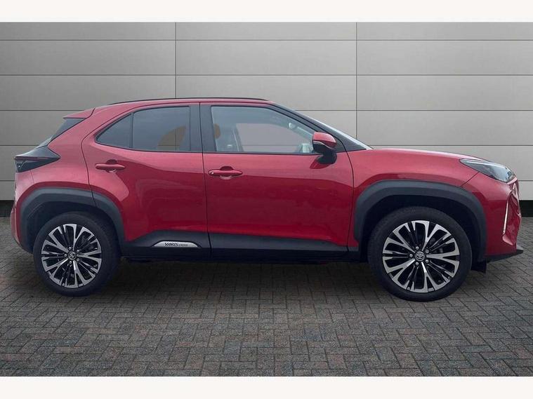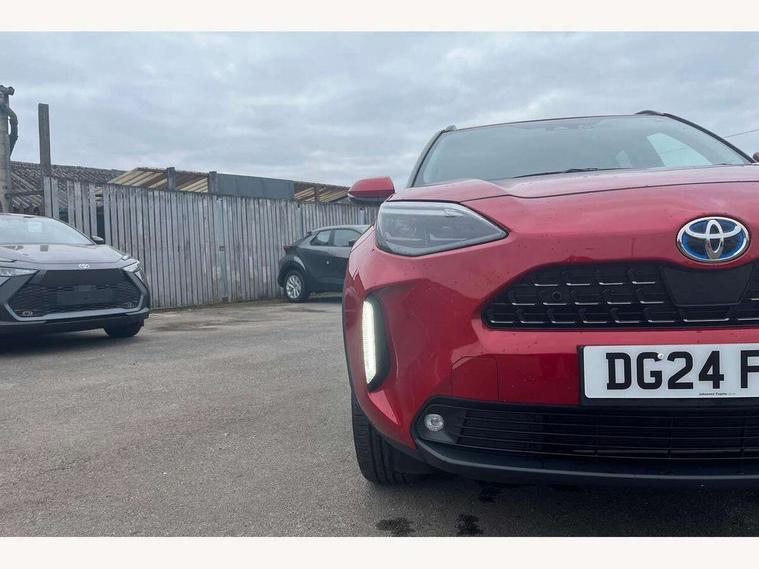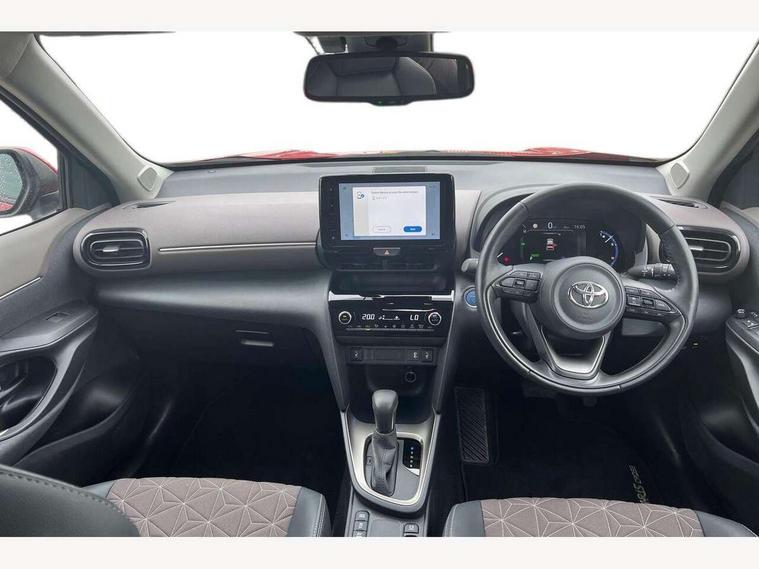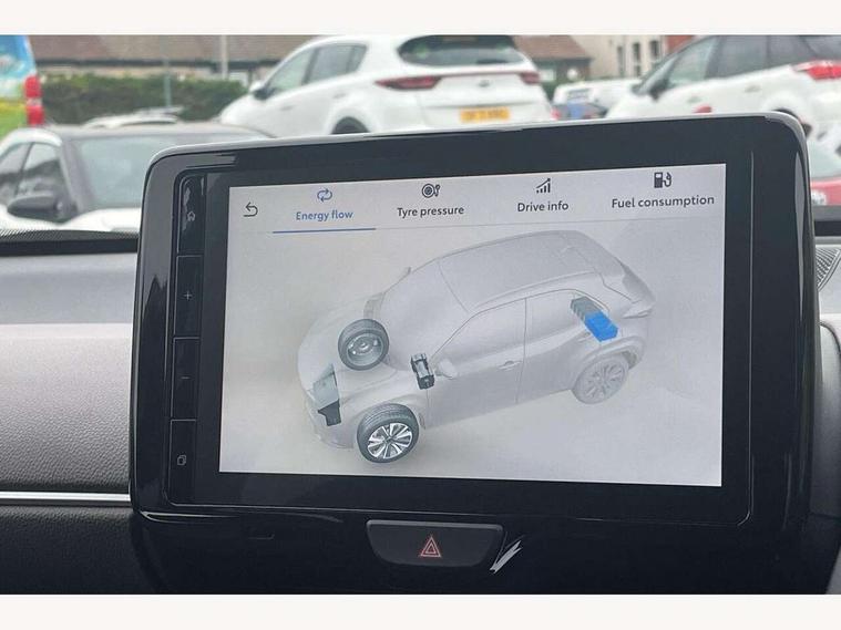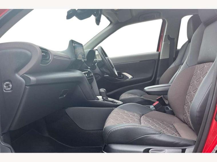 10.5" Multimedia display screen, 10.5" Toyota smart connect+ with navi multimedia system with wireless Smartphone integration incl Apple CarPlay, 360 degree panoramic view monitor, 7" Multi information display screen, Adaptive cruise control, multi info switches on steering wheel, Adjustable speed limiter, Advanced parking assist, Blind spot monitoring, Bluetooth connectivity, Color multi-information display, Digital speedometer, Digital tachometer, Drive mode selector, Driver attention alert system, Dynamic guide lines on reversing camera, eCall emergency system, Electric power steering, Emergency driving stop system, Full range intelligent adaptive cruise control, Hybrid system indicator, Intelligent front and rear parking sensors with clearance sonar and automatic braking, Intersection turn assist, Key reminder warning, Lane change assist, Lane departure warning, Lane trace assist, My T Connected services, Power tailgate, Pre-collision system enhanced with emergency steering assist, Rear cross traffic alert with brake assist, Remote boot door release in cabin, Road sign assist - RSA, Safe exit assist, Telephone switch on steering wheel, Wireless Mobile Phone Charger, Steering assisted vehicle stability control, 6 speakers, DAB Digital radio, Front USB Type-C connector, Front USB-C device charger, 3rd brake light, Acoustic windscreen glass, Anti-jam protection on power windows, Auto dimming rear view mirror, Auto high beam [AHB] with on/off switch, Auto intermittent windscreen wipers, Automatic headlights, Automatic headlights cut-off, Automatically retractable door mirrors, Black door moulding, Black lower front grille, Black protection moulding on side doors, Black roof rails, Black wheel arch mouldings, Body colour door handles, Body colour front bumper, Body colour rear bumper, Electric adjustable heated door mirrors, Follow me home headlights, Front and rear electric windows with auto up/down function, Gloss black upper front grille, Headlight cut off reminder, Indicators integrated on door mirrors, Intermittent rear wiper, Kick activated power back door, LED daytime running lights guide, LED front fog lights, LED front light guide, LED Indicators, LED projector headlights, LED rear lights with sequential indicators, Manual headlight levelling, Meshed upper front grille, Noise reduction layer on windscreen, Privacy glass, Rain sensor, Rear side wing doors, Rear spoiler, Rear window defogger, Shark fin antenna, 12v power outlet - front, 12V power point in boot, 2x Rear coat hooks, 3 seat bench in 2nd row, 3 spoke leather steering wheel, 40/60 split deckboard, 40:20:40 split folding rear bench seat, Adjustable rear headrests, Adjustable speed limiter switch on steering wheel, Boot light, Central armrest, Driver and front passenger personal lights, Driver and front passenger Whiplash injury Lesseing seats, Driver and passenger seatback pockets, Dual zone automatic air conditioning, Fabric door trim, Front console box, Front cup holders, Front door pockets, Front head restraints, Front sport seats, Front/rear assist grips, Gear shift indicator, Grey roof lining, Heated driver and passenger seats, Heated steering wheel, Height adjustable driver's seat, Height adjustable front passenger seat, Hooks for luggage holding belts, ISOFIX child restraint system, Lane departure alert switch on steering control, Leather gearshift, LED centre room light, Light on driver and passenger sun visor, Manual telescopic and tilting steering wheel, Mirror on driver and passenger sun visor, Nanoe-X air purifier, Partial synthetic leather upholstery, Pollen air filter, Power adjustable lumbar support on driver seat, Rear cup holders, Rear door pockets, Rear head restraints, Remote air-conditioning system, Single compartment glovebox, Single front passenger seat, Soft tonneau cover, Storage box under boot floor, Voice recognition switch on steering wheel, White ambient lighting in centre console, White ambient lighting in footwell, White ambient lighting on front doors, Yaris cross floor mats, Tech pack - Yaris Cross, 3x3 point rear seat belts, ABS+EBD+Brake assist, Downhill Assist Control (DAC), Driver and passenger central airbags, Driver and passenger front airbags, Driver and passenger side airbags, Electronic parking brake, Emergency brake light system (EBS), Front seat belt reminder, Hill start assist control (HAC), Passenger airbag on/off switch, Pre-collision system with pedestrian and cyclist detection, Rear door child safety locks, Rear passenger side airbags, Rear seat belt reminder, Traction control, Tyre pressure warning system, Immobiliser, Intrusion alarm, Keyless smart entry with push button start, Power door locks, Power passenger window lock, Remote door lock, Gloss black side air vent surrounds, Tyre repair kit,