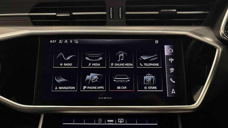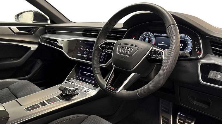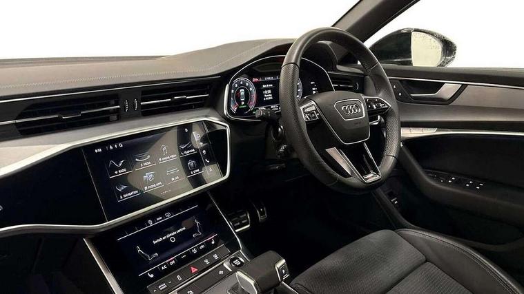 Audi connect safety and service (e-call), Audi connect with Amazon Alexa Integration, Audi drive select, Audi parking system plus - acoustic and visual park assist system for front and rear, Audi virtual cockpit, Automatic start/stop system with coasting functionality, Bluetooth interface, Camera based traffic sign recognition, Electric boot lid release, Lane departure warning system, MMI navigation plus with 10.1" and 8.6" touch screens, Progressive steering, Rear view camera, Service interval indicator, Smartphone interface includes wireless Apple carplay/Android Auto, Voice control system, Sports suspension, Audi front music interface, Audi sound system, Auxiliary input socket, DAB Digital radio, USB connection, Body coloured door mirrors, Electric front/rear windows, Electrically adjustable heated and folding + automatically dimming exterior mirrors with memory function, Frameless auto dimming interior rear view mirror, Front intermittent wipers, Heat insulating darkened glass in side and rear windows, Heat insulating glass in windshield, LED rear lights with dynamic indicators, LED signature front daytime running light, LED third brake light, Matrix LED headlights, Matt black rear diffuser with diffuser strip and tailpipes in chrome, Matt black side air intake grille with inlay in matt aluminium, Privacy glass, Radiator grille in anthracite black matt, single frame in chrome and horizontal struts in matt aluminium silver, Rain and light sensors, Rear boot, Rear side wing doors, 2 zone deluxe electronic climate control, 3 spoke high multi-function perforated leather steering wheel with contrast stitching and shift paddles, 40/20/40 split folding 3 rear seat bench in 3 parts with rear centre armrest, Audi phone box light, Black cloth headlining, Electrically adjustable front seats including seat height, fore/aft position, backrest angle and 4-way lumbar with memory for driver's seat, Front and rear floor mats, Front centre armrest, Front head restraints, Heated front seats, Height/reach adjust steering wheel, Illuminated door sill trims with S logo, Illuminated sun visors with vanity mirrors, Leather gear knob, Rear headrests, Single front passenger seat, Stainless steel pedals and foot rest, Tool kit and car jack, LED Interior Ambient Lighting Pack - A6, Non smoking pack - A6, S line exterior style pack - A6, 3 point seatbelts on all seats, Airbags - Front side, front and rear including head, Audi pre-sense front, EBD - Electronic brakeforce distribution, Electromechanical parking brake, Electronic Stability Control (ESC) including ABS, ASR and EDL, Extended pedestrian protection measures, ISOFIX child seat mounting for front passenger seat and ISOFIX child seat mounting with Top Tether for outer rear seats, Manual child proof rear door locks, Seatbelt monitoring, Tyre pressure warning light, Warning triangle and first aid kit, Anti theft alarm with tow away protection, Anti-theft wheel bolts and wheel loosening detection, Immobiliser, Keyless Go, Remote central locking, Matt brushed aluminium inlays,