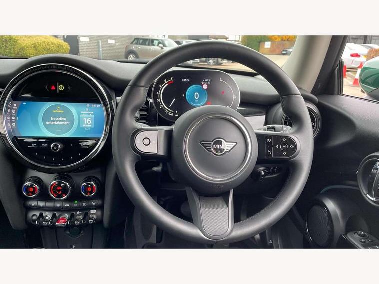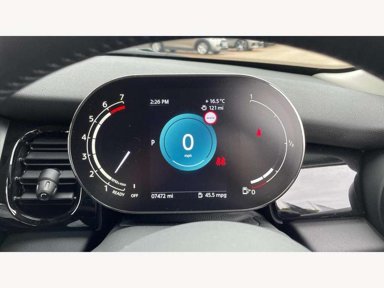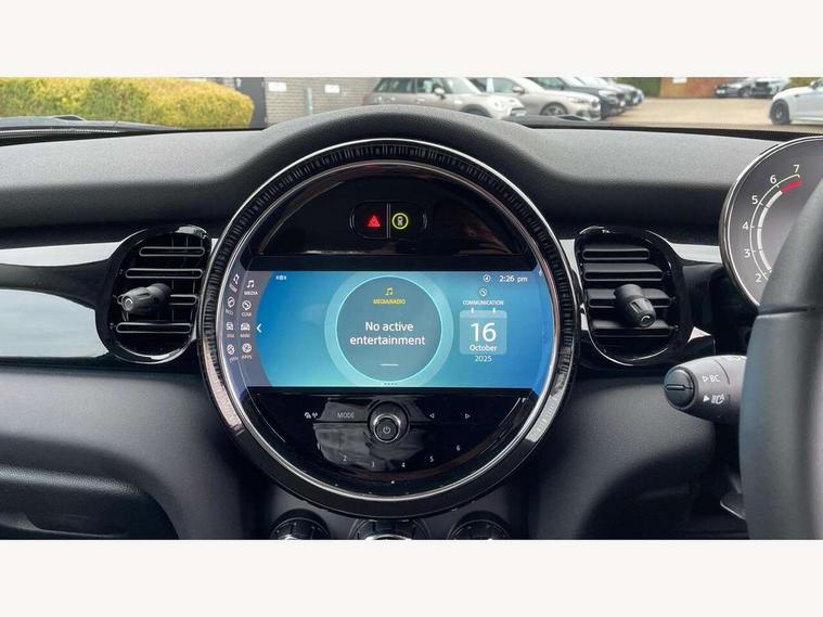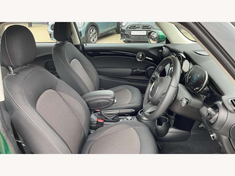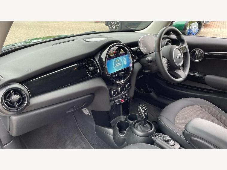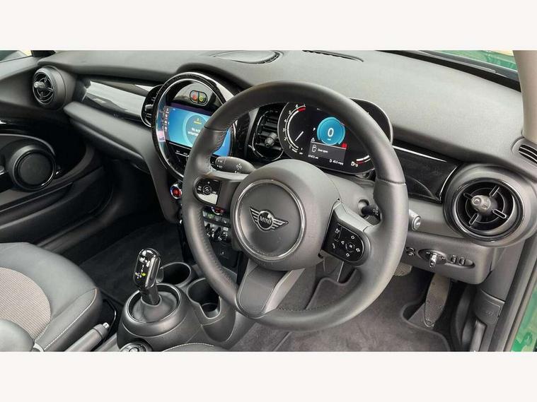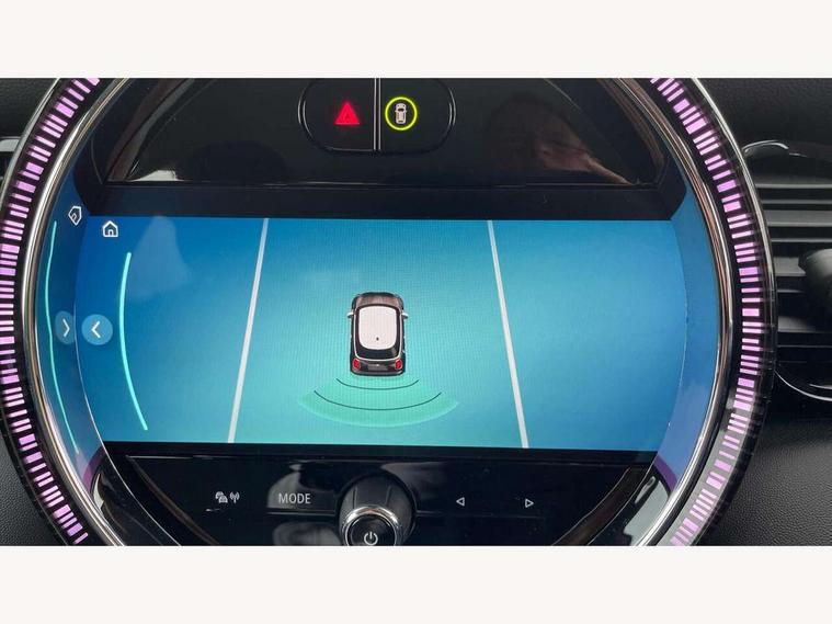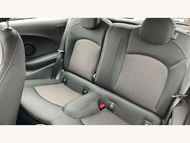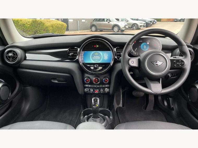 Apple CarPlay, Automatic start/stop function with brake energy recuperation, Compatible mobile phone bluetooth with audio streaming, Cruise control with brake assist, Electro-mechanical speed dependant steering assistance, Flexible car sharing preparation, Instrument cluster, Mini E-call, MINI TeleServices, On board computer, Service interval indicator, Double Vanos system, Fully variable valve control, High precision injection, Performance Control, Steptronic transmission with double clutch, 8.8" touchscreen with LED ring, FM tuner and DAB digital radio, 3rd brake light, Automatic headlight activation switch, Body colour fuel filler cap, Chrome border high gloss black slats radiator grille, Dynamic brake lights, Electric front windows, Exhaust tailpipe on left with chrome finisher, Heated rear window, Heated windscreen washer jets, LED headlight with closed ring and daytime driving lights, Metal door sill strips with MINI imprint, Model logo Cooper on right of tailgate, Rain sensor window wipers, Rear fog lights, Rear LED lights with union jack design, Rear window wiper, Side scuttle panel with integrated indicator, Sun/heat protection glass, White indicator lenses, 12V Accessory socket in centre console, 2 seat bench in 2nd row, 4 lashing eyes in luggage compartment, 60/40 split folding rear seat, Ambient lighting, Carbon black colour line - Knee roll and door armrest, Chrome interior highlights, Cupholders, Front and rear head restraints, Front and rear isofix with front passenger airbag deactivation, Front floor mats in velour, Glove compartment, Height and length steering column adjustment, Interior lighting with 12 different colours across the dashboard, underneath door bezel with illuminated laser-engraved design on central display, Leatherette gearshift lever and handbrake gaiters, LED reading lights, vanity mirror lights, front foot well light and spotlight on front seats, Manual air conditioning, Mechanical seat adjustment - forward/back & backrest for front seats and driver seat height adjust, Multifunction steering wheel, Passenger seat height adjuster, Satellite grey headlining including grab handles and clothes hooks, Single front passenger seat, Sport leather steering wheel with speed limiter and audio/communication controls, Storage compartments in doors, Sunvisors with vanity mirrors, 3 point seatbelts on all four seats, 6 Airbags - front, side, head and seat belt tensioners, Anti-lock braking system (ABS), DSC - Dynamic Stability Control, Front and rear disc brakes, Single tone fanfare horn, Tyre pressure monitoring system, Alarm system with tilt sensor, monitoring doors, bonnet interior and tailgate, Electronic vehicle immobiliser, Start/stop toggle with keyless go, Piano black interior trim, Tool kit, Tyre repair kit,