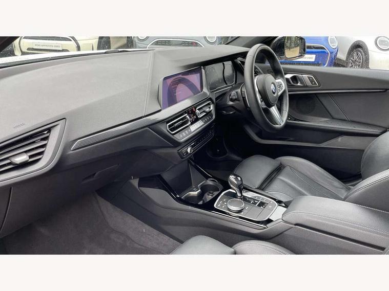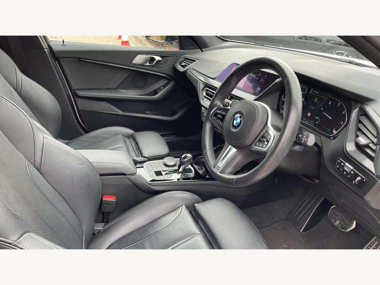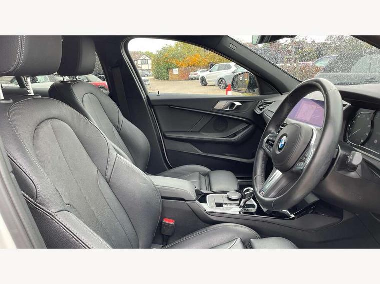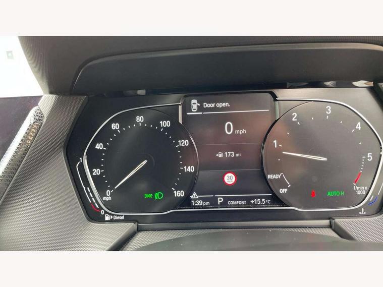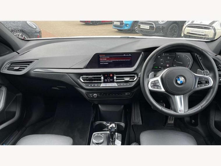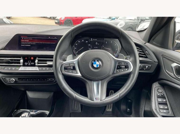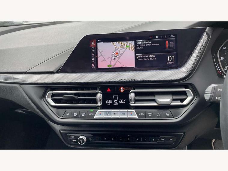 Active guard plus, Attentiveness assist, BMW Online services, BMW Teleservices, Check Control warning system for monitoring of lights and door/luggage compartment open warning, Connected eDrive Services, Eco pro mode, Integrated owners handbook, Oil sensor for level and grade, On board computer, Optimum shift indicator, Personal Profile, Pull away assistant, Speed limiter, Aluminium lightweight construction, Anti roll bar front and rear, Balancer shaft, Diesel particulate filter, Drive Performance Control, Electronic differential lock, Bluetooth audio streaming, DAB Digital radio, Auto dimming rear view mirror, Automatic headlight beam throw control, Automatic windscreen wipers and automatic headlight, Body colour door handles, Body colour mirror caps, Chrome 'M' logo side designation, Chrome exhaust twin tailpipes round 90mm in left and right split, Chrome kidney grille frame with Satin Aluminium struts, Direction indicator side lights in exterior mirrors, Electric folding and anti dazzle exterior mirrors, Fading support, Follow me home headlights, Front and rear bumper system with replaceable deformation elements, Front and rear electric windows with open and close fingertip control, anti trap facility and comfort closing, Front door sill finishers in black plastic with M designation in metallic look, Green tinted heat protection glazing, Heated, electrically adjustable exterior mirror aspheric on driver side, convex on passenger side, High gloss shadowline window frame, Recess cover mirror frames and B/C pillar embelisher trim, High level third brake light, LED daytime running lights, LED eyebrow turn indicators, LED front fog lights, Lightweight engineering, Matt black air guide grilles, Model designation on right side of tailgate, Nearside reverse light in rear light cluster, Preparation for high beam assistant, Rain sensor including auto headlights activation, Rear fog lights, Rear window wiper, Shark fin antenna, Visible VIN plate, Welcome lighting, 12V power socket in centre console, 3 rear seat head restraints, 3 spoke M sports design leather steering wheel finished in nappa leather with specific M badge, Anthracite headlining, Anthracite Velour floor mats, Child seat ISOFIX attachment for two outer rear seats and front passenger seat with anchorage points, Conditioned based service, Dakota leather upholstery with perforation and contrast stitching, Driver and front passenger seat heating, Folding rear clothes hook, Four grab handles integrated in roof lining, Front and rear door pockets, Front and rear door pockets with bottle holders, Front and rear side armrest integrated into door trim, Front armrest foldable with integrated storage compartment, Front sports seats with electric side bolster adjustment, Glove compartment, Height adjustable front head restraints, Manual adjust steering wheel, Multi-function controls for steering wheel, Storage compartment in centre console, Sun visors with vanity mirrors and insert tab, Two zone automatic air conditioning, Additional interior lighting pack - 1 Series, Connected pack professional - 1 Series, Extended storage pack - 1 Series, Interior lights pack - 1 Series, Luggage compartment pack - 1 Series, M Sport exterior styling aerodynamics pack - 1 Series, 2 tone horn, 3 point seatbelts on all seats, front pyrotechnic belt tensioners, stopper and belt force limiters, rear coded belt buckles, Airbags - front driver/passenger, front & rear curtain, front side, Anti lock braking system (ABS) with brake assist, BMW emergency call, Brake drying, Braking readiness, Crash sensor activating central locking release, hazard warning lights, fuel cut off, interior lighting + activation of safety battery terminal clamp, Driver and front passenger seat belt security check, Dynamic stability control + (DSC+), Dynamic Traction Control - DTC, Electrically operated hand brake, Front and rear disc brakes, Front passenger manual airbag deactivation, Seatbelt warning, Side impact protection, Tyre pressure monitoring system, Warning triangle and first aid kit, Automatic drive away locking facility, Central locking switch for all doors, fuel filler cap and luggage compartment, Deadlocking function system to all doors, Incorrect fuel protection system, Locking wheel bolts, Remote control with integrated key with High-gloss Black inlay and M designation and 1 button for open/ close lock, window, open luggage compartment, Start/stop button with comfort go keyless engine start and auto start stop deactivation button, Thatcham Cat.1 alarm and immobiliser, Contrast stitching on instrument panel, Reduced rolling resistance tyres,
