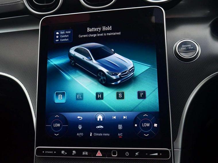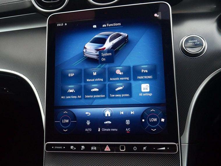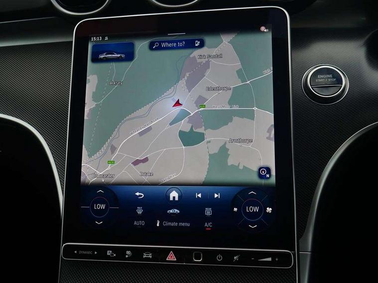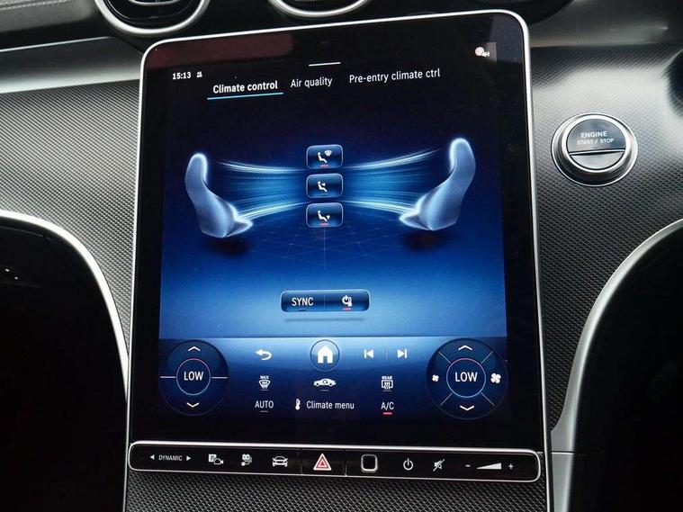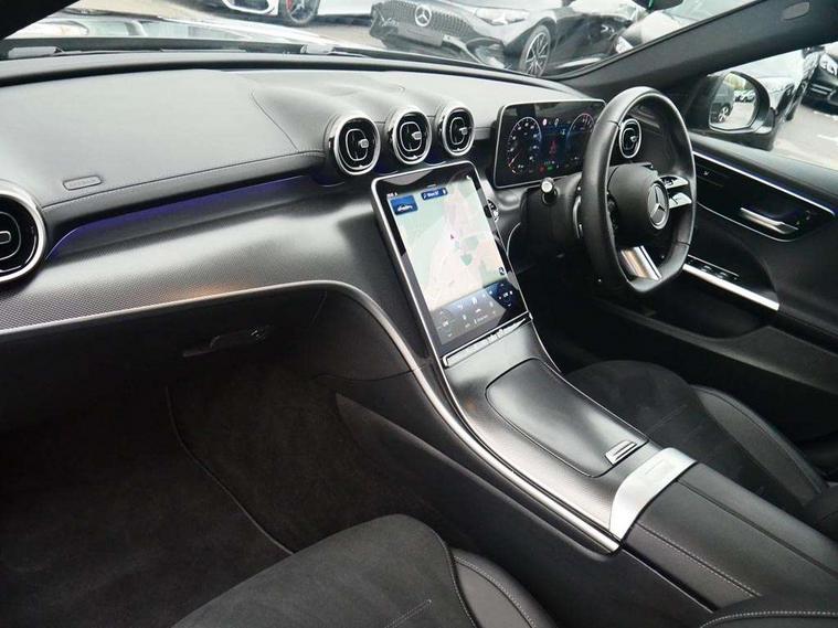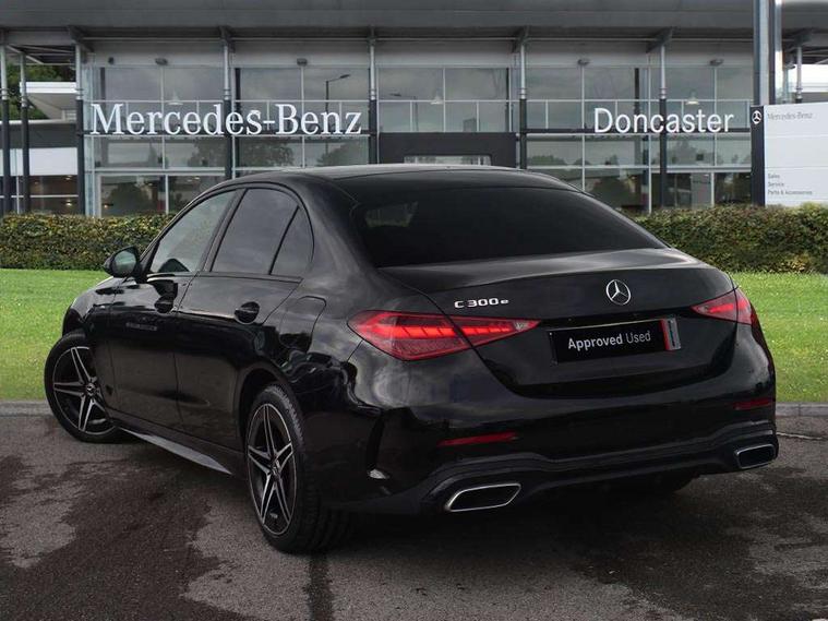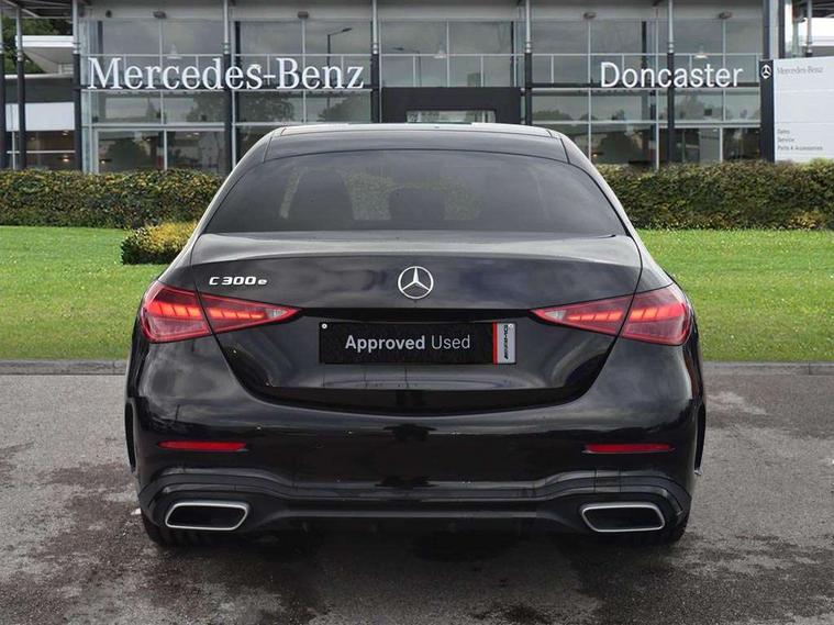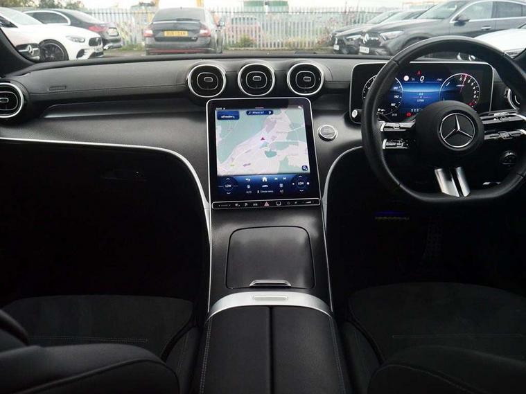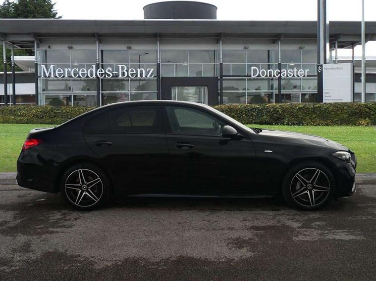 11.9" high resolution multimedia colour display, 12.3" digital instrument cluster display, Acoustic ambient protection, Active lane keeping assist, Active parking assist with PARKTRONIC, Attention assist, Charging services plus, Cruise control with speedtronic variable speed limiter, DYNAMIC SELECT with a choice of driving modes (Comfort, ECO, Sport, Sport+, Individual), E-call, Extended MBUX functions, Finger print sensor, Fluorescent jacket for driver, Hard disc navigation, MBUX navigation premium, Mercedes me remote services, Outside temperature gauge, Service indicator (ASSYST), Smartphone integration, Sports direct steer speed sensitive steering, Status display for rear seat belts in instrument cluster, Wireless charging system for mobile devices, 5m charging cable for household socket (mode 2), 5m charging cable for wall box/public charging stations(mode 3), 9G TRONIC 9 speed automatic transmission, AC/DC charging, Comfort and self levelling suspension, Petrol Particulate Filter, DAB Digital radio, MBUX multimedia system, Adaptive brake lights, Adaptive high beam assist, AMG body styling front apron, rear apron and side skirts, AMG Line exterior, Body coloured bumpers, Electric windows with one touch opening/closing and obstruction sensors, Electrically adjustable and heated door mirrors, EQ badging on front wings, LED daytime running lights, LED high performance headlamps, LED Indicators, LED tail lights, LED third brake light, Radiator diamond grille with integrated Mercedes Benz star and louvre silver with chrome pins, Rain sensor with automatic windscreen wiper activation, Rear boot, Rear side wing doors, Two visible exhaust pipes integrated into rear bumper, 3 seat bench in 2nd row, 40:20:40 split folding rear bench seat, Ambient lighting, Ambient lighting with projection of brand logo, AMG floor mats, AMG line interior, Artico man made leather/Dinamica microfibre upholstery, Auto Mercedes-Benz child seat recognition sensor, Black roof liner, Double cupholder in centre console, Folding rear seat backrest, Front and rear head restraints, Gearshift paddles on steering wheel, Heated front seats, Illuminated glove compartment stowage, Manually height and reach adjustable steering column, Multifunction sports steering wheel in nappa leather, Rear top tether child seat ISOFIX attachment, Single front passenger seat, Sports seats, Sunvisors with illuminated vanity mirrors, THERMATIC 2 zone automatic climate control, Interior light package - C Class, Mirror package - C Class, Night package - C Class Urban Edition/Premium Plus Saloon, Parking package with reversing camera - C Class, Seat comfort package - C Class Urban Edition, Stowage space pack - C Class, USB package - C Class, 3 rear 3 point seatbelts, Active bonnet pedestrian safety measure which detects an impact and raises bonnet, Active brake assist, Adaptive brake system with HOLD function and brake drying in the wet, Anti-lock braking system (ABS), Black seat belts, Brake calipers with Mercedes-Benz lettering + perforated front brake discs, Child proof door locks, Drivers knee airbag, Drivers pelvis airbag, Dual stage driver/passenger airbags, Electric parking brake, Electronic Stability Programme (ESP), Front centre airbag between driver and front passenger seats, Front side airbags, Tyre pressure monitoring system, Warning triangle and first aid kit, Window airbags for driver, front passenger and rear passenger, Antitheft alarm system, Interior monitoring system and Increased antitheft protection, Central locking with interior switch, automatic locking and crash sensor with emergency opening function, Chrome surround in electric key, Keyless Go, Urban guard vehicle protection plus, Dashboard, instrument panel and beltlines in ARTICO man made leather in nappa look, Silver grey diamond pattern trim with centre console in crisscross look silver grey, 18" AMG 5 spoke light alloy wheels aerodynamically optimised painted black with high sheen finish, TIREFIT with tyre inflation compressor,