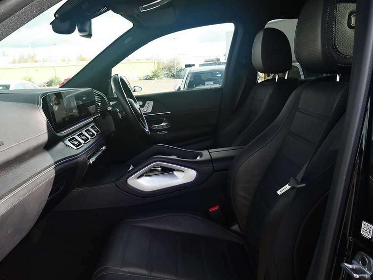 12.3 High resolution wide screen cockpit display with choice of three display styles Classic, Progressive or Sport and unique ambient lighting setting, 360 degree camera, Active lane keeping assist, Active parking assist with PARKTRONIC, Attention assist, Blind spot assist, Brake wear warning display, Direct steer speed sensitive steering, DYNAMIC SELECT with a choice of driving modes (ECO, Comfort, Sport and Individual), Easy-pack tailgate - Powered opening/closing automatically, ECO start/stop function, Geofencing, Hard-disk navigation, MBUX augmented reality for navigation and live traffic, MBUX voice control activated by keywords "Hey Mercedes", Mercedes Benz emergency call system, Mercedes me connect - vehicle set up and monitoring, Outside temperature display, Pre-installation for digital key transfer, Remote boot release, Service indicator (ASSYST), Smartphone integration with Apple CarPlay and Android auto, Speedtronic cruise control with speed limiter, Status display for rear seat belts in instrument cluster, Traffic sign assist, Trip computer in multifunction display showing current fuel consumption, Wireless charging, 85 litre fuel tank, 9G TRONIC 9 speed automatic transmission, Airmatic air suspension with adaptive damping system, Diesel particulate filter (DPF), Mild Hybrid starter alternator, Additional USB connection, Bluetooth interface for hands free and audio streaming, Burmester surround sound system, DAB digital radio tuner, Front and rear USB ports, Sound personalisation, Adaptive brake lights, Aluminium look, illuminated running boards with rubber studs, AMG bodystyling front and rear aprons, Auto headlights, Automatically dimming rear view mirror, Body colour door mirrors, Body coloured bumpers, Electric windows with one touch opening/closing and obstruction sensors, Electrically adjustable, heated, folding exterior mirrors, Exterior styling - front bumper, radiator grille and front air intakes, Heat insulating dark tinted glass, LED 3rd brake light, LED daytime running light signet, LED rear lights, Multibeam LED headlights with adaptive highbeam assist plus, Radio aerial integrated into rear window, Rain sensing windscreen wipers, Rear side wing doors, Rear wiper, Roof rail system, Top surround of side windows in polished aluminium, Transparent Bonnet, Visible twin pipe exhaust system integrated into bumper, Waistline in polished aluminium, 3 spoke nappa leather multifunction sports steering wheel, 3rd row of seats for 2 people, 4 way adjustable front head restraints and 2 way rear head restraints, 40:20:40 split folding rear seats, AMG floor mats with AMG lettering, Automatic child seat recognition sensor, Black fabric roof liner, Electric height/reach adjustable steering column, Electrically adjustable rear seats, Front centre armrest with stowage compartment and illuminated grab handles, Gearshift paddles on steering wheel, Glove compartment - lockable, air conditioned and illuminated, Heated front seats, Illuminated door sill with Mercedes Benz lettering, Interior lighting - 64 colour Ambient lighting, Leather upholstery, Luggage compartment cover, Seat occupancy sensor for front passenger seat, Second row three seats, Single front passenger seat, Sports pedals in brushed stainless steel with rubber studs, Sunvisors with illuminated vanity mirrors, THERMATIC 2 zone automatic climate control, Touchpad, Keyless go comfort package with comfort opening - GLE, Memory package with 4 way lumbar support - GLE, Active bonnet, Active brake assist with HOLD function and brake e-drying function, Airbags - driver and front passenger, front sidebag, pelvis bag and window airbags, Anti-lock braking system (ABS), Black seat belts, Childproof locks manually operated for rear doors and electrically operated for rear power windows, Drivers knee airbag, Electronic parking brake, Electronic Stability Programme (ESP), ISOFIX child seat points with automatic child seat recognition, Perforated front brake discs and brake calipers with Mercedes-Benz lettering, Pre safe impulse side, Three point rear seat belts, Tyre pressure monitoring system, Warning triangle and first aid kit, Alarm system/interior protection/immobiliser, Central locking with interior switch, automatic locking and crash sensor with emergency opening function, Chrome surround in electric key, Dashcam, Guard 360 degree vehicle protection plus, Dashboard and door beltlines in ARTICO man made leather, Trim - Centre console, anthracite open pore oak wood trim, 20" AMG 5 twin spoke light alloy wheels, TIREFIT with tyre inflation compressor,