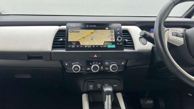 Adaptive cruise control, Adjustable speed limiter, Agile handling assist, BLIS (Blind Spot Information System) with Cross Traffic Monitor, Bluetooth hands free telephone connection, eCall emergency call system, Econ mode, Electric power steering wheel with variable gear ratio steering, Emergency stop signalling system, Forward collision warning, Front and rear parking sensors, Honda CONNECT with HERE Navigation + 9" touchscreen, AM/FM/DAB/Apple Carplay and android auto, Idle stop, Intelligent speed limiter, Lane departure warning system, Lane keep assist system, Low speed following, Multi-information display, Rear view camera, Road departure mitigation, Traffic sign recognition, Vehicle stability assist, 'Shark fin' mobile antenna, 2 USB sockets in rear, 2x USB Front socket (1 data & 1 charge), 4 speakers, Remote audio controls on steering wheel, Aspheric door mirrors, Auto wipers, Automatic headlights with on/off timer, Coming/leaving home function, Body colour door handles, Body coloured bumpers, eHEV emblem, Electric adjustable door mirrors, Electrically folding door mirrors, Front and rear electric windows, Heated door mirrors, High beam assist, LED daytime running lights, LED front fog lights, LED Headlights, LED rear lights, Privacy glass, Rear side wing doors, Rear wiper, Single exhaust tailpipe, Third brake light, 3 seat bench in 2nd row, 60/40 split rear bench seat, Cargo net hooks, Climate control air conditioning, Driver and front passenger seat armrests, Driver and passenger front seat pockets, Driver's seat height adjustment, Fabric/leather upholstery, Front accessory power socket, Front head restraints, Front map lights, Front/rear courtesy lights, Heated front seats, Heated steering wheel, Isofix child seat restraint mechanism, Isofix points, Leather gearshift knob, Leather steering wheel, Magic seat flexibility system, Paddle shift controls, Plating interior door handles, Rear head restraints, Rear parcel shelf, Single front passenger seat, Sunvisors with vanity mirrors, Tilt/telescopic adjustable steering wheel, Tonneau cover, Trunk light, 3x3 point rear seatbelts, Anti-lock braking system (ABS), Brake assist function, Brake hold function, Child locks on rear doors, Collision mitigation braking system, Deflation warning system, Driver knee airbag, Driver SRS airbag (single stage inflation), Driver/Front Passenger airbags, Electric parking brake, Front and rear side curtain airbag, Front side airbags, Hill start assist, Passenger SRS airbag cut-off device, Rear side airbags, Whiplash lessening front headrests, Front seat belt with emergency locking retractor, Honda super locks, Immobiliser, Mirrors and windows key fob operation, Remote central locking with 2 remote folding keys, Security alarm, Smart entry + Smart start, Soft pad leather interior panels, 16" Multi apperance alloy wheels in mat berlina black, Tyre repair kit,