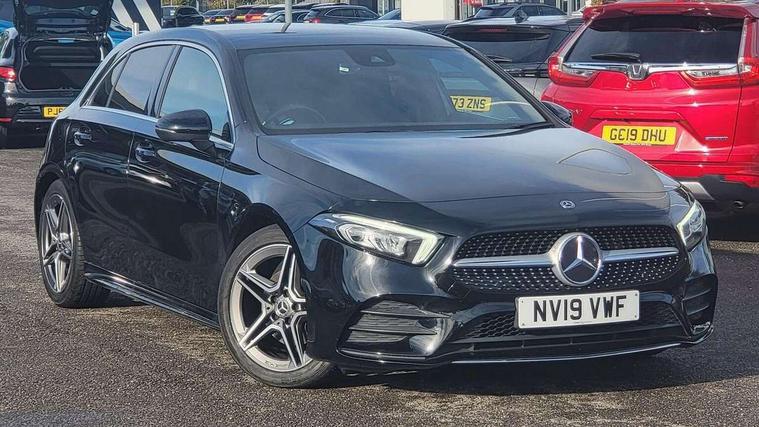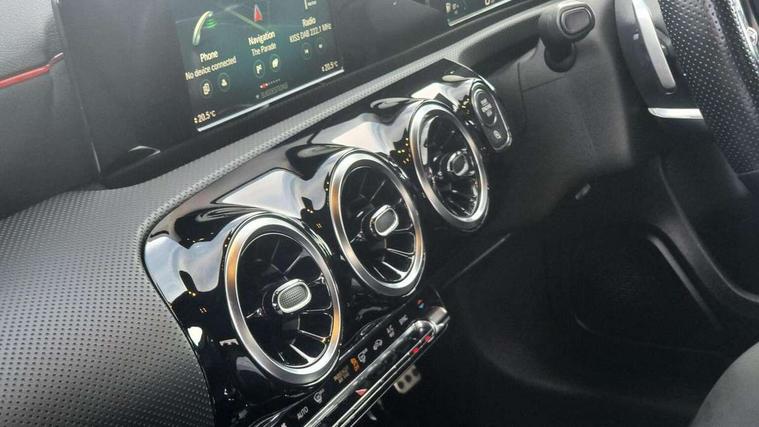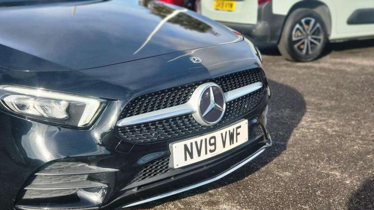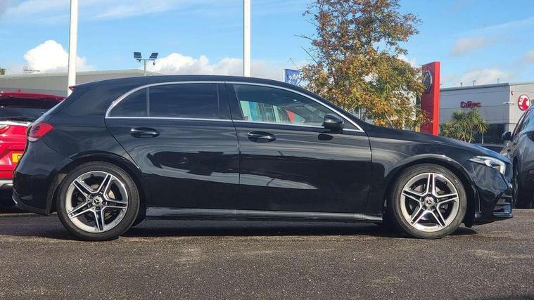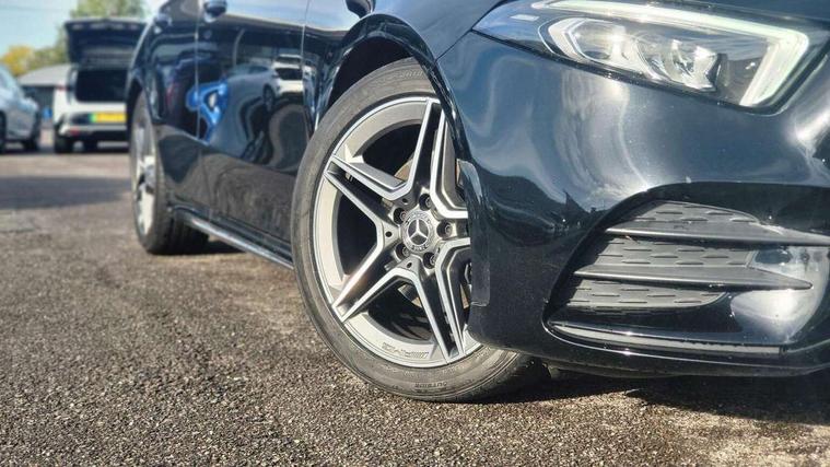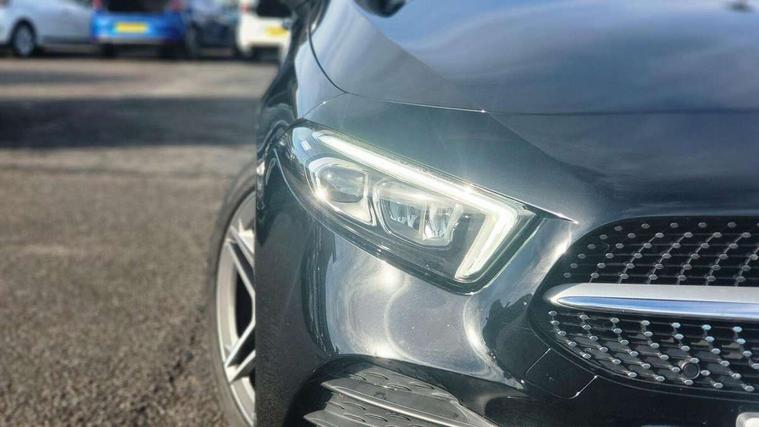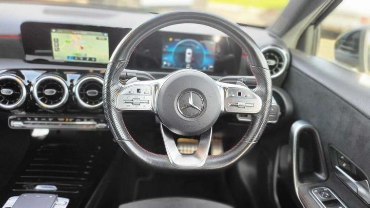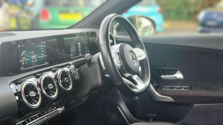 180 degree rear view camera with parking guidelines, 7" colour screen in instrument panel, 7" touchscreen media display, Active lane keep assist, Attention assist, Brake pad wear indicator warning light, Cruise control + speed limiter, Direct steering, DYNAMIC SELECT with a choice of driving modes (ECO, Comfort, Sport and Individual), ECO start/stop function, Fluid level warning indicator for fuel, oil, coolant and washer fluid, Hard-disk navigation, Lamp failure indicator, MBUX multimedia system with DAB digital radio and touchpad including satellite navigation, Mercedes me connect including emergency call system, accident recovery, breakdown management and maintenance, Outside temperature gauge, Radio aerial integrated into roof spoiler, Service indicator (ASSYST), Speed sensitive power steering, Trip computer, Voice activation, Lowered comfort suspension, DAB Digital radio, Dual bluetooth interface, 2 USB ports (type C), 4 Electric Front and Rear windows, Active aerodynamics with AIRPANEL in the front apron, Adaptive brake lights, AMG front, rear apron and side skirts, Blue tinted glass, Body colour bumpers, Body colour door handles, Body colour side skirt, Body coloured door mirrors, Chrome beltline trim, Diamond radiator grille with chrome pins and silver louvre + chrome insert, Electric adjustable and heated door mirrors with integrated LED side indicators, Exhaust system - Twin trapezoidal tailpipes in polished stainless steel, Headlamp assist automatic headlamp activation, Heated glass rear windscreen + timer control, LED high performance headlamps with integrated LED daytime running lights, LED tail lamp, LED third brake light, Rain sensor windscreen wipers, Rear fog lights, Rear wiper, 12V socket, 3 Spoke flat bottom leather multi function steering wheel with perforated leather in grip area, 40:20:40 split folding rear seats, Air vents surround and cruciform nozzle in silver chrome, AMG floor mats with red stitching, Artico man-made leather/Microfibre Dinamica upholstery with red contrast stitching, Auto Mercedes-Benz child seat recognition sensor, Black roof lining, Brushed stainless steel sports pedals with rubber studs, Controller on centre console with chrome surround, Cup holder and stowage compartment lighting, Freight packaging without tie-down hooks, Front centre armrest with storage compartment, Front door sills with Mercedes benz lettering, Front doors with ambient and signal light, Front footwell lights, Front reading lamps, Front seat backs luggage nets, Front seat cushion length adjustment, Front signal exit lamp, Front vanity lights, Gearshift paddles on steering wheel, Handle recess/closing light, Height/reach adjustable steering column, Illuminated glovebox, ISOFIX Child seat top tethers and anchor fixings, Luggage compartment cover, Manual height adjustable front seats, Oddments tray lighting, Rear head restraints, Rear Reading Lamps, Seat occupancy sensor for front passenger seat, Spectacles compartment for driver, Sports seats with integrated headrests, Storage compartment under load area floor, Sunvisors with illuminated vanity mirrors, Touchpad, Touchpad illumination, Twin front cupholders, Two zone thermotronic luxury automatic climate control, Seat comfort pack - A Class, 3 rear 3 point seatbelts, ABS with Brake Assist, Active bonnet, Active brake assist includes forward collision warning system with autonomous braking, Adaptive brake assist with hold function and hill start assist, Black seatbelts, Brake calipers with Mercedes-Benz lettering + perforated brake discs, Childproof locks manually operated for rear doors and electrically operated for rear power windows, Crash responsive emergency lighting, Driver and passenger head and side airbags, Drivers knee airbag, Dual stage driver/passenger airbags, Electronic parking brake, ESP curve dynamic assist, ESP with ASR, Front and rear seatbelt reminder, Tyre pressure monitoring system, Warning triangle and first aid kit, Window airbags, Alarm system/interior protection/immobiliser, Keyless Go, Remote central locking and crash sensor with emergency opening function, 18" AMG 5 twin spoke light alloy wheels in titanium grey with highsheen finish, Summer tyres, Tirefit sealant kit,