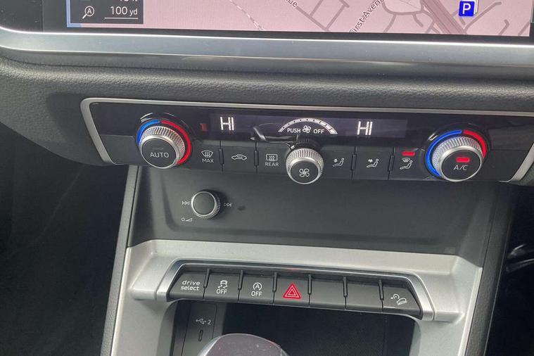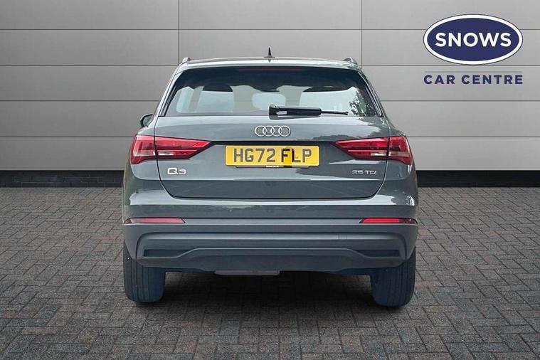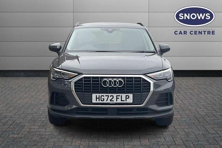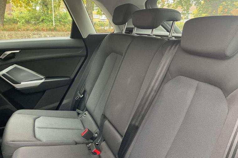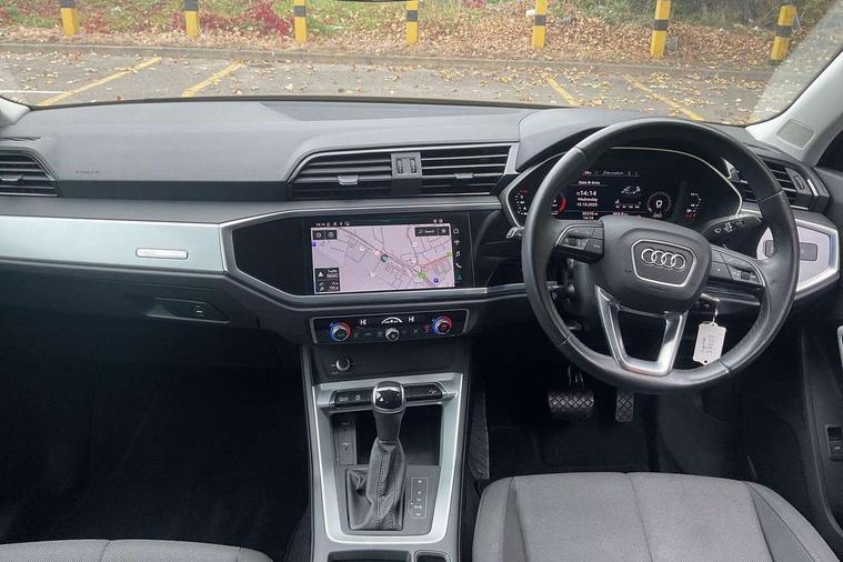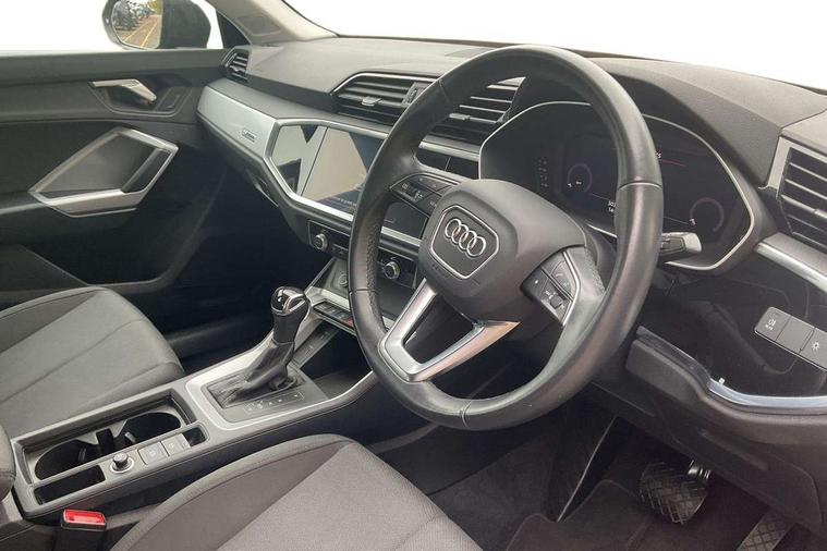 Amazon alexa Integration, Audi drive select, Audi lane departure warning, Audi smartphone interface includes wireless Apple carplay/Android Auto, Audi Virtual Cockpit - 10.25" display, Bluetooth interface, Camera based traffic sign recognition, Legal emergency call, MMI Navigation Plus with high resolution 10.1 inch touchscreen colour display, Power operated tailgate, Progressive steering, Service interval indicator, Start stop system with recuperation, Voice control system with natural language interaction, Diesel particulate filter, Standard suspension, 2 USB-C ports with charge and data functions, 6 passive loudspeakers, DAB digital radio module, Acoustic windscreen, Auto dimming frameless rear view mirror, Black roof rails, Body colour door mirrors, Diffuser in grained anthracite, Electrically folding, adjustable and heated door mirrors with integrated LED side indicators and kerb view function for passenger side, Exterior bumper with wheel arch trims and side sill trims in grained black matt, Front and rear electric windows, Grained radiator protective grille, Halogen rear lights, LED headlights with LED daytime running lights, Rain and light sensors, Rear side wing doors, Rear wiper, Third brake light, Variable front intermittent wipers, 12V socket in rear centre console, 3 seat bench in 2nd row, 3 spoke multi-function leather steering wheel, 40:20:40 folding with manual adjustment for 60:40 forwards/backwards position and backrest angle, Dual zone electronic climate control, Front and rear floor mats, Front and rear headrests, Front and rear roof module including reading lights, Front centre armrest, Glove compartment lighting, Height and reach adjustable steering wheel, ISOFIX child seat mounting for front passenger with airbag deactivation and outer rear seat including top tether attachment point for outer rear seats, Luggage compartment light, Lunar silver cloth headlining, Manual front seats with height adjustment, Single front passenger seat, Stainless steel luggage compartment sill finisher, Non smoking pack - Q3, 3x3 point rear seatbelts, 6 airbags - Driver, front passenger, curtain and side windows, Audi pre-sense front with pedestrain and cyclist recognition, Electrically operated child locks on rear doors, Electromechanical parking brake, Electronic stabilisation control including ABS, ASR and EDL, Front seatbelt reminder, Hill descent control, Hill hold assist, Pre sense basic, Seatbelt monitoring, Tyre pressure warning, Warning triangle and first aid kit, Anti theft alarm, Anti theft wheel bolts, Immobiliser, Remote central locking, Detail dashboard around MMI touch colour display in glass look, black with surround in aluminium look, Micrometallic silver inlay, 17" 5 twin spoke design alloy wheels,
