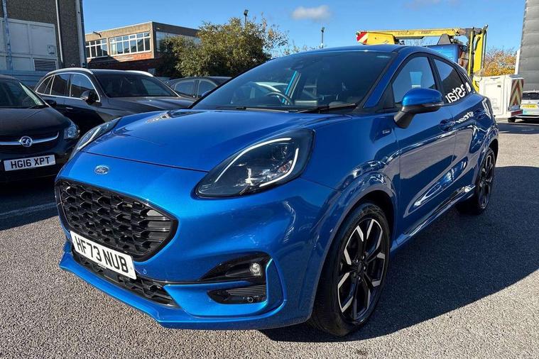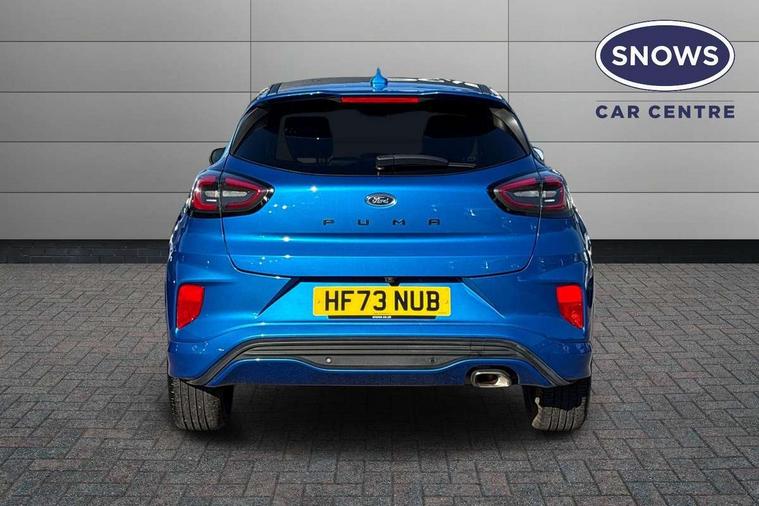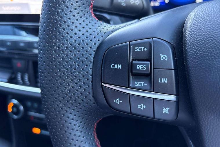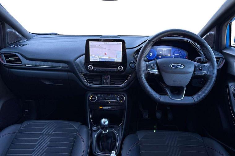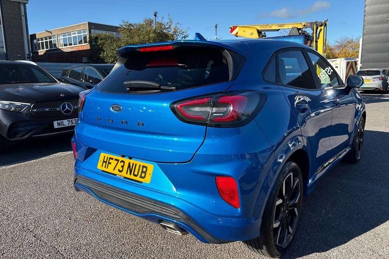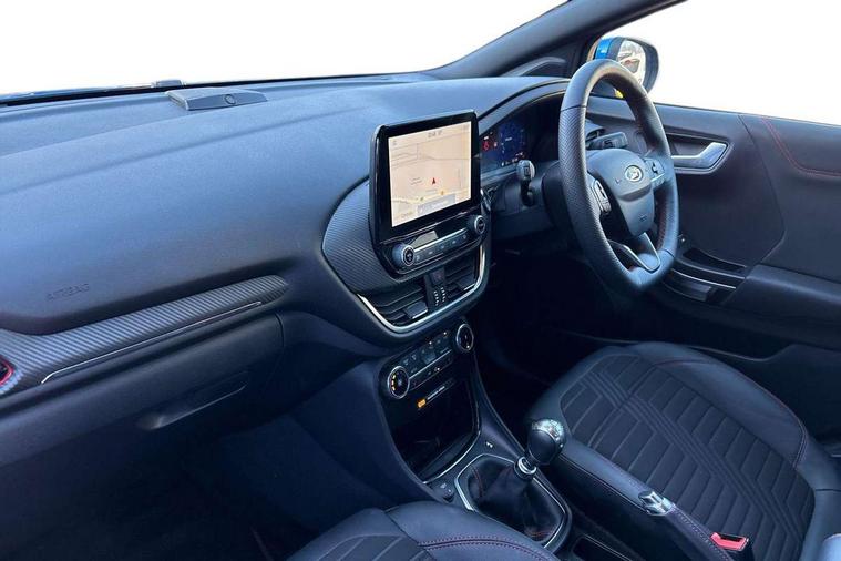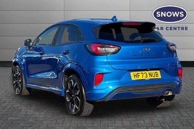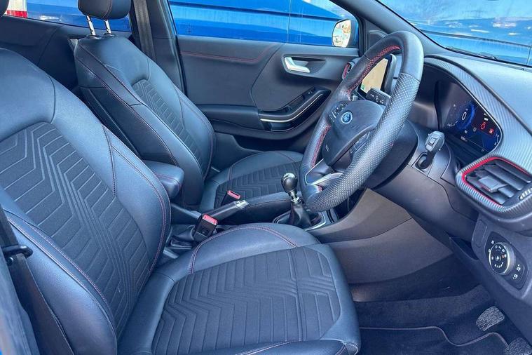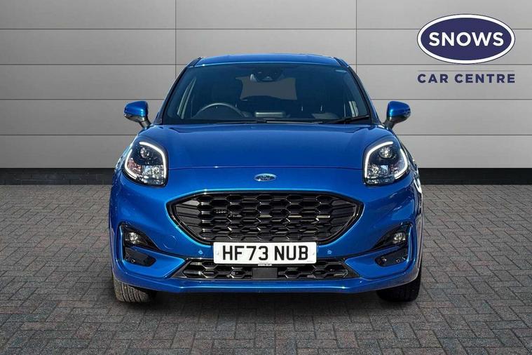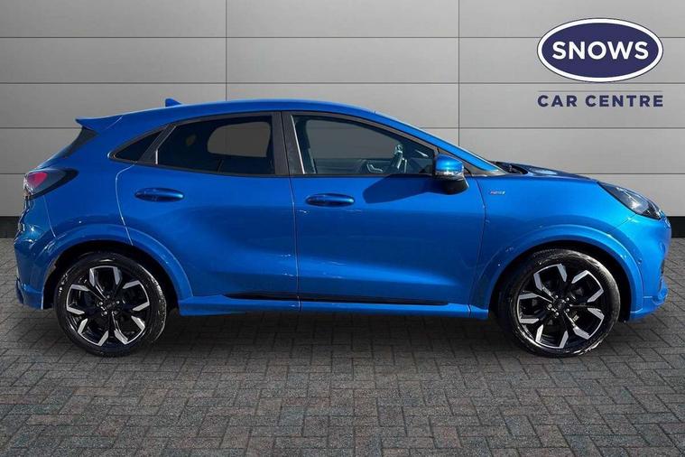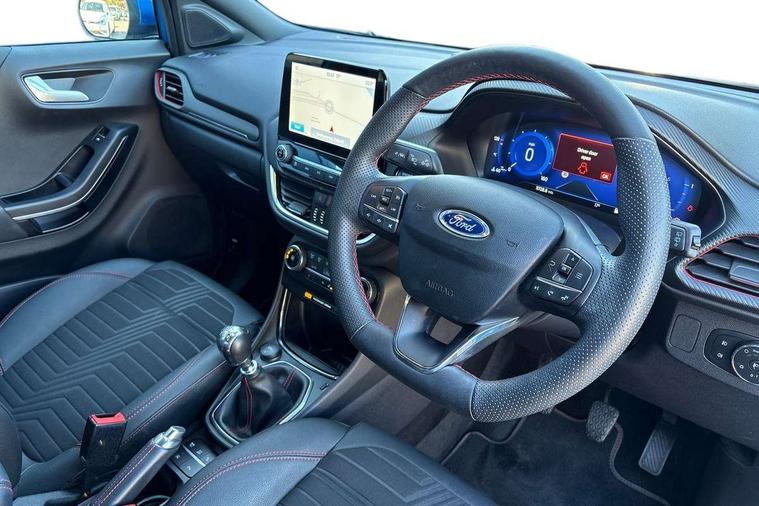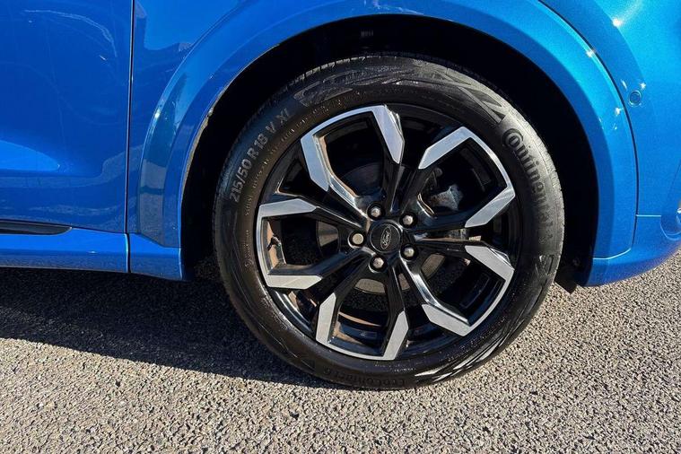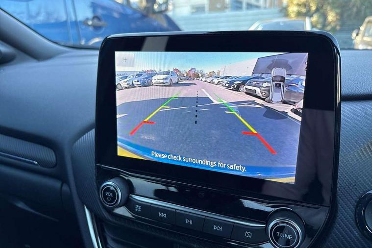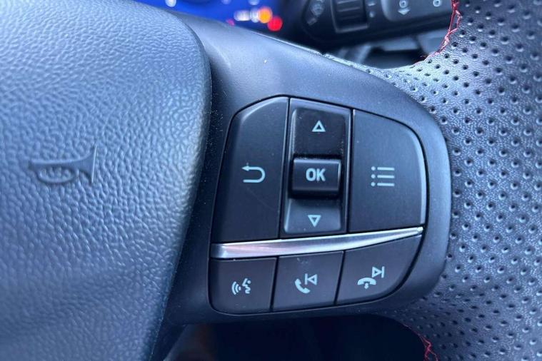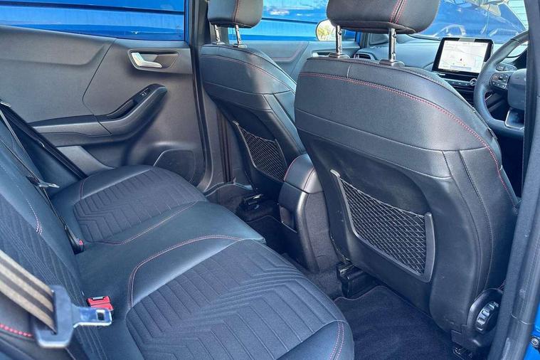 Driver impairment monitor, Emergency call service, Ford easy fuel, Full digital 12.3" instrument cluster, Lane keeping aid with lane departure warning, Power assist steering, Power start button, Rear parking sensor, Selectable drive modes(Normal, sport, Eco, trail, slippery), Speed sign recognition, Sport suspension, Automatic headlights with auto high beam, Automatic rain sensing wipers, Front fog lamps, LED daytime running lights, LED rear lamps, Power foldable heated door mirrors with puddle lamps, Privacy glass to side rear windows and tailgate glass, Quickclear heated windscreen, Rear side wing doors, Rear wiper, ST-Line body styling kit with unique grille and large body colour rear spoiler, Third brake light, 3 seat bench in 2nd row, Centre console with armrest and stowage, Ford megabox extended bootspace, Front and rear head restraints, Front floor mats, Manual 4 way driver seat adjust with lumbar adjustment, Manual 4 way passenger seat with lumbar seat adjustment, Sensico partial premium upholstery, Single front passenger seat, ST-Line flat bottomed sensico leather steering wheel with leather handbrake and aluminium gear knob, Wireless charging pad with electronic air temperature control (EATC), B&O Premium Audio system + Ford SYNC 3 navigation pack - Puma, 3 rear seatbelts, Child safety lock, Electronic stability control (ESC) and hill start assist, Pedestrian/cyclist detection & post-collision braking, Pre collision assist system, Tyre pressure monitoring system (TPMS), Thatcham alarm, Carbon look interior deco spears,