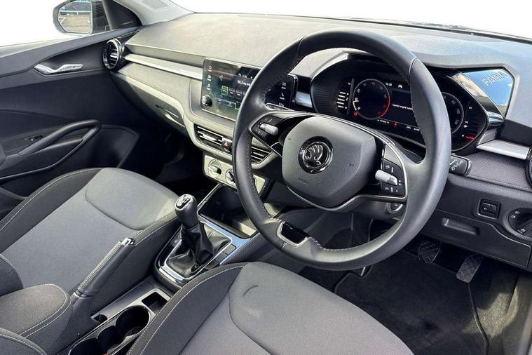 Advanced driver attention and drowsiness monitor, Bluetooth connection, Electromechanical power steering, Exterior temperature gauge, Rear parking sensors, Service interval indicator, Traffic sign recognition, Virtual cockpit with 10.25" colour display, Wireless SmartLink for Apple CarPlay and Android Auto, 6 Speakers (4 in front and 2 in rear), Auxiliary socket for external MP3 player, DAB digital radio reception, Body coloured bumpers, Dimming rear view mirror with black frame, Door mirror integrated indicators, Front and rear electric windows, Front window wiper intermittent control, Headlight range control - Automatic, Ice scraper in fuel cap, LED daytime running lights with coming and leaving home feature, LED rear lights, Privacy glass, Rear LED fog light, Rear side wing doors, Rear window wiper with washing nozzles, Roof mounted spoiler, SKODA tailgate lettering in chrome, Third brake light, 2 reading lights in front and 2 reading lights in rear, 3 rear headrests, Backrest split and folding, Central console with removable cup holder and storage box, Chrome handbrake release button, Fabric upholstery, Front centre armrest, Gearshift knob/handle in leather, Grain satin black interior door handles, Hand brake lever handle in leather, Height adjustable front headrests, Height adjustable front seats, Height adjustable steering wheel, ISOFIX and TopTether anchorage points to the outer rear seats, ISOFIX and TopTether on the front passenger seat, Luggage compartment lighting, Manually adjustable lumbar support in front seats, Pollen filter, Rear seat bench unsplit, Single front passenger seat, Storm grey headlining, Sun visors with mirror and airbag label on passenger side, Textile floor mats, Ticket holder, Umbrella in drivers door, 3-point height adjustable front seats belts with pretensioner and force limiter, Automatic warning lights in case of crash, Driver and passengers airbag with switch off function, e-Call+, ESC including ABS, MSR, ASR, EDS, HBA and XDS, Front and rear seat belt warning, FRONT ASSIST (AEB City and AEB Inter Urban), Front side airbags, Head airbags, One tone horn, Pedestrian protection, Three rear 3-points safety seat belts with pretensioner and force limiter including stop function for outer rear seat belts, Tyre pressure monitoring system, Anti-theft alarm system including immobiliser, interior monitoring, backup horn, and towing protection, Central locking with radio remote control, interior controls, SAFE function and 2 foldable keys, KESSY - Keyless engine start/stop, Colour Edition air vents, Grain satin black central console cover, Metallic grey upper decorative trim, Satin black door and side trim panel in front, Textile Kota grey lower decorative inserts, Anti-theft wheel bolts protection, Super-low rolling resistance tyres,