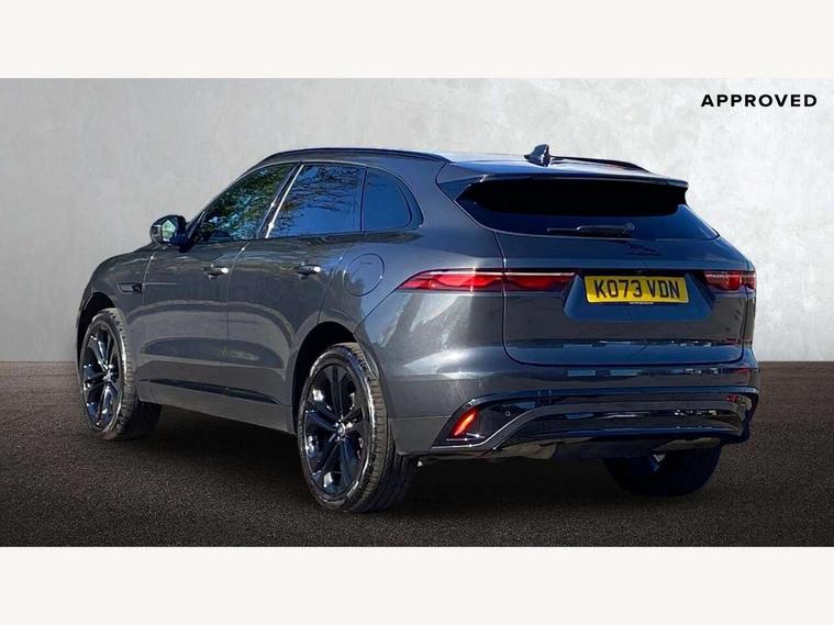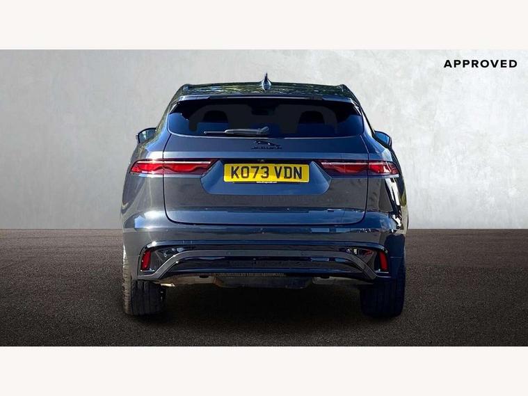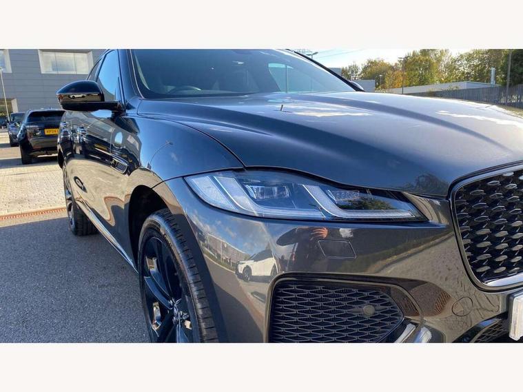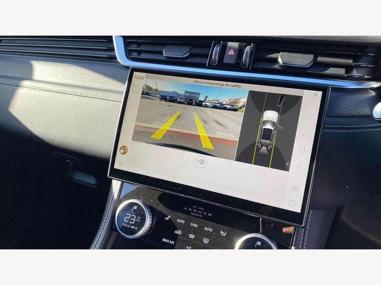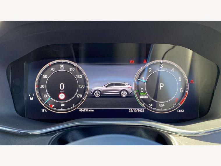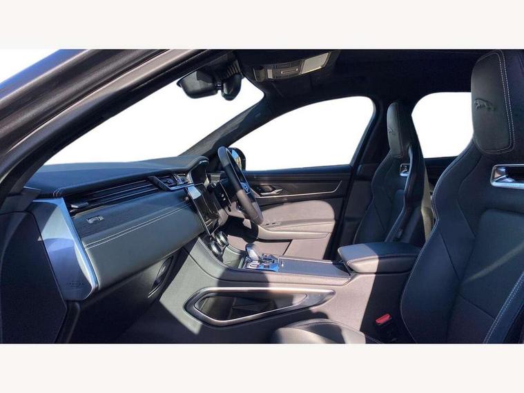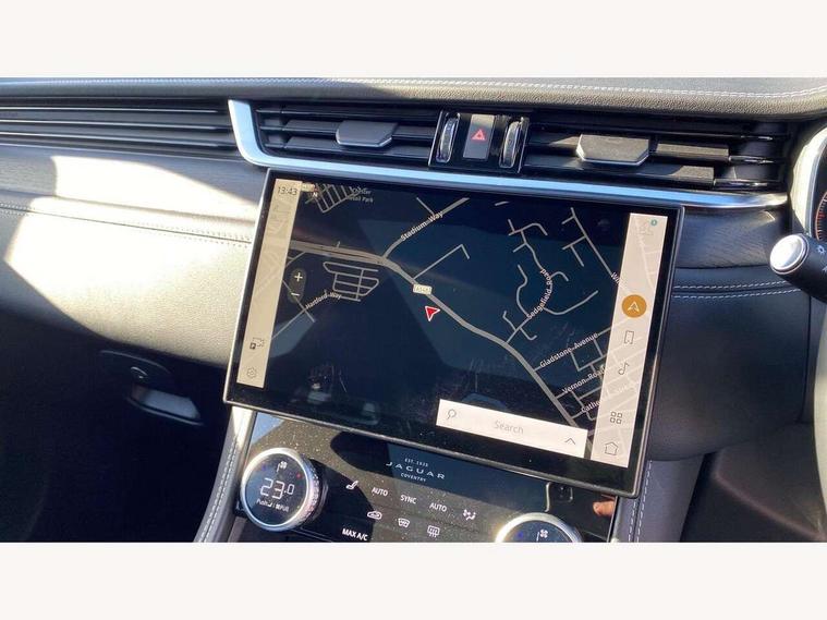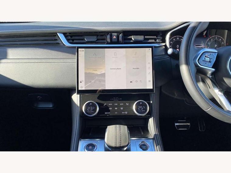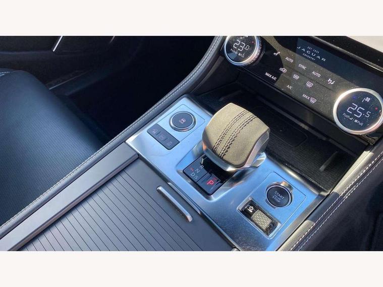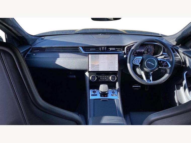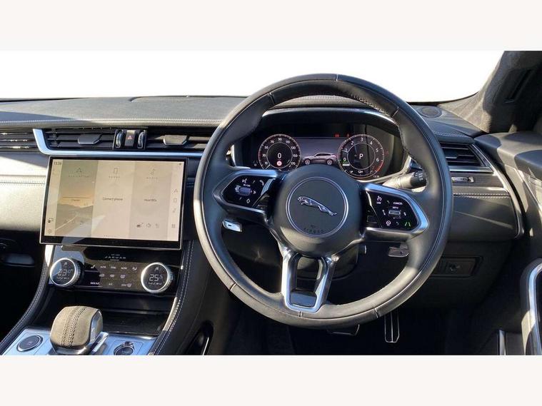 11.4" touchscreen, Adaptive cruise control with steering assist, Android Auto, Apple car play, Blind spot assist, Bluetooth connectivity, Clear exit monitor, Driver alert system, Driver condition monitor, eCall emergency call system, Eco driving style assistant, Electric power assisted steering, InControl remote, Interactive driver display digital with 12" TFT display, Jaguar Toggle shift selector, Lane departure warning system, Lane keep assist, Outside temperature gauge, Personalisation profile management, Pivi pro connected navigation system with app interface and media storage, Pro services and wifi hotspot, Push button starter, Rear collision monitor, Rear traffic monitor, Service interval indicator, Speed proportional steering, Start up sequence with movement in dials and lighting, Traffic sign recognition with adaptive speed limiter, Trip computer, Voice control system, Wireless device charging, 7 kW onboard charger, 8 speed automatic transmission, AC/DC charging, Adaptive dynamics, All terrain progress control, All Wheel Drive (AWD), Configurable dynamics, Home charging cable, Open differential with torque vectoring by braking, Public charging cable, AM/FM radio, Bluetooth streaming, DAB Radio (Digital Audio Broadcasting), Dynamic volume control, InControl apps, InControl protect, iPod integration, 3 flash lane change indicators, AHBA and animated directional indicators, Approach Illumination, Auto dimming rear view mirror, Automatic headlights, Electric heated/power fold memory door mirrors with approach lights and auto dimming driver side, Electric windows with one touch open/close and anti trap, F-Pace and R Dynamic badge, Green tinted glass, Heated front windscreen + heated washer jets, Heated rear window with timer, Illuminated metal tread plates with Jaguar script, Jaguar script and leaper, LED High level third brake light, LED tail lights, Metal load space scuff plates, Non acoustic front windscreen, P400e AWD badge, Privacy glass (rear side windows and rear screen), R Dynamic badge on side door, Rain sensor windscreen wipers, Rear fog lights, Rear metal tread plates, Rear side wing doors, Rear wiper, Trailer stability assist, Variable front intermittent wipers, 12V power point front, 3 rear headrests, 3 seat bench in 2nd row, Additional power sockets - Two additional USB sockets in rear centre console and one 12V socket in trunk, Air distribution speed, Bright metal foot pedals, Centre armrest console, Centre console with side storage, Configurable cabin lighting, Deletion loadspace storage rails, Door sill tread plates, Ebony suede cloth headlining, Electrically adjustable steering column, Fold flat front seats, Front centre armrest with storage compartment, Front door storage space, Glovebox finisher with jaguar script, Heated steering wheel, Hooks in loadspace, Illuminated glovebox, Interior front door handles with separate locking switches, ISOFIX on outer rear seats, Jaguar sense, Leather steering wheel, Luggage tie downs in loadspace, Mist sensing, Multifunction steering wheel, Overhead lighting console, Overhead stowage for sunglasses, Passive front head restraints, Premium carpet mats, Rear air vents, Rear armrest with twin cupholders, Rear centre headrest, Rear door storage space, Reversible boot floor, Satin chrome gearshift paddles, Shopping bag hook, Single front passenger seat, Sunvisors with illuminated vanity mirrors, Twin front cupholders with cover, Online Pack with data plan - F-Pace, 380mm front brakes and 325mm rear brakes, 3x3 point rear seatbelts, ABS, All surface progress control (ASPC), Brake pad warning light, DSC - Dynamic Stability Control, Electric parking brake (EPB), Emergency brake assist, Front airbags with passenger seat occupant detector, Front and rear seatbelt reminder, Front side airbags, Full length side window curtain airbag, Hill launch assist, Power operated child locks, Traction control, Tyre pressure monitoring system, Immobiliser, Keyless entry, Keyless Start, Locking wheel nuts, Perimeter alarm, Remote central locking, Valet mode,