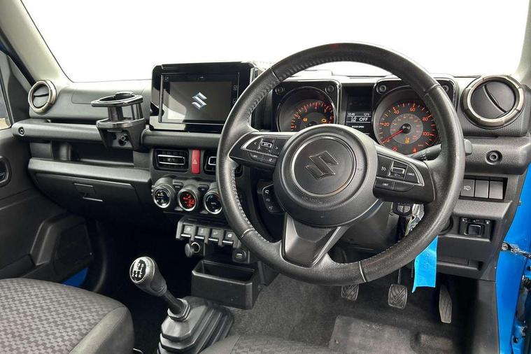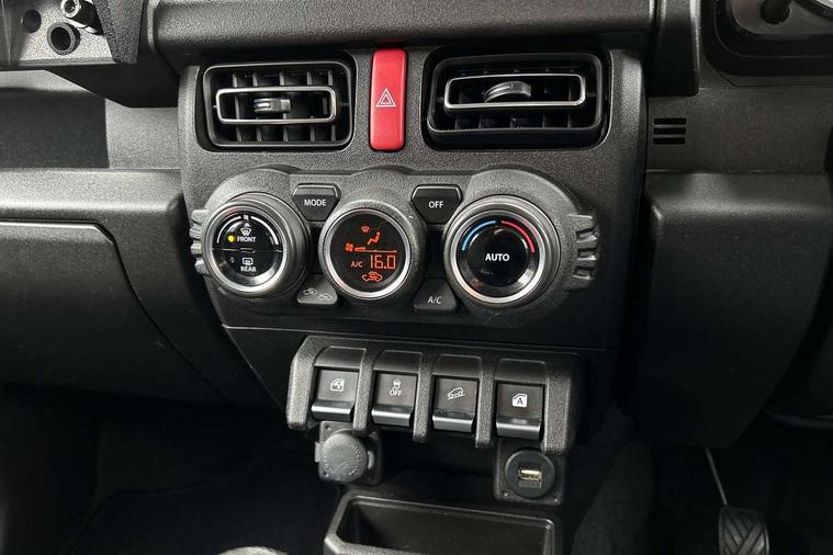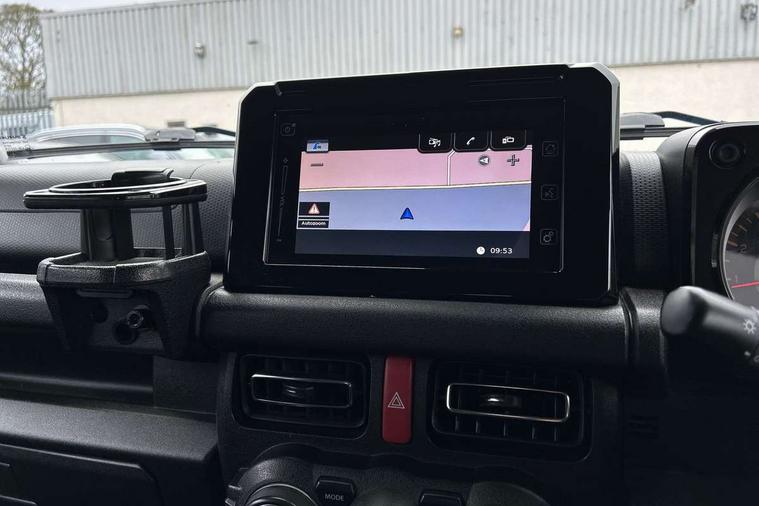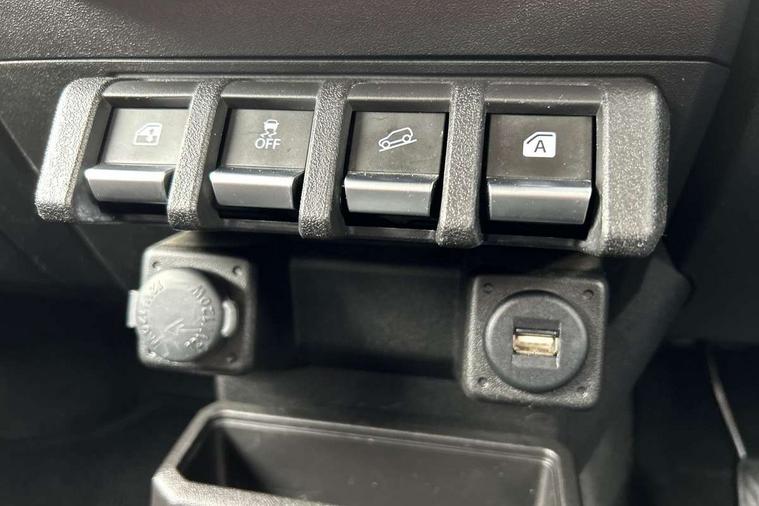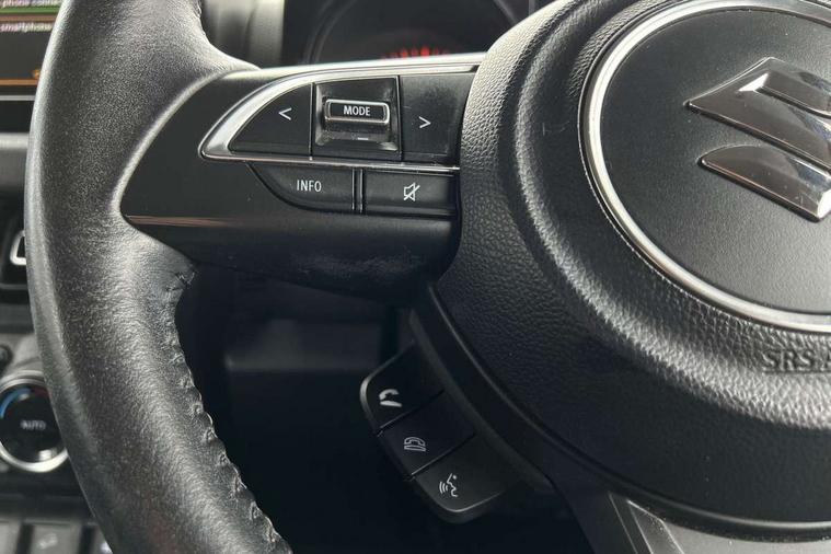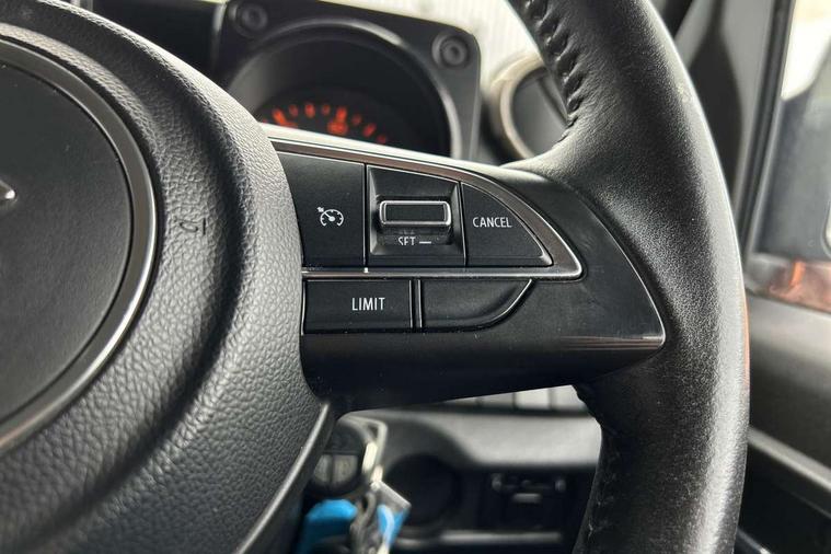 4wd "on" indicator, Bluetooth connectivity, Cruise control + speed limiter, Digital clock, Emergency stop signalling system, Lane departure warning system, Lights on warning, Navigation system, Power assist steering, Smartphone link display with Apple CarPlay and Android Auto, Suzuki's Drive select 4x4 system, 2 speakers, DAB Digital radio, Steering wheel audio controls, USB connection, Automatic headlamps, Black wheel arch mouldings, Body colour door handles, Daytime running lights, Electric front windows + drivers one touch, Electrically adjustable door mirrors, Front fog lamps, Front intermittent wash wipers, Gloss black door mirrors, Headlamp washer, Heated door mirrors, High beam assist, LED headlamps, Rear privacy glass, Rear wash/wipe, 12V Accessory socket in centre console, 12V socket in luggage compartment, 3 spoke leather covered steering wheel, 50/50 split folding rear seat, Automatic air conditioning, Centre console cupholder, Chrome interior door handles, Driver's vanity mirror with cover/ticket holder, Fabric upholstery, Front cabin lights, Front head restraints, Front passenger side assist grip, Heated driver and front passenger seats, Rear seat head restraint, Storage box in luggage compartment, 3 point ELR front seatbelts with pretensioners and force limiters, 3 point ELR rear seatbelts x2 with pretensioners and force limiters, ABS with Brake Assist, Curtain airbags, Driver and passenger airbags, Dual sensor brake support, Electronic Stability Programme (ESP), Front passenger airbag deactivation, Hill descent control, Hill hold control, Side airbags, Side impact protection beams, Tyre pressure monitoring system, Immobiliser, Locking wheel nuts, Remote central locking, Security alarm, 15" Alloy wheels, Full size spare wheel,