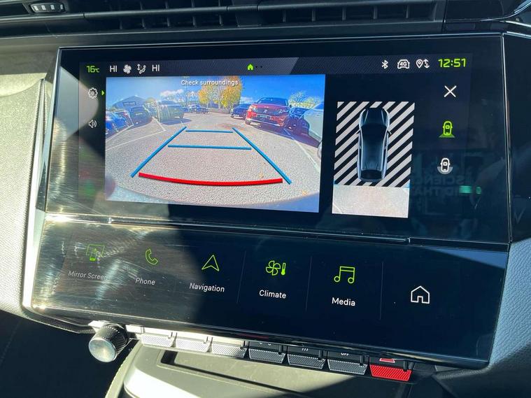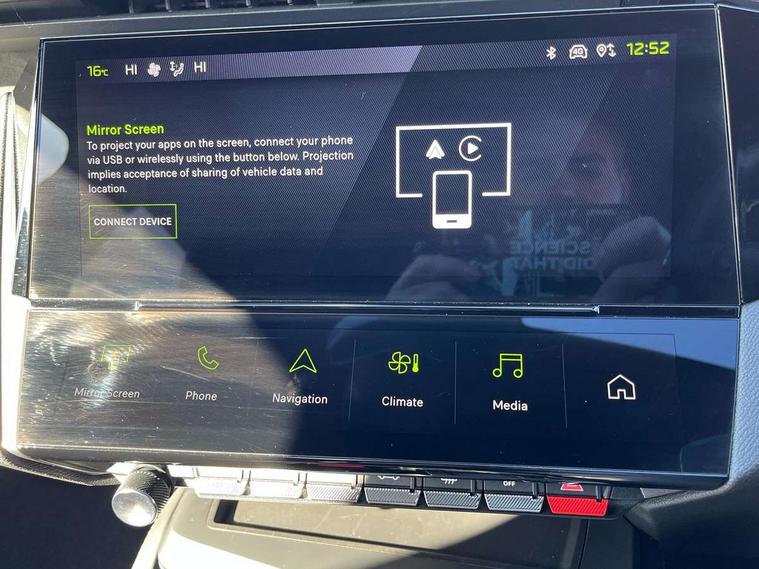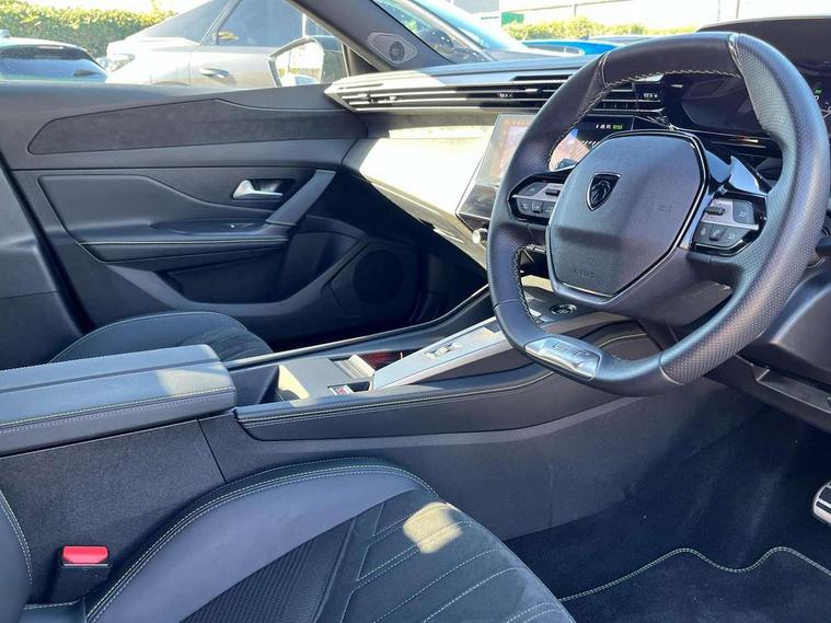Bluetooth telephone facility, Compact automatic gearbox impulse selector, Driver attention warning, Driver's profile setting, Emergency call service, Extended traffic sign recognition, Exterior temperature indicator with ice warning, Front and rear parking sensors, Intelligent speed adaptation, Lane keep assist, Multi driving mode selector - Eco / Normal / Sport mode selector, Multi function trip computer, PEUGEOT i-Cockpit with 10" 3D digital customisable instrument panel display, PEUGEOT i-Cockpit with 10.0" high definition (HD) capacitive touchscreen, PEUGEOT i-Cockpit with compact steering wheel, PEUGEOT i-Connect Advanced - Over the air updates, PEUGEOT SOS and assistance, Push button start, Speed limit recognition and recommendation, Wifi and voice recognition, Wireless apple car play/android Auto, 2x USB sockets in front, 2x USB sockets in rear, DAB Digital radio, PEUGEOT i-Cockpit with PEUGEOT configurable i-Toggles, 3rd brake light, 408 Model designation badges on front and rear, Acoustic laminated front windows, Acoustic tinted windscreen, Automatic hazard light activation upon heavy brake application, Body colour door handles, Body colour rear spoiler, Dark tinted rear side and tailgate windows, Electric, heated, and power folding door mirrors, Frameless electrochrome rear view mirror, Front and rear electric windows with one touch/anti pinch, Front grille with vertical body colour stamping, Full LED matrix headlights with automatic adjustment, Gloss black finish B pillar, Gloss black rear cluster connecting strip, High beam assist, LED rear number plate lights, LED side indicator lights integrated into door mirrors, Lower body and wheel arch "SUV style" protection, Nera black door mirrors, PEUGEOT shield on front doors, PEUGEOT signature LED front daytime running lights incorporating indicators, Rear bumper grained black, Rear full LED 3D Peugeot new claw effect lights with sequential welcome sequence upon unlocking the vehicle, Rear Hybrid badging, Rear reversing lights, Rear side wing doors, Roof mounted 'fin' style antenna, Smart electric tailgate, Tailgate with heated rear windscreen and wiper blade, 1/3 2/3 'Magic Flat' folding rear seats with controls located in the boot, 2x 12V sockets, 3 seat bench in 2nd row, 4 Grab handles retractable and damped, 8 Colour personalisable ambient lighting, Air purification system 'Clean Cabin', Aluminium door sills and boot sill, Aluminium pedals and footrest, Arch design central console with storage, Central front armrest with storage compartment, Dual Zone automatic air conditioning with AQS 3, Dynamic front seats, Electric power steering with reach and rake adjustable steering column, Front central console with two cup holders, Gloss black waistbelt (window weather strips), Glovebox with LED lighting, Heated steering wheel, High air vent system, Luggage cover, Luxury carpet mats with adamite green stitching, Multifunction full grain leather steering wheel with admite green stitching & GT badging, Piano keys toggle switches to access main functions, Roof lining - Mistral black, Seatbelt unfastened on the move audible and visual alert for front and rear seats, Single front passenger seat, Ski hatch with central rear armrest with cup holder, Steering wheel mounted gearshift paddles, Sunvisor with concealable vanity mirrors with LED lighting, Driver Sport Pack - 408, Visibility pack - 408, 2x Isofix child seat fitting on outer rear seats, 3x3 point rear seat belts, ABS + EBD + EBA, Active safety brake with night function/cyclists/pedestrians, Adaptive driver and front passenger airbags with passenger airbag deactivation function, Advanced emergency braking system (Video - AEB) includes Radar, Automatic post collision braking, Child locks on rear doors, Driver/front passenger side airbags, Electronic parking brake, ESP, Front and outer rear seatbelts with pyrotechnic pretensioners, Front and rear curtain airbags, Front and rear disc brakes, Front optimised safety headrests and rear retractable headrests (x3), height adjustable, Front three point retractable seatbelts with force limiters, Hill start assist, Tyre under inflation monitoring and indirect detection with visual indicator and warning sound, 2x keys, Acoustic vehicle alert system (AVAS), Anti-theft wheel bolts, Automatic door locking when moving off, Deadlocking system, Electronic code immobiliser, Locking wheel nuts, Peugeot open and go system includes keyless entry with proximity locking and unlocking, Thatcham cat. 1 alarm with anti lift sensor, Alloy wheel 'star' centre cap, Tyre puncture repair kit,