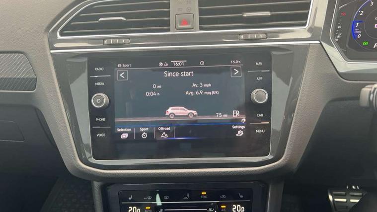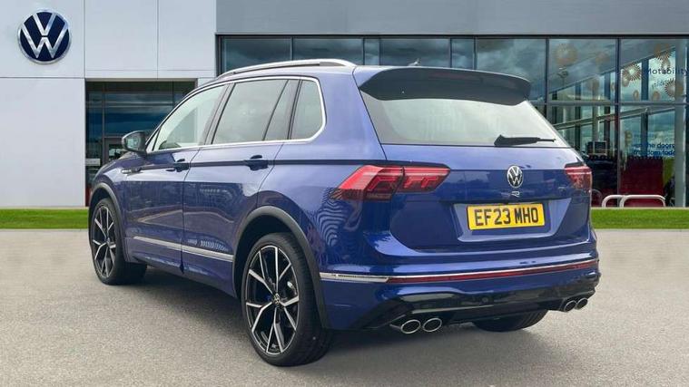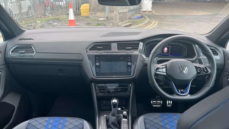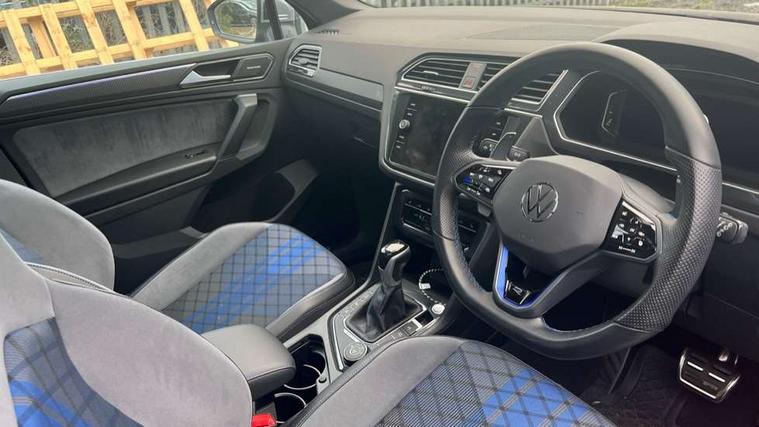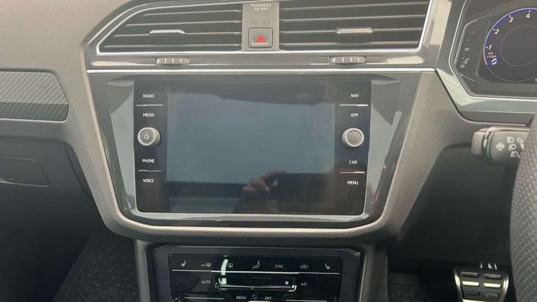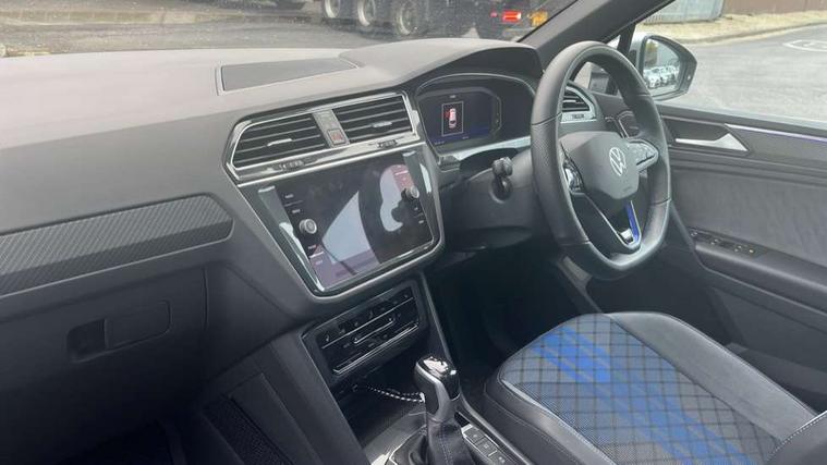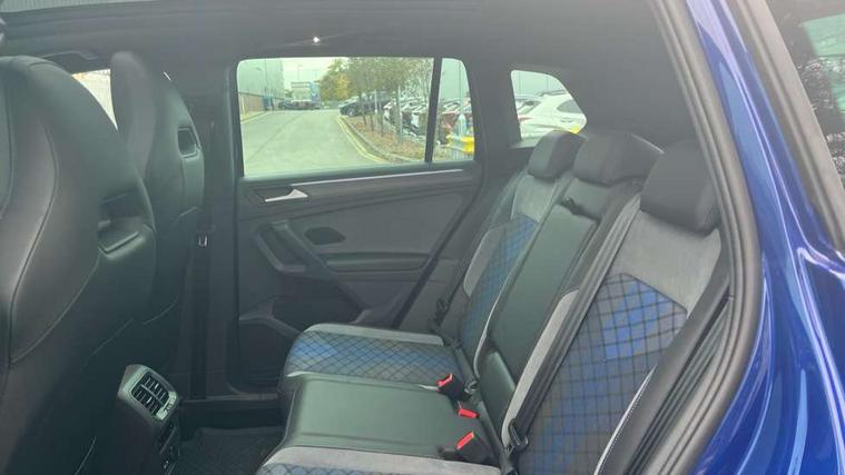 Adaptive cruise control ACC stop and go including speed limiter, App-Connect incl. App-Connect Wireless for Apple CarPlay and Android Auto, Bluetooth phone integration system, Distance control assist, Driver alert system, Driver profile selection, Dynamic road sign display, eCall emergency call system, Electromechanical speed sensitive power steering, Engine start/stop button, Instrument cluster mph speedometer Great Britain, Lane keeping system Lane Assist, Lights on warning, Motorised electric tailgate operated via key fob, drivers door and foot movement under tailgate, Multifunction front facing camera, Outside temperature display, Premium multifunction display with multi colour display, Rev counter, Revision / skills operating concept travel assistant, Service interval indicator, Speed limit display, Start/stop system with regenerative braking, Tailgate/trunk lid unlocking from outside, Trip computer, Warning sound and light for doors and tailgate open, ACC - Adaptive chassis contol with adaptive dampers, All wheel drive - 4Motion, Battery regeneration during braking, XDS electronic differential lock for improved traction and handling, 4 X 20 watt output, 8 speakers, Diversity antenna for FM reception, SD card slot, Simultaneous pairing of 2 compatible mobile devices, SMS functionality - read, compose and send SMS messages using touch-screen display, Title and cover art display, USB C ports, Auto dimming interior rear view mirror, Automatic headlight control system, Body colour door handles, Body coloured door mirrors with integrated indicators, Chrome matt mirror covers, Chrome moldings on the side windows, Coming/leaving home lighting function, Dynamic headlight range control, Front and rear electric windows, Front illuminated door sills with R logo, Heated rear window, High level 3rd brake light, IQ light-Adv high beam, Dynamic light assist for LED matrix headlamp+LED separate DRL+DCL, dark red rear LED tech, Poor weather light+ cornering light, Laminated safety glass windshield, heat and sound insulating, LED rear number plate lights, License plate carrier in front and rear, Poor weather light and cornering light, Privacy glass for rear side windows and rear window, R-Logo light projection, R-Logo on radiator grille with side panels and rear, R-specific diffuser, painted black with cut out for trailer hitch, R-Specific front and rear bumpers, Rain sensor windscreen wipers, Rear fog lamp, Rear side wing doors, Rear spoiler in R style, Rear windscreen washer and wiper with interval delay, Side and rear windows in heat insulating glass, Silver anodised roof rails, Trailer Stability Programme, Windscreen wipers/ intermittent wipe + 4 position delay, 12V outlet in center console rear and in luggage compartment, 12V outlet in front and tray, 2 cup holders in front, 2 LED front reading lights, 2 LED rear reading lights, 3 bench rear seats in 2nd row, 3 rear headrests, 4 load lashing points, 40:20:40 split folding rear seats, Air Care Climatronic 3 zone automatic climate control with enhanced air filter and controls in the rear, Backrest release for left front seat, Black headlining, Climate control unit rear with touch function, Door and side trim panel in foam film, insert in leatherette, Floor mats with R-Logo and stitching, Front centre armrest, Front footwell illumination, Front seats head restraints (x-adjustment), Height adjustable front seats, Height/reach adjust steering wheel, Instrument lighting white adjustable panel illumination, Interior light with delay, Isofix Preparation 2 Rear child seats, Leather gear knob, Lighting door sill trim at front with R Logo, Lockable cooled glovebox, Luggage compartment lighting, Luggage net, Pedals and footrest in stainless steel, R Specific key caps, R-specific sport skin with R Logo in active Info dsiplay, R-taster (direct selection of race mode/ flap control), Rear bench seat asymetrically split folding, longitudinally movable and folding with load-through hatch and center armrest, Remote unlocking for rear seat backrest, Removable luggage cover, Removable rear headrests, Safety optimised front head restraints, Single front passenger seat, Sliding/reclining rear seats, Standard rear seat release, Storage compartment in driver's door, Storage compartment in passenger's door, Storage compartment in rear doors, Storage compartments in luggage area left and right, Storage tray on dashboard, Sun visors with illuminated vanity mirrors, Tool kit, Top sports seats integrated headrest, blue R-Logo in front seats, seat centre panels and outer rear seats in fabric inner side bolster art Velors, Variable boot floor, height adjustable and removable, Easy open and close pack with safelock - Tiguan, 3 point seat belt for centre rear seats, 3 point seat belts with seat belt pretensioners for the outer rear seats, Active bonnet, Curtain airbags for front and rear passengers, Driver/Front Passenger airbags, Drivers knee airbag, Electronic parking brake with auto hold, Electronic Stability Control with driver steering recommendation, ABS, ASR, EDL, EDTC and trailer stabilization, Front assist with autonomous emergency braking (for Adaptive Cruise Control ACC up to 130 mph), Front disc brakes, Front passenger airbag deactivation, Front side airbags, Height adjustable front 3 point seatbelts + pretensioners, Hill hold control, Manual child proof rear door locks, Pedestrian monitoring system, Power assisted brakes, Proactive passenger protection system in combination with front assist, Rear disc brakes, Rigid safety cell with front and rear crumple zones, Two tone horn, Tyre pressure monitoring system, Warning sound and light for front seat belts if unfastened, Anti theft alarm system with interior monitoring, backup horn and towing protection, Anti theft wheel bolts, Central locking system with safelock radio remote control and 2 remote control folding keys, Electronic engine immobiliser, Tyre mobility kit Includes 12V compressor and tyre sealant,