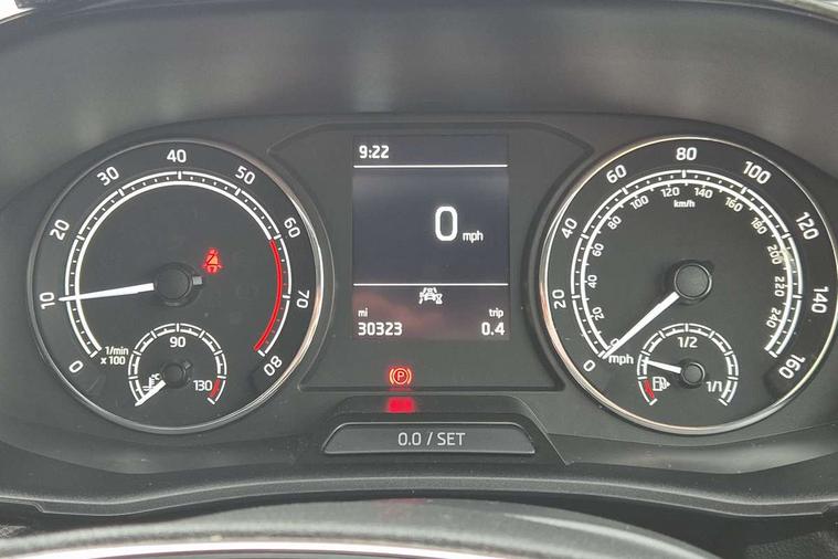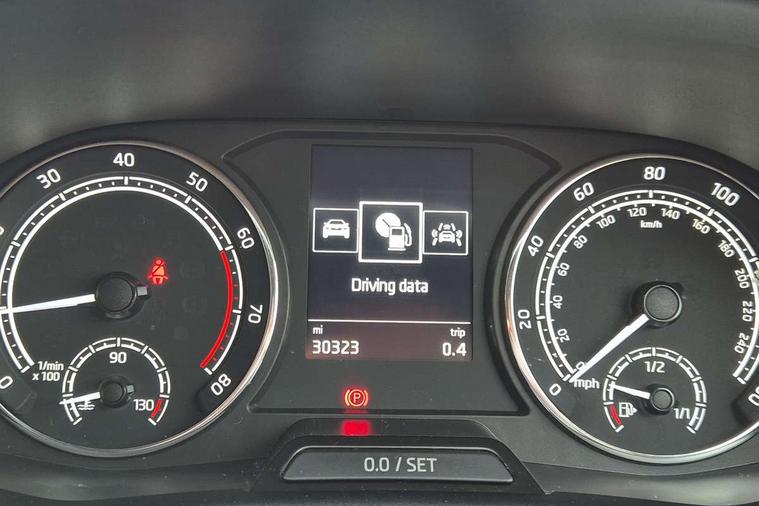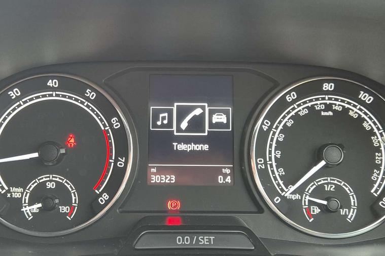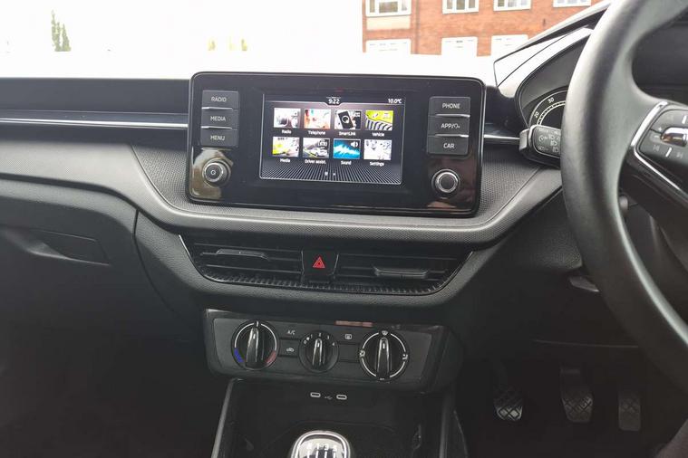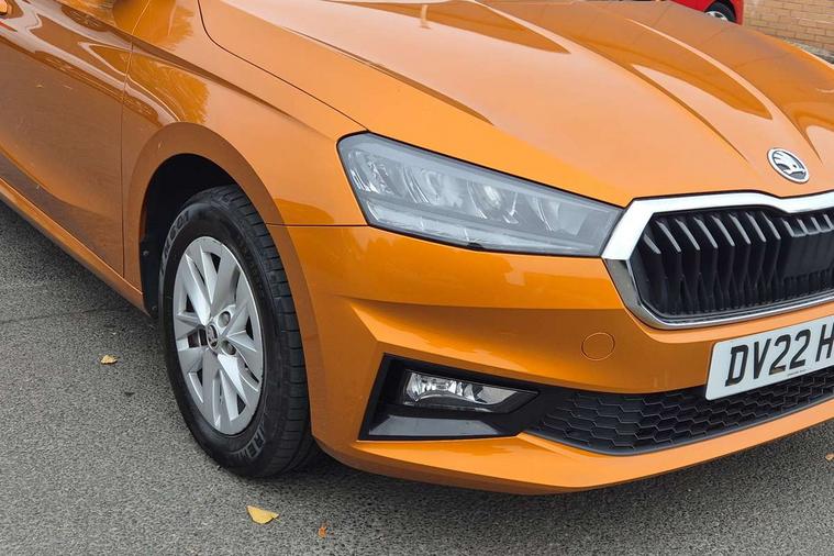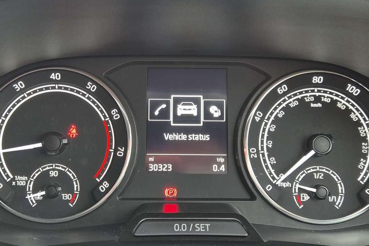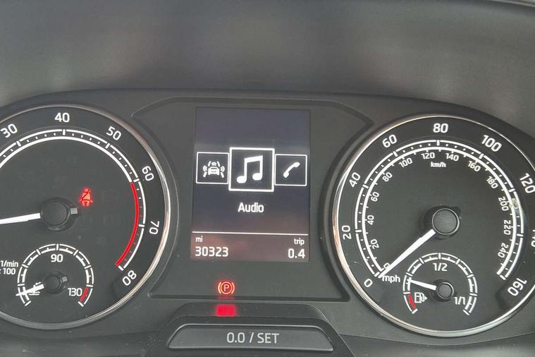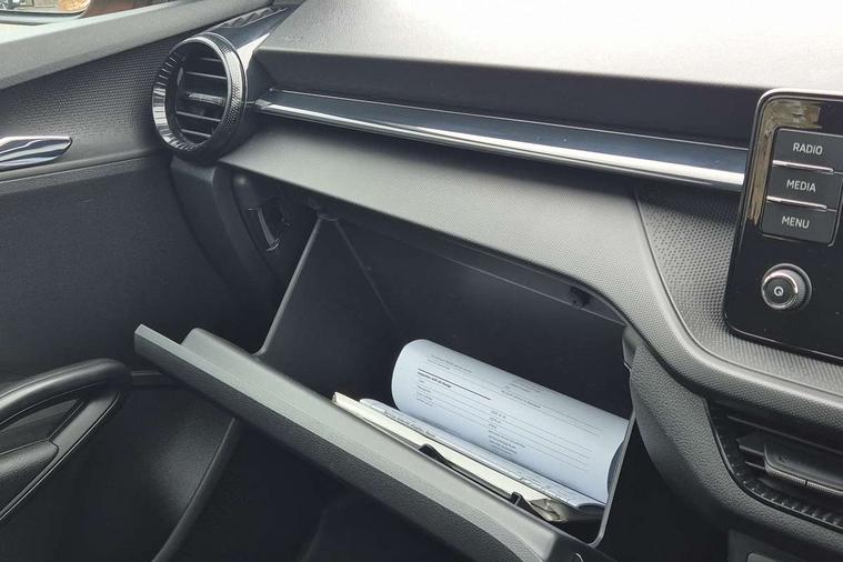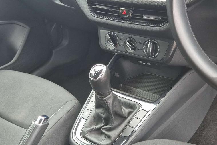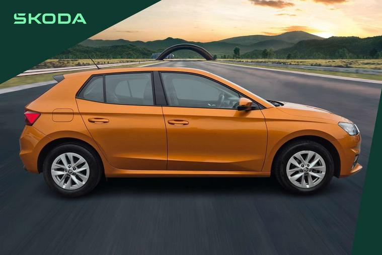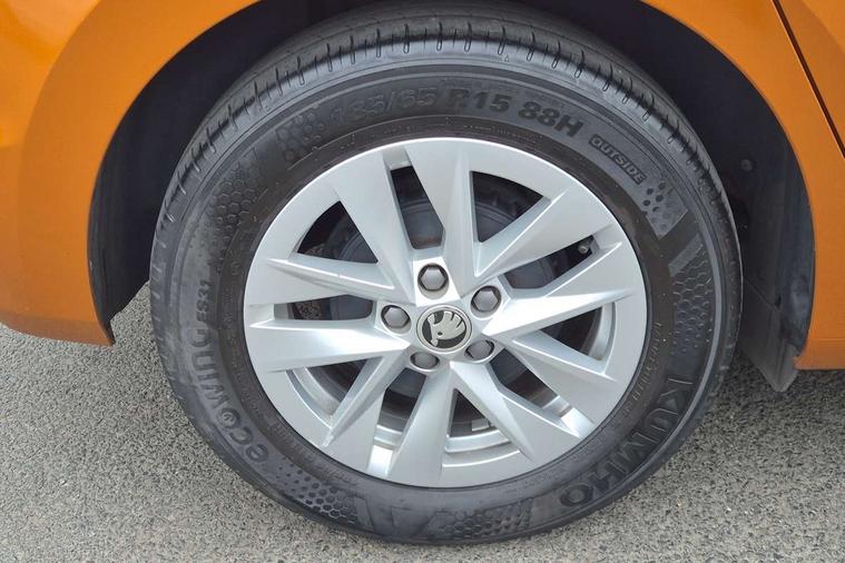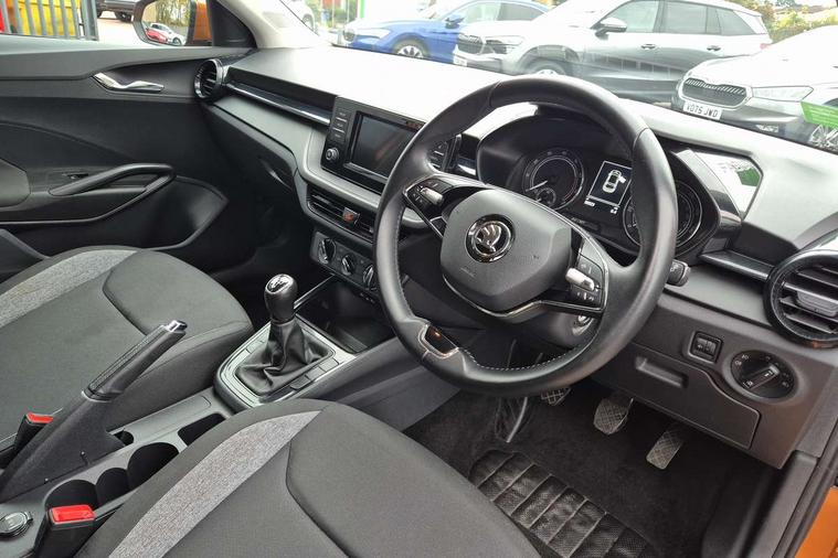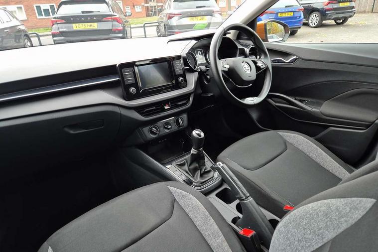 Bluetooth connection, Driver alert system - DAS, Electromechanical power steering, Exterior temperature gauge, Lane assist including road edge detection, Multifunction trip computer in black and white, Service interval indicator, Speed limiter, 2x USB-C in the front (for data transmission and charging), 4 speakers in front, Auxiliary socket for external MP3 player, DAB digital radio reception, Radio Swing with 6.5" colour display, Basic LED Headlights, Basic rear lights, Body colour door mirrors, Body coloured bumpers, Dimming rear view mirror with black frame, Door mirror integrated indicators, Electrically adjustable and heated door mirrors, Electrically adjustable front windows with function auto up/down, Front fog lights, Front window wiper intermittent control, Headlight range control - Automatic, Ice scraper in fuel cap, LED daytime running lights with coming and leaving home feature, Mechanical adjustable rear windows, Rain sensor, Rear LED fog light, Rear side wing doors, Rear window wiper with washing nozzles, Roof mounted spoiler, SKODA tailgate lettering in chrome, Third brake light, 2 reading lights in front and 2 reading lights in rear, 2 spoke leather multifunction steering wheel, 3 rear headrests, Backrest split and folding, Central console with fixed cup holder and storage box, Chrome handbrake release button, Fabric upholstery, Gearshift knob/handle in leather, Grain satin black interior door handles, Hand brake lever handle in leather, Height adjustable front headrests, Height adjustable front seats, Height adjustable steering wheel, ISOFIX and TopTether anchorage points to the outer rear seats, ISOFIX and TopTether on the front passenger seat, Luggage compartment lighting, Manual air conditioning, Manually adjustable lumbar support in front seats, Pollen filter, Rear seat bench unsplit, Single front passenger seat, Storm grey headlining, Sun visors with mirror and airbag label on passenger side, Ticket holder, 3-point height adjustable front seats belts with pretensioner and force limiter, Automatic warning lights in case of crash, Driver and passengers airbag with switch off function, e-Call+, ESC including ABS, MSR, ASR, EDS, HBA and XDS, Front and rear seat belt warning, FRONT ASSIST (AEB City and AEB Inter Urban), Front side airbags, Head airbags, One tone horn, Pedestrian protection, Three rear 3-points safety seat belts with pretensioner and force limiter including stop function for outer rear seat belts, Tyre pressure monitoring system, Anti-theft alarm system including immobiliser, interior monitoring, backup horn, and towing protection, Central locking with radio remote control, interior controls, SAFE function and 2 foldable keys, Black painted air vents, Glossy black decorative trim, Grain satin black central console cover, Grain satin black lower decorative trim, Satin black door and side trim panel in front, Anti-theft wheel bolts protection, Super-low rolling resistance tyres,