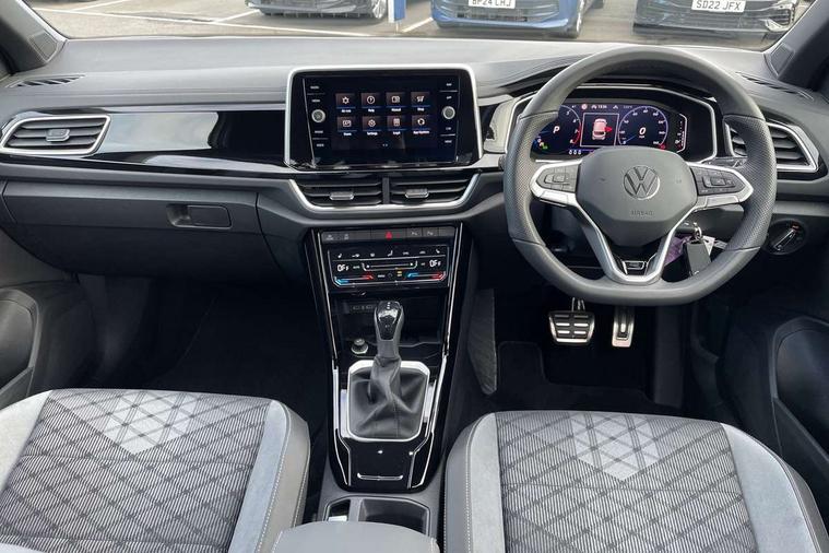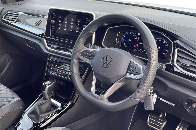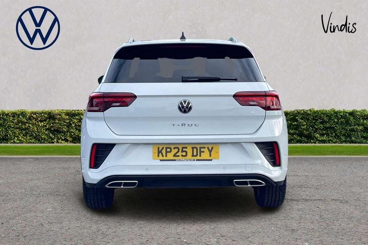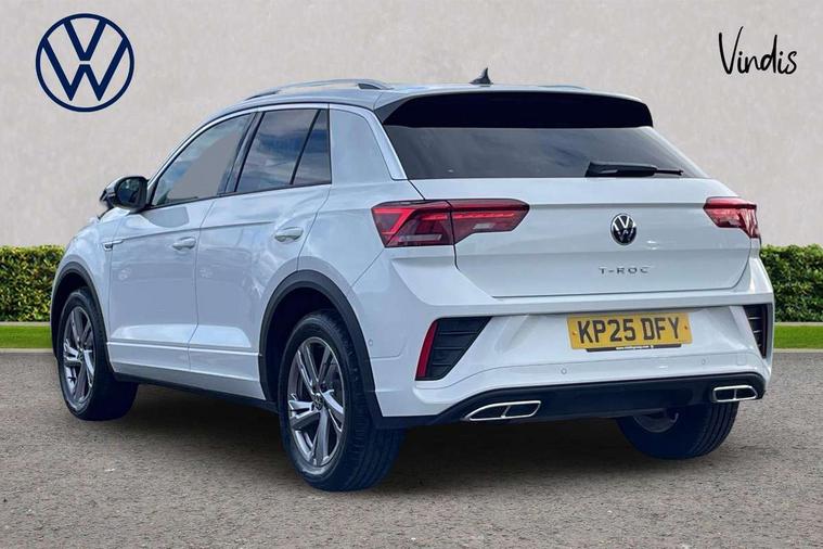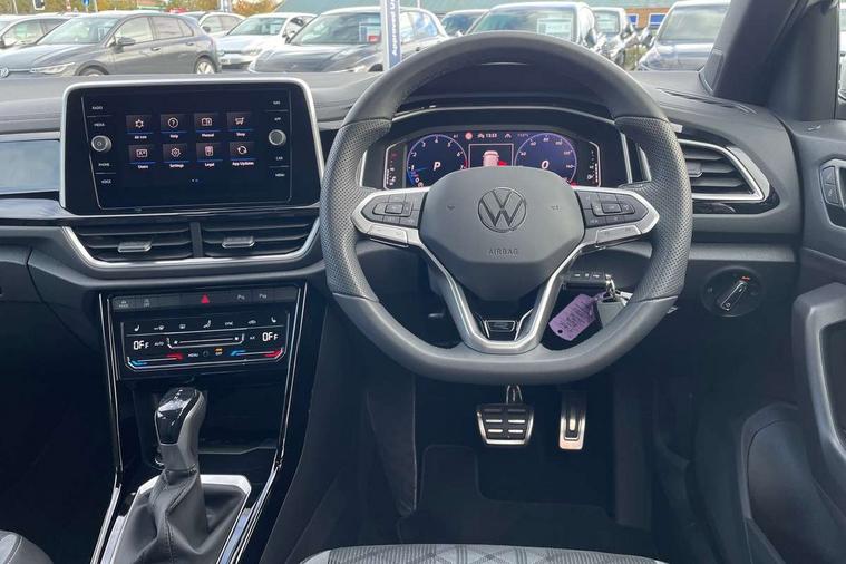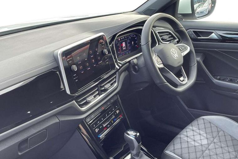 10.25" Digital cockpit pro, Advanced driver attention and drowsiness monitor, Emergency call service, Lane keeping system Lane Assist, Mobile phone interface, Modified key software - reduce switch off time for key status change to Long no motion, Online services, Park assist including front and rear parking sensors, Service interval indicator, Tailgate/trunk lid release from outside, Think blue trainer driver tips and journey analysis, Warning sound and light for front seatbelts unfastened, Wireless app connect, Battery regeneration during braking, Start/stop function with battery regeneration, DAB Digital radio, Diversity antenna for FM reception, Front and rear 6 speakers, Music playback - MP3, WMA and AAC files, Premium USB cable in choice of either Apple or Android smartphone compatibility, SD card slot, Simultaneous pairing of 2 compatible mobile devices, Title and cover art display, We Connect and We Connect Plus functionality, Auto dimming interior rear view mirror, Automatic hazard lights activation under emergency braking, Automatic headlight control with LED separate daytime running lights with coming/leaving home function, Body coloured exterior mirror housings and door handles, Electrically adjustable and heated door mirrors, Extended roof spoiler, Exterior mirrors aspherical on driver side, convex on front passenger side, External USB type C socket and charging sockets, Front windscreen wiper with intermittent wipe and 4 position delay, Heated rear window, LED 3rd brake light, LED rear combination lamps, LED rear number plate lights, Power windows with comfort operation and circuit breaker, Privacy glass for rear side windows and rear window, R-Line design body coloured bumpers, Rain sensor, Rear exhaust tailpipe, Rear fog light on one side and reversing lights on both sides, Rear side wing doors, Rear wash/wipe with intermittent wipe setting, Remote electrically foldable door mirrors, puddle lights and reverse activated passenger's door mirror, 12V power socket in centre console, 3 rear head restraints, 3 seat bench in 2nd row, 4 load lashing points in luggage compartment, Air care climatronic air conditoning system with active combination filter and 2-zone temperature control, Black roof lining, Chrome plated decorative trims, Chrome plated radiator grille inserts, air vent surrounds and light switch surrounds, Door and side trim panel with leatherette insert, Front + rear carpet mats, Front centre armrest, Front cupholders x 2, Front footwell illumination, Front reading light, Front scuff plates with R Line logo, Front seat back storage pockets, Glove compartment door with light, Instrument lighting, white adjustable panel illumination, Interior ambient lighting and surround lighting, Interior light delay, Isofix child seat preparation, Leather gearshift handle, Load-through provision with cup holder when folded down ('Unsplit rear seat bench, split folding backrest, with centre armrest), Luggage compartment lighting, Single front passenger seat, Stainless steel pedals, Storage compartment in left and right luggage area, Storage compartment in rear doors, Storage compartments in driver and front passenger doors, Sunvisors with illuminated vanity mirrors, Variable boot floor, height adjustable and removable, Driver assistance pack without proactive passenger protection - T-Roc, 3 point height adj front seatbelts + pretensioners, 3 point seatbelts in outer rear with ECE label, ABS, Child locks on rear doors, City emergency braking and pedestrian monitoring, Driver and front passenger airbag with front passenger airbag deactivation, Driver and front passenger safety-optimised head restraints, Drivers seatbelt reminder, Electronic parking brake, Electronic Stability Control (ESC) inc EDL (Electronic Differential Lock) and ASR (Traction Control), Front and rear passengers curtain airbag system including front side airbags, Hill start assist, Predictive pedestrian protection, Rear disc brakes, Two tone horn, Tyre pressure loss indicator, Volkswagen roadside assistance, Piano black decorative inserts in dashboard and front door trim panels, Trims for alloy wheels,