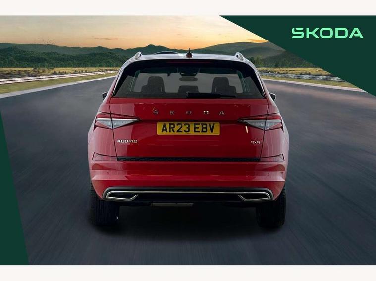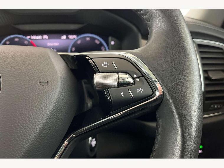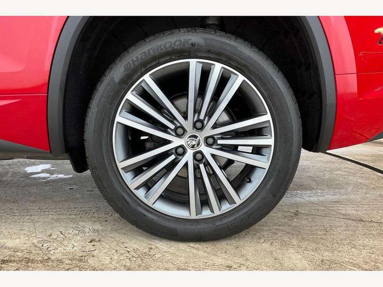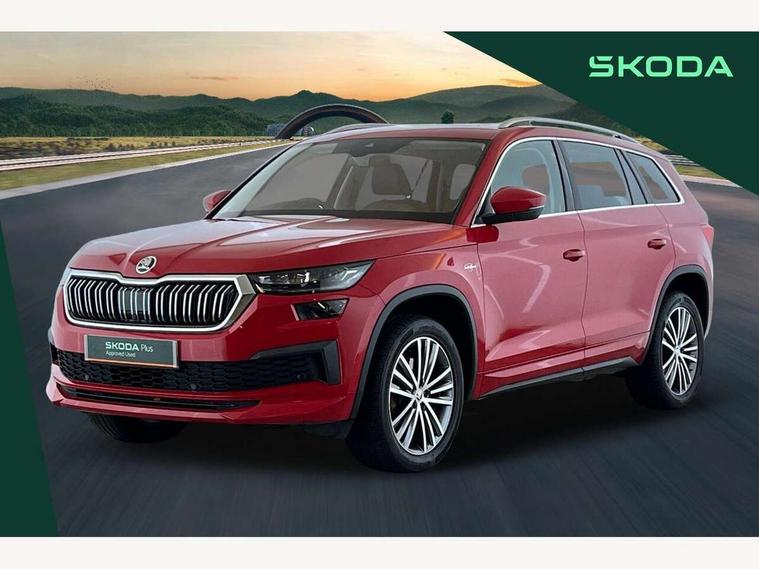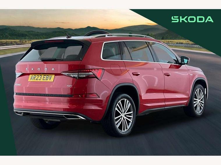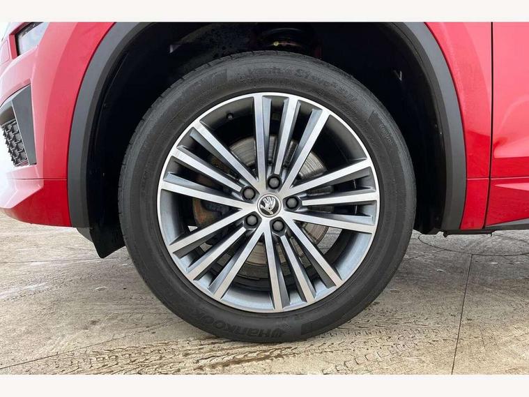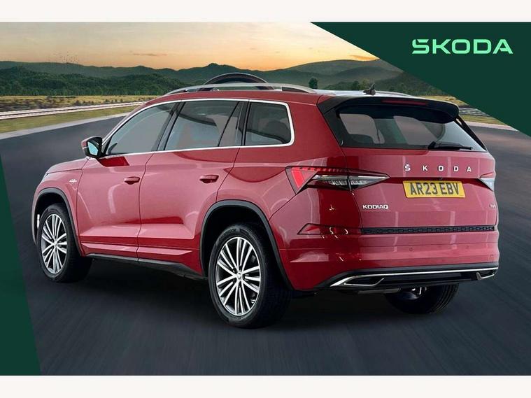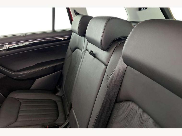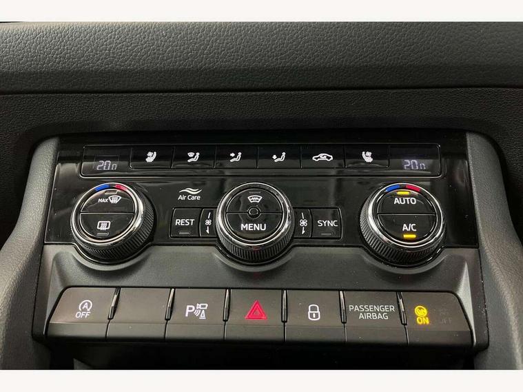 Area view, Blind spot detection system, Bluetooth system, Columbus satellite navigation with 9.2" touchscreen, integrated Wi-Fi, web radio, Digital voice enhancement, e call+, ECO Stop/start function, Exterior temperature indicator, Progressive steering, Smartlink wireless for apple carplay and wired for android auto, Speed limiter, Tailgate unlocking from outside, USB C Port x 2 in front centre console, Virtual Cockpit - 10.25" digital display, Wireless charging, Canton sound system, DAB Digital radio, Aero front windscreen wipers with intermittent function, Aero rear window wiper, Auto dimming rear view mirror, Black wheel arch surrounds, Body colour bumpers, Body colour door mirrors and handles, Body colour door panels, Chrome front grille, Chrome roof rails with chrome window surround, Electric adjustable/heated/folding door mirrors, driver side auto dimming with boarding sports and memory function, Electric front and rear windows, Extended rear spoiler with finlets in gloss black, Front fog lights, Full LED matrix headlights with AFS (adaptive front light system), cornering function and AWL (all weather lighting system), Headlight washers, Heated rear window, Invisible tailpipe, L&K front and rear bumpers including lower rear chrome strip, LED daytime running lights, LED rear fog light, LED third brake light in rear spoiler, Light assistant (coming/leaving home/tunnel light), Off-road style lower front bumper element, Panoramic sunroof, Privacy glass, Rain and light sensors, Rear LED lights (high functionality) with welcome effect and dynamic indicators, Rear side wing doors, Safety reflectors on front and rear doors, Window control switches with black trim, Without engine designation, 12V socket in boot, 2 rails with 2 hooks, 2 seat bench in 3rd row, 3 seat bench in 2nd row, 4 foldable roof handles with rear coat hooks, 60:40 foldable rear seat with sliding adjustment and backrest angle adjustment, Aluminium pedals, Bottle holders in door panel in the 1.5 litre front and 1 litre rear, Cargo storage compartments, Chrome headlight control button, Chrome interior door handles, Coat hooks on B pillar, Covered storage compartment on driver side, Decorative door sill covers, Front centre armrest with storage compartment, cup holder and 12V socket, Front courtesy lights, Gear shift lever with chrome frame and black gloss insert, Grey stitching in front and rear armrests and door armrests + door inserts, Height adjustable front headrests, Illuminated and cooled glovebox, Illuminated luggage compartment, Isofix child seat fittings in outer rear seats with top tether, Manually adjustable steering column, Net programme in boot (1x horizontal Net, 2x vertical Nets), Overhead glasses storage compartment, Pollen filter, Rear centre armrest with cupholders, Single front passenger seat, Sliding trunk cover, Small Bags on the inner sides of the front backrests, Sunvisors with illuminated vanity mirrors, Three rear height adjustable headrests, Ticket holder on A Pillar, Umbrella in door panel, Variable boot floor, LED Interior light pack - Kodiaq, Auto door release and activation of warning lights in the event of an accident, Child locks on rear doors, Driver and front passenger airbag with knee airbag and front passenger airbag deactivation, Electronic parking brake with hill start assist, Emergency rear braking signal, ESC (incl. ABS+MSR+ASR+EDS+HBA+DSR+RBS+MKB), Front assist with autonomous emergency braking, Front side airbags with curtain airbags, Fuel cut off safety device, Height adjustable front 3 point seatbelts + pretensioners, Hill hold control, Rear disc brakes, Safety vest holder in door, Seat belt reminder for all seats, Three point rear seat belts, Two tone horn, Tyre pressure monitor, Alarm with interior monitoring and tilt sensor with safe function, Anti-theft wheel bolts, Immobiliser, Keyless entry and start system (KESSY), Remote central locking with 2 keys, Grey stitching in dashboard, Piano black decorative inserts, Plaquette L&K front fenders, Temporary spare wheel (space saver),