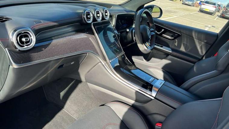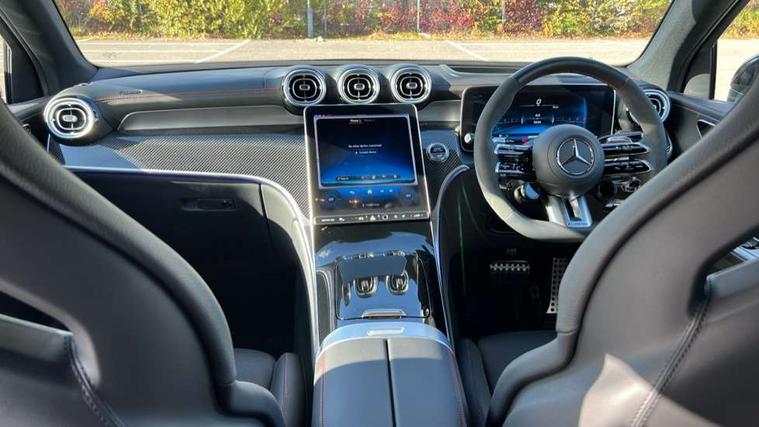 11.9" high resolution multimedia colour display, 12.3" Digital individually configurable instrument display, 360 degree camera, Active parking assist with parktronic system, AMG DYNAMIC SELECT with a choice of driving modes (Slippery, Comfort, Sport, Sport+, Individual), Attention assist, Bluetooth interface for hands free telephone, Dashcam - front camera for video recording, Easy pack automatic powered tailgate, eCall emergency call system, Head up Display, MBUX augmented reality for navigation, MBUX navigation premium, MBUX voice control activated by keywords "Hey Mercedes", Mercedes connect me with remote online services, Outside temperature display, Pre-installation for digital key transfer, Rear axle steering, Remote boot release, Service indicator (ASSYST), Smartphone integration, Sports direct steer system with speed sensitive steering, Status display for rear seat belts in instrument cluster, Traffic sign assist, Trip computer, Wireless charging surface integrated into quick stowage tray in front of centre console, 4MATIC permanent four wheel drive, 63 litre fuel tank, 9G TRONIC plus automatic transmission, Agility control comfort suspension, Petrol Particulate Filter (PPF), Burmester 3D surround sound system, DAB digital radio tuner, MBUX extended functions, Adaptive brake lights, AMG bodystyling front apron, rear apron and side skirts, AMG exhaust system with sporty engine sound, AMG radiator grille with vertical struts in high gloss chrome and AMG logo, AMG spoiler lip, Auto dimming rear view mirror, Auto headlights, Body colour door mirrors, Chrome roof rails, Digital light LED headlights with projection function, Electric panoramic glass sunroof, Electric windows with one touch opening/closing and obstruction sensors, Electrically adjustable and heated door mirrors, Headlight washers, Heat and noise insulating acoustic glass, Heated rear window, High level LED brake light, Illuminated front door sill panels, Integrated LED daytime running lights, LED indicator lights, LED rear fog lights, LED tail lamp, Mercedes AMG exterior, Rain sensor windscreen wipers, Range adjustable headlights, Rear side wing doors, Rear wiper, Tinted glass all round green, Variable front intermittent wipers, Welcome and follow-me home light functionality, 3 seat bench in 2nd row, 3 Spoke multi function AMG steering wheel in black nappa leather, 40:20:40 split folding rear seats, Ambient lighting, AMG sports seats, AMG steering wheel buttons, Artico leather dashboard with contrast stitching, Audio and onboard settings control on multifunction steering wheel, Automatic child seat recognition sensor, Black floor mats with AMG lettering, Double cup holder in centre console, Electrically height/reach adjustable steering column, Front centre armrest with stowage compartment, Front head restraints, Gearshift paddles on steering wheel, Heated front seats, Illuminated door sill panels with AMG lettering and with exchangable cover, Illuminated glove compartment, Load compartment cover, Mercedes AMG interior, Rear head restraints, Rear top tether child seat ISOFIX attachment, Single front passenger seat, Sports pedals with stainless steel surfaces and rubber studs, Sun visors with illuminated vanity mirrors, THERMOTRONIC 4 zone automatic climate control, Interior lighting pack - GLC AMG, Memory pack - GLC, Mirror pack - GLC AMG, Seat comfort package - GLC AMG, Stowage pack - GLC AMG, USB Plus Pack - GLC, 3 rear 3 point seatbelts, Active bonnet, Adaptive brake system with HOLD function and brake drying in the wet, Anti-lock braking system (ABS), Child proof door locks, Dual-stage airbags - driver and front passenger, sidebags in front seats, driver kneebag, pelvis bag and window bags for driver, Electronic key chrome surround, Electronic parking brake, Electronic Stability Programme (ESP), Front and rear seatbelt reminder, Front passenger seat occupancy sensor, Front seatbelt pretensioners, Hill start assist, Silver brake calipers, Tyre pressure monitoring system, Warning triangle and first aid kit, Central locking with interior switch, automatic locking and crash sensor with emergency opening function, Guard 360 degree vehicle protection, Immobiliser, Keyless Go comfort access, Centre console in high gloss black, High gloss black with carbon fibre trim, 21" AMG Y spoke light alloy wheels painted in tantalum grey with high sheen rim finish, TIREFIT with tyre inflation compressor,