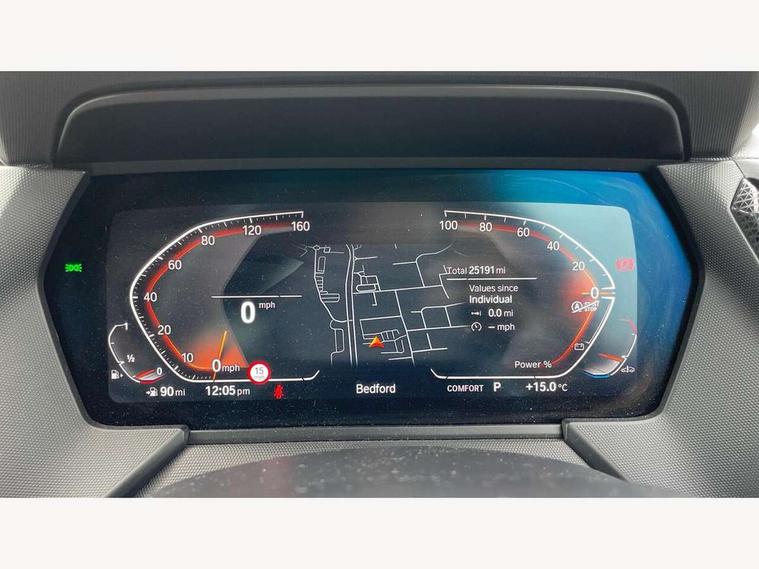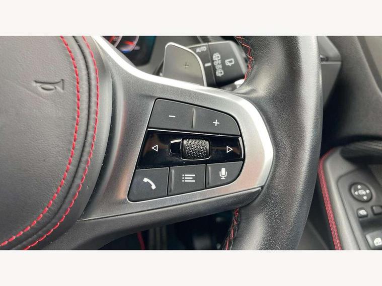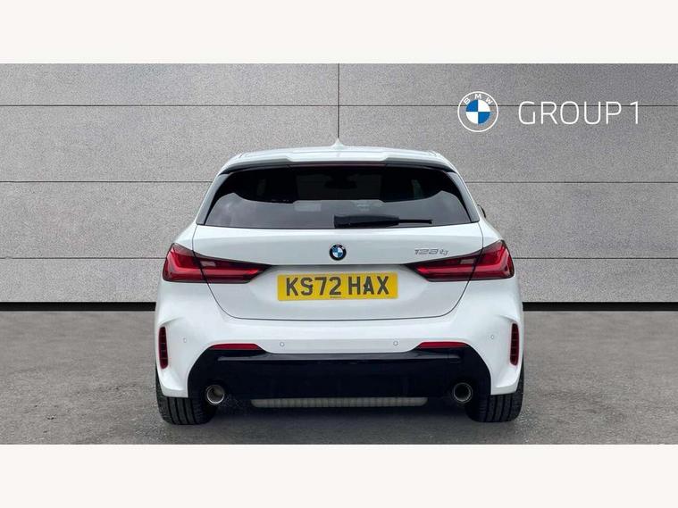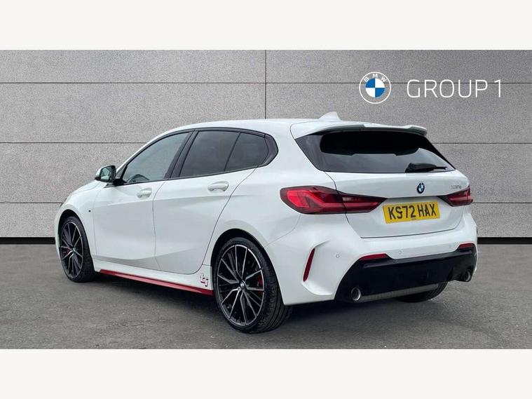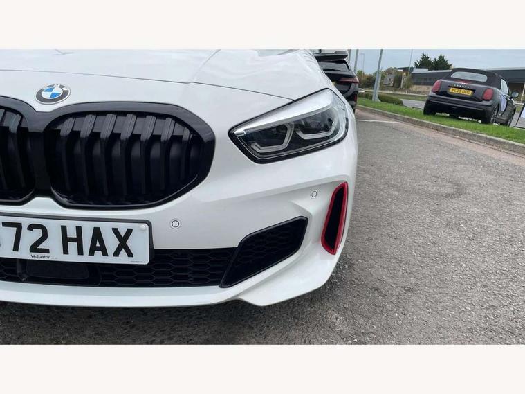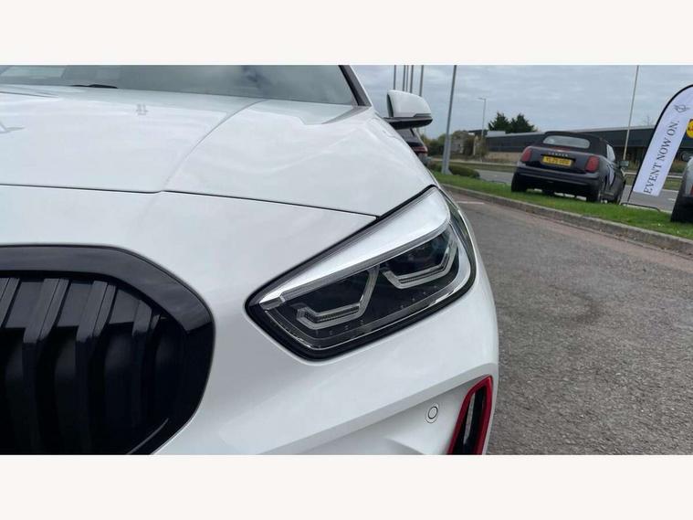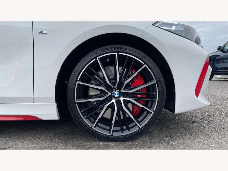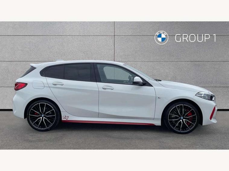 Active guard plus, Attentiveness assist, BMW ConnectedDrive online services, BMW Teleservices, Check Control warning system for monitoring of lights and door/luggage compartment open warning, Cruise control with brake assist, Eco pro mode, Electric power steering with Servotronic steering optimised at all speed ranges, Front axle single joint with specific axle kinematics to minimise drive influences on steering + provide increased rigidity agile driving behaviour, Integrated owners handbook, Lane departure warning system, Oil sensor for level and grade, On board computer, Optimum shift indicator, Personal Profile, Pull away assistant, Rigidly mounted rear subframe - Multi link construction with separate spring / damper configuration and excellent driving characteristics, Speed limit Info including no-overtaking indicator, Speed limiter, Aluminium lightweight construction, Anti roll bar front and rear, Balancer shaft, Double VANOS twin scroll turbocharging system, Drive Performance Control, Eight speed sport automatic transmission with gearshift paddle switches, Electronic differential lock, High precision injection, Larger fuel tank capacity (50 litres), M sport suspension with M128i xDrive specific settings, Petrol Particulate Filter, Twin tube gas filled shock absorbers with degressive characteristic curve, VALVETRONIC engine management, DAB Digital radio, Auto dimming rear view mirror, Automatic headlight beam throw control, Automatic windscreen wipers and automatic headlight, Black chrome tailpipe finishers, BMW individual high gloss shadow line with extended content, Body colour door handles, Body colour mirror caps, Body colour roof trims, Chrome 'M' logo side designation, Chrome kidney grille frame with Satin Aluminium struts, Direction indicator side lights in exterior mirrors, Fading support, Folding side mirrors with auto dimming/folding wing mirrors with auto dimming, Follow me home headlights, Front and rear bumper system with replaceable deformation elements, Front and rear electric windows with open and close fingertip control, anti trap facility and comfort closing, Front door sill finishers in black plastic with M designation in metallic look, Green tinted heat protection glazing, Heated, electrically adjustable exterior mirror aspheric on driver side, convex on passenger side, High gloss shadowline window frame, Recess cover mirror frames and B/C pillar embelisher trim, High level third brake light, Integrated front windscreen with washer jets, Kidney frame and struts in high gloss black extended, LED daytime running lights, LED eyebrow turn indicators, LED front fog lights, LED Headlights, Lightweight engineering, Matt black air guide grilles, Matt black wheel arch trim, Model designation on electric bootlid, Nearside reverse light in rear light cluster, Preparation for high beam assistant, Rear fog lights, Rear side wing doors, Rear window wiper, Shark fin antenna, Trailer stabilisation logic, Visible VIN plate, Welcome lighting, 12V power socket in front centre console with blanking plug, 3 rear seat head restraints, 3 seat bench in 2nd row, Anthracite headlining, Black boot net with lashing eyes, Cargo function on 2nd seat row, Centre armrest in black/red highlight including embroidered 'ti' designation in red, Child seat ISOFIX attachment for two outer rear seats and front passenger seat with anchorage points, Conditioned based service, Driver and front passenger seat heating, Floor mats with red binding, Folding rear clothes hook, Four grab handles integrated in roof lining, Front and rear door pockets with bottle holders, Front and rear side armrest integrated into door trim, Front armrest, Front sports seats, Glove compartment, Height adjustable front head restraints, Instrument panel top section , door armrests and door panels in black/red highlight, Luggage compartment for bag hooks on left and right, foldable luggage compartment liner and four lashing eyelets, Manual adjust steering wheel, Multi-function controls for steering wheel, Single front passenger seat, Storage compartment in centre console, Sun visors with vanity mirrors and insert tab, Three spoke M sport design multi function leather steering wheel in unique red stitching, Two front centre console cupholders, Two zone automatic air conditioning, Additional interior lighting pack - 1 Series, BMW live cockpit professional pack- 1 Series, Connected pack professional - 1 Series, Interior lights pack - 1 Series, M Sport exterior styling aerodynamics pack - 1 Series, 2 tone horn, 3 point seatbelts on all seats, front pyrotechnic belt tensioners, stopper and belt force limiters, rear coded belt buckles, Airbags - Front driver/passenger, front and rear curtain head protection, front side, manual deactivation of front passenger airbag, Anti lock braking system (ABS) with brake assist, BMW emergency call, Brake drying, Braking readiness, Child proof locking system in rear door, City braking function, Comfort modes, Cornering brake control, Crash sensor activating central locking release, hazard warning lights, fuel cut off, interior lighting + activation of safety battery terminal clamp, Driver and front passenger seat belt security check, Dynamic stability control + (DSC+), Dynamic Traction Control - DTC, Electrically operated hand brake including automatic hold function, Front and rear disc brakes, M Sport brakes with red calipers, M Sport seatbelts, Seatbelt warning, Side impact protection, Tyre pressure monitoring system, Warning triangle and first aid kit, Central locking switch for all doors, fuel filler cap and luggage compartment, Deadlocking function system to all doors, Drive away locking system on all doors and luggage compartment with de-activated in iDrive settings, Locking wheel bolts, Remote control with integrated key with High-gloss Black inlay and M designation and 1 button for open/ close lock, window, open luggage compartment, Start/stop button illuminated in centre console with keyless e