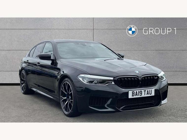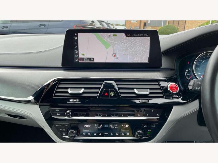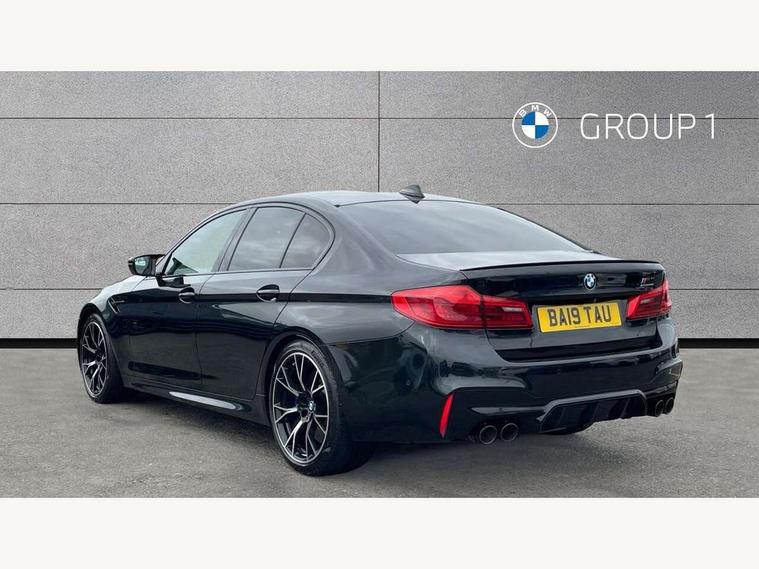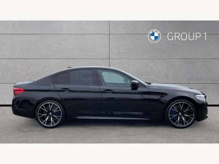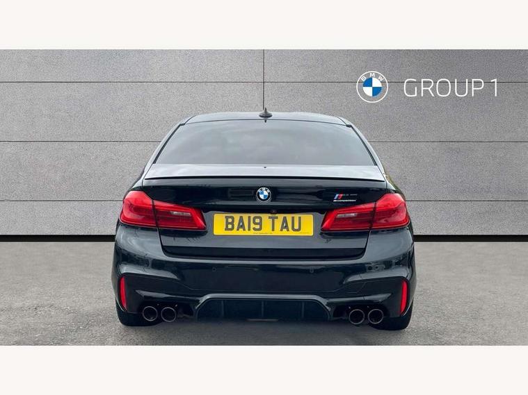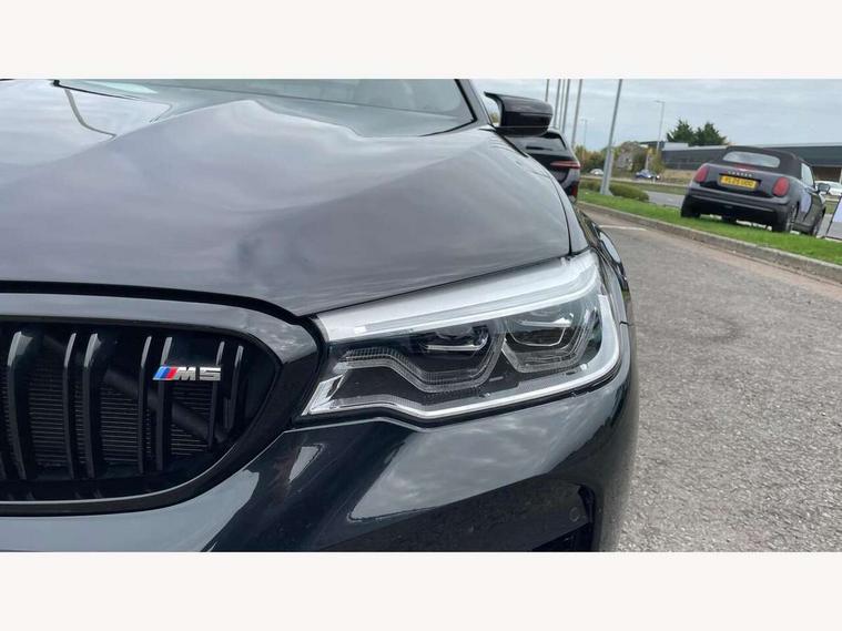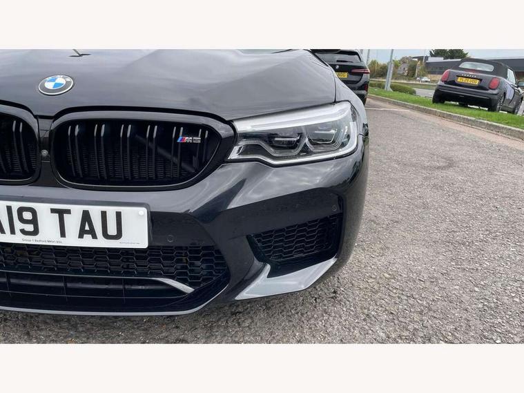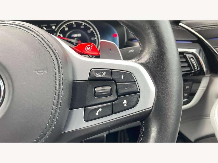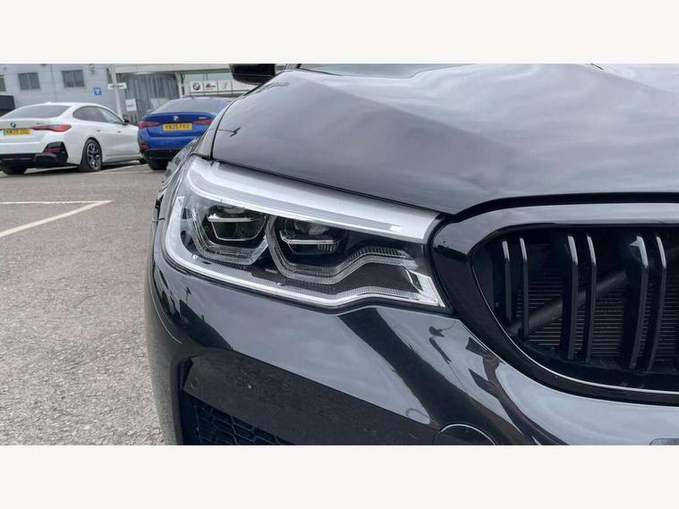 20GB Hard drive, Automatic bootlid operation, BMW Live Cockpit Professional sat nav system including 10.25" high resolution display and Intelligent Voice Assistant, BMW Online services, BMW Teleservices, Brake force display, City brake control, Comfort access system with smart opener, Enhanced bluetooth with wireless charging, Front/rear Parking distance control, Head up Display, iDrive controller and display with 10.2" colour display monitor, Lane departure and rear collision warning system, On board computer, On-board diagnosis - OBD, Outside temperature display, Park assist plus, Personal Profile, Rear cross traffic alert, Reversing camera, Service interval indicator, Servotronic PAS, Speed limiter, Voice control system, Wifi hotspot preparation, Adaptive drive with variable damper control, Anti-roll bars, Petrol Particulate Filter, BMW professional radio, DAB Digital radio, Gesture control for infotainment system, Anti-corrosion treatment, Auto dimming door mirrors, Auto dimming rear view mirror, Body colour door handles, Body coloured bumpers, Body coloured side sills, Dynamic brake lights, Electric folding/heated door mirrors with integrated indicators, Electric front and rear windows with fingertip open/close + anti-trap all round, Follow me home headlights, Heated windscreen washer jets, High beam assistant, High gloss black door mirrors, High gloss black kidney grille, High gloss black rear apron, High gloss black side gills with M5 logo, Icon Adaptive LED headlights, Illuminated door handles, Illuminated door sill finishers with M5 designation, LED daytime running lights, M rear spoiler, M side gills with M5 logo, M Sport exhaust system, Rain sensor with auto light activation system, 12V power point front, 4 zone control automatic air conditioning, Additional 12V sockets in rear and luggage compartment + twin USB charging sockets, Alcantara headlining in anthracite, Ambient interior lighting, Anthracite Velour floor mats, Battery in luggage with jump start facility, Electric adjustable steering column, Front centre armrest with storage compartment, Front cupholders x 2, Front footwell lights, Front reading lights, Front/rear armrests within door panels, Gearshift paddles, Illuminated glovebox with lock, Isofix rear child seat preparation, M leather steering wheel, M Sport multi-function front seats with electric lumbar support and driver memory, Multi-function controls for steering wheel, Rear centre armrest with 2 cupholders + storage, Rear footwell lights, Rear headrests, Connected package professional - M5, ABS/EBD, Auto hold function, Automatic Stability Control (ASC), BMW emergency call, Brake assist function, Brake energy regeneration, Cornering brake control (CBC), Crash Sensor - activates hazard/interior lighting + unlocks doors, Door reinforcements, Driver/front passenger side airbags, Driver/Passenger airbags (Impact dependent), DSC - Dynamic Stability Control, Dual horn, Dynamic brake control, Dynamic Traction Control - DTC, Electromechanical parking brake, Front and rear head airbags, Front head restraints with anti-whiplash, Front passenger airbag deactivation, Fuel cut off safety device, Hill start assist, M sport seatbelt, Motor Slip Regulation (MSR) - Engine Drag Torque Control, Seat belts front inertia reel with pyrotechnical belt latch tensioner, belt force limiter and belt restrainer, Side impact protection, Three inertia reel rear seatbelts, Tyre pressure monitoring system, Warning triangle and first aid kit, Automatic drive away locking facility, Engine immobiliser, Locking wheel bolts, Remote central locking, Remote control Thatcham category 1 alarm, 20" M Y-spoke light alloy wheels with mixed tyres in bicolour finish - style 789, Tyre mobility system,