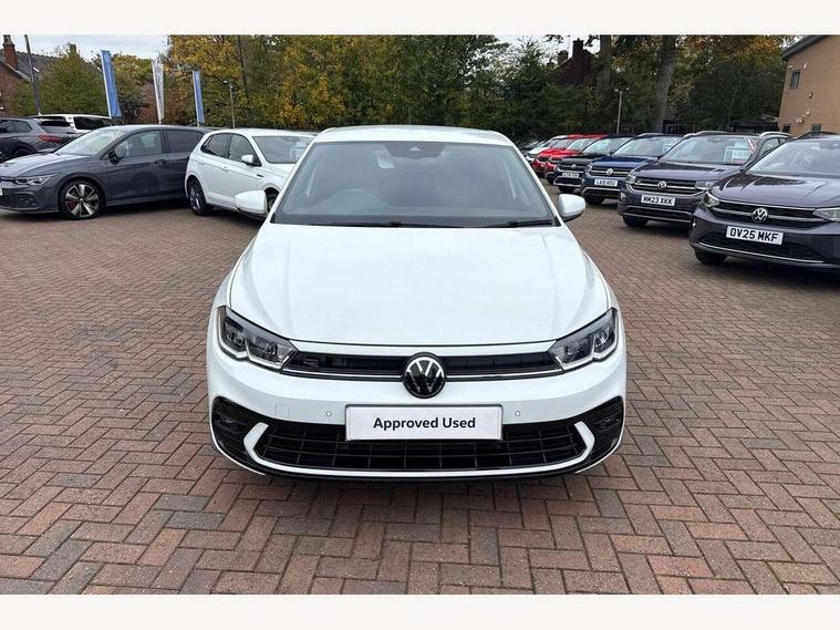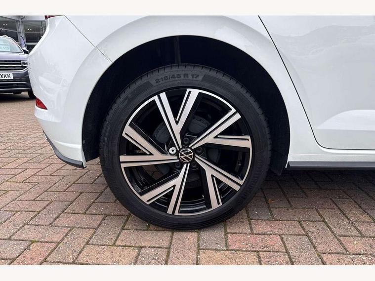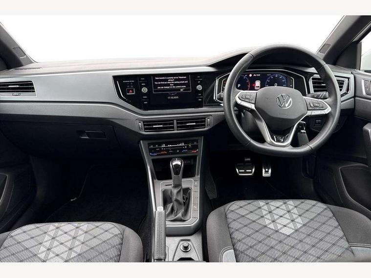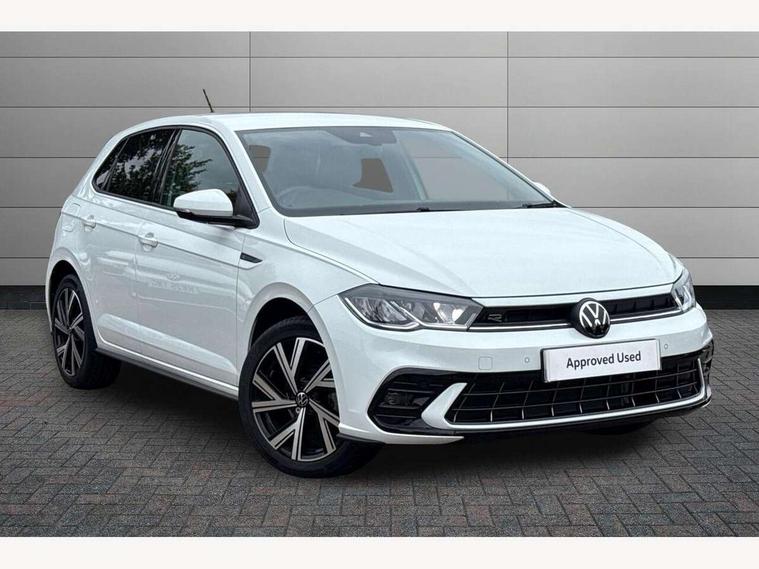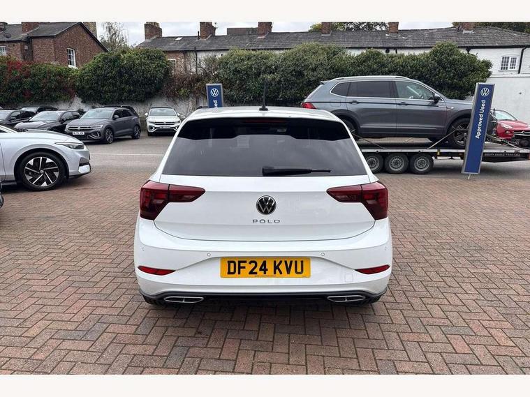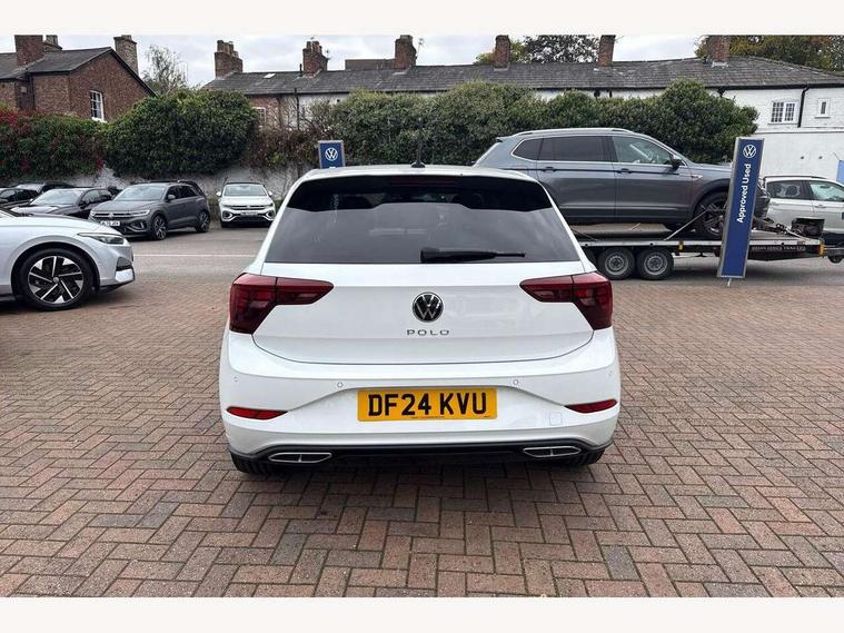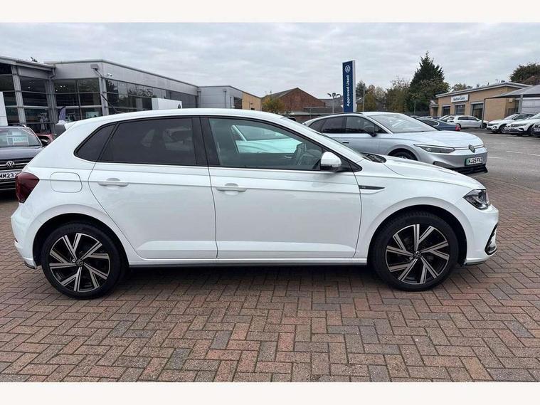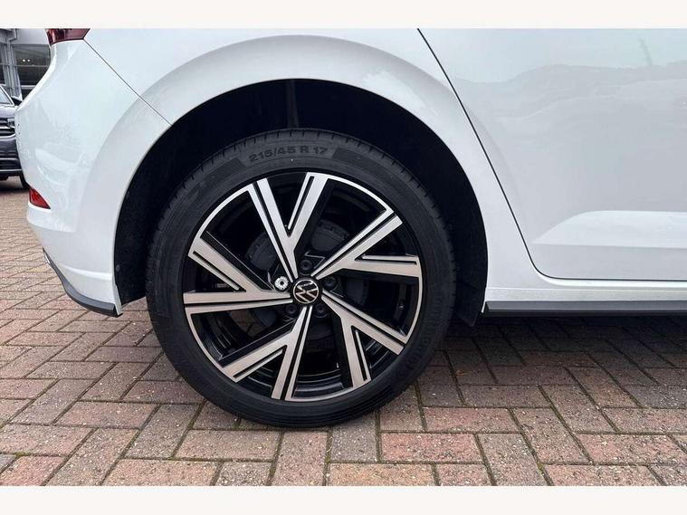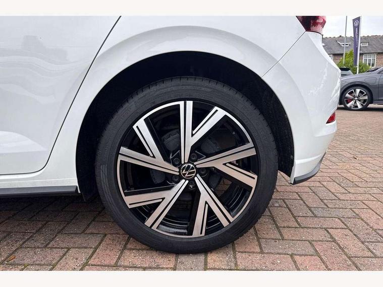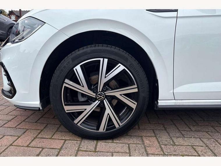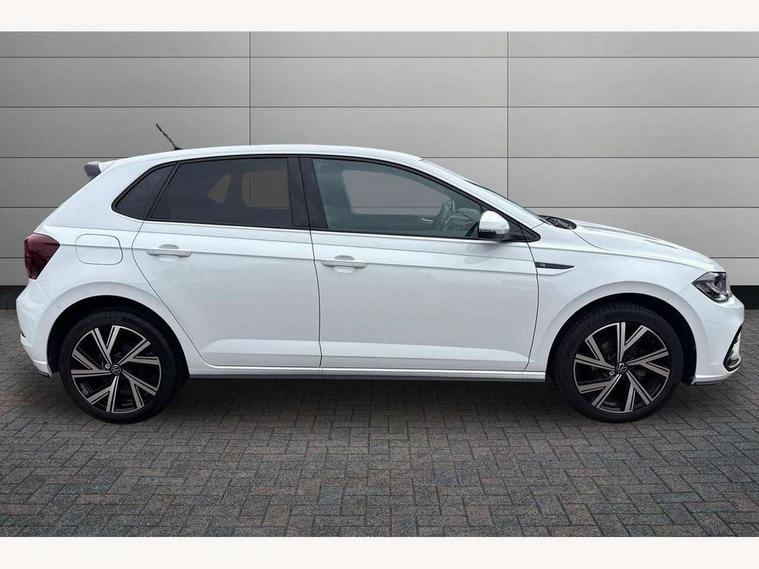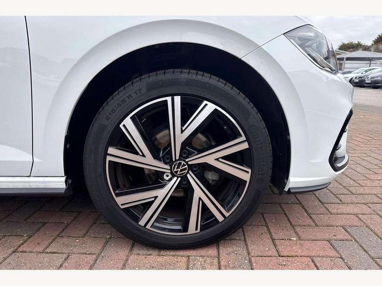 Adaptive cruise control with follow-to-stop and speed limiter, Advanced driver attention and drowsiness monitor, Bluetooth mobile phone interface, Digital Cockpit Pro with 10.25" Display, Dynamic road sign display, Emergency call service, Power assisted speed sensitive steering, Preparation for We connect and We connect plus, Speedo and rev counter, electronic odometer, trip, service interval display and fuel gauge, Standard rear axle, Travel Assist - Lane keeping system and traffic jam assist, Travel assist including emergency assist, Trip computer, Warning signal and warning light for front and rear seatbelts not fastened, Washer fluid level indicator, Wireless app connect, Front wheel drive, Rear shock absorpion, Start-stop system with battery regeneration (recuperation - energy recovery during braking), DAB Digital radio, Diversity antenna for FM reception, Body colour bumpers, Body colour door handles, Electric front windows, Front scuff plates with R-Line logo, Heat insulating darkened glass in side and rear windows, Heat insulating glass windscreen, Power folding adjustable/heated exterior mirrors and front passenger exterior mirror lowering function, Rear electric windows, Rear fog light, Rear side wing doors, Rear windscreen washer and wiper with interval delay, Third brake light, 12V power socket in centre console, 2 USB-C ports in the front, 2 USB-C charging sockets on the center console in the rear, 3 rear head restraints, 60/40 split folding rear seat and rear seat bench not split, Air care climatronic air conditoning system with active combination filter and 2-zone temperature control, Black roof lining, Chrome plated radiator grille inserts, air vent surrounds and light switch surrounds, Door and side trim panel, Driver and front passenger seat height adjustment, Driver/passenger sunvisors with illuminated vanity mirrors, Front + rear carpet mats in recycled material, Front centre armrest, Front footwell illumination, Front seat backrest storage pockets, Front sports comfort seats, Handbrake lever handle in leather, Headliner in recycled material, Isofix child seat preparation easy-fit (for two outer rear seats, and front passenger seat) compatible with I-size, Karoso artvelours cloth upholstery, Leather trimmed gear knob, LED interior light with switch off delay and dimmer, 2 reading lights front and rear, Luggage compartment cover, Luggage compartment floor, Luggage compartment lighting, Lumbar adjustment for front seats, Single front passenger seat, Stainless steel pedals, Standard pedal cluster, Three spoke leather wrapped multifunction steering wheel with shifting paddles, Light and sight pack - Polo R-Line/Black Edition, 3 point height adj front seatbelts + pretensioners, 3x3 point rear seatbelts, ABS, Driver and front passenger airbag with front passenger airbag deactivation, Drivers and front passengers safety optimised head restraints, ESC (Electronic stability control) + EDL (Electronic Differntial lock) and ASR (Traction control), Extended and predictive pedestrian/ cyclist protection, Front curtain and side airbags with center airbag, Hill hold control, Manual child lock in rear doors, Single tone horn, Tyre pressure loss indicator, Alarm with interior protection, Anti-theft alarm system with interior monitoring, backup horn, and towing protection, Anti-theft wheel bolts, Electronic engine immobiliser, Chrome applications on rotary light, mirror adjustment, window regulator switches, outlet with frame in black, Dark grey anodised matt decorative inserts in dash and front door panels, Low rolling resistance tyres,
