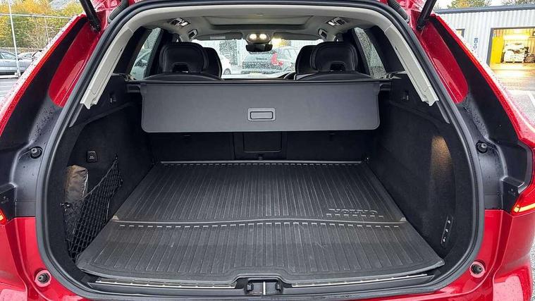 12.3" Active TFT crystal driver's instrument display, 9" centre console touch screen, Adjustable steering wheel force, Bluetooth handsfree system, Drive mode selector, Driver alert control with lane keeping aid, Emergency services call system, Front and rear park assist, Google Automotive Services, Oncoming Lane Mitigation, Service interval indicator, Speed limiter, Speed sensitive steering, Trip computer, Volvo on call with App, Wireless/Inductive Mobile Phone Charging, 8 speed automatic transmission with start/stop + manual change functions, Active four-C chassis + four corner adaptive damper with electronic rear air suspension, DAB Digital radio, Adaptive brake lights with high level LED brake lights, Auto dimming interior + exterior mirrors, Automatic headlight levelling system, Automatic LED Headlights + Active high beam incorporating daytime running lights, Chrome deco lower front bumper, Chrome lower side moulding trim, Chrome window surround, Colour co-ordinated door mirrors, Electric adjustable/heated/auto power folding door mirrors, Electric front+rear windows, Front aluminium tread plates, High gloss black grille with chrome inserts, Home safe and approach lighting, Integrated roof rails in Chrome, Puddle lights, Rain sensor with automatic windscreen wiper activation, Rear Bumper Chrome Insert, Rear side wing doors, Rear wiper, Roof antenna, Roof spoiler, Tinted windscreen, Visible VIN plate, 12V socket in front tunnel console and luggage compartment, 3 seat bench in 2nd row, A-pillar parking ticket holder, B Pillar ventilation, Blond headlining, Bright metal luggage threshold, Centre armrest storage illumination, Centre console cupholders and storage, Floor mats, Front and rear door pocket and front cupholder illumination, Front footwell and side step illumination, Front reading lights, Front seat cushion extension and power adjustable front seats side support, Head restraints for all seats, Heated front seats, Heated steering wheel, Height/reach adjustable steering column, High gloss black steering wheel remote infotainment controls, Illuminated glovebox, Illuminated luggage compartment, Illuminated vanity mirrors + ticket holder, Load cover, Load protection net, Massage function for front seats, Multi directional lumbar support, Nappa soft leather perforated front and ventilated upholstery, Orrefors Crystal gear lever knob, Rear armrest with cupholder, Rear footwell and side step illumination, Rear seat concealed storage, Single front passenger seat, Tailgate illumination and ambient door lighting, Underfloor stowage compartment, Versatile split folding rear seat - 60/40, Lighting Pack - XC60, Seat pack - XC60 R-Design Pro/Inscription Pro, 5 three point seatbelts, City safety with steering support with Pedestrian + cyclist + large animal detection + front collision warning with full auto brake, Drivers knee airbag, Dual stage driver/passenger airbags, Electronic parking brake with auto hold, First aid kit, Hill descent control, Hill start assist, IC (Inflatable Curtains) - Full Length, Mechanical child locks on rear doors, Passenger airbag cut-off device, Road sign information display, Run off Road Mitigation, Run off Road Protection, Seatbelt reminder and pretensioners, SIPS (Side Impact Protection System), SIPS airbags, Slippery road and hazard light alert, Stability and Traction Control with Spin control, Engine Drag Control and Corner Traction Control, Tyre pressure monitoring system, Vehicle deceleration control with Anti-lock Brake System, Electronic Brake Distribution and Emergency Brake Assist, Warning triangle, WHIPS whiplash protection system - front, Anti-theft alarm including immobiliser/volume sensor + level sensor, Care key with user defined top speed, Key integrated remote control central locking + fuel flap with deadlocking system and auto open/close power windows, Keyless Drive (includes Keyless Entry and Keyless Start) with Handsfree Tailgate Opening/Closing, Locking wheel nuts, Private locking for tailgate, Driftwood inlays, Tailored instrument panel with contrast stitching,