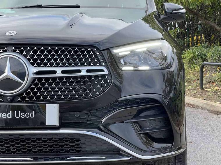 12.3 High resolution wide screen cockpit display with choice of three display styles Classic, Progressive or Sport and unique ambient lighting setting, 360 degree camera, Active lane keeping assist, Active parking assist with PARKTRONIC, Attention assist, Blind spot assist, Brake wear warning display, Direct steer speed sensitive steering, DYNAMIC SELECT with a choice of driving modes (ECO, Comfort, Sport and Individual), Easy-pack tailgate - Powered opening/closing automatically, ECO start/stop function, Geofencing, Hard-disk navigation, MBUX augmented reality for navigation and live traffic, MBUX voice control activated by keywords "Hey Mercedes", Mercedes Benz emergency call system, Mercedes me connect - vehicle set up and monitoring, Outside temperature display, Pre-installation for digital key transfer, Remote boot release, Service indicator (ASSYST), Smartphone integration with Apple CarPlay and Android auto, Speedtronic cruise control with speed limiter, Status display for rear seat belts in instrument cluster, Traffic sign assist, Trip computer in multifunction display showing current fuel consumption, Wireless charging, 85 litre fuel tank, 9G TRONIC 9 speed automatic transmission, Airmatic air suspension with adaptive damping system, Diesel particulate filter (DPF), Mild Hybrid starter alternator, Additional USB connection, Bluetooth interface for hands free and audio streaming, Burmester surround sound system, DAB digital radio tuner, Front and rear USB ports, Sound personalisation, Adaptive brake lights, Aluminium look, illuminated running boards with rubber studs, AMG bodystyling front and rear aprons, Auto headlights, Automatically dimming rear view mirror, Body colour door mirrors, Body coloured bumpers, Electric windows with one touch opening/closing and obstruction sensors, Electrically adjustable, heated, folding exterior mirrors, Exterior styling - front bumper, radiator grille and front air intakes, Heat insulating dark tinted glass, LED 3rd brake light, LED daytime running light signet, LED rear lights, Multibeam LED headlights with adaptive highbeam assist plus, Radio aerial integrated into rear window, Rain sensing windscreen wipers, Rear side wing doors, Rear wiper, Roof rail system, Top surround of side windows in polished aluminium, Transparent Bonnet, Visible twin pipe exhaust system integrated into bumper, Waistline in polished aluminium, 3 spoke nappa leather multifunction sports steering wheel, 3rd row of seats for 2 people, 4 way adjustable front head restraints and 2 way rear head restraints, 40:20:40 split folding rear seats, AMG floor mats with AMG lettering, Automatic child seat recognition sensor, Black fabric roof liner, Electric height/reach adjustable steering column, Electrically adjustable rear seats, Front centre armrest with stowage compartment and illuminated grab handles, Gearshift paddles on steering wheel, Glove compartment - lockable, air conditioned and illuminated, Heated front seats, Illuminated door sill with Mercedes Benz lettering, Interior lighting - 64 colour Ambient lighting, Leather upholstery, Luggage compartment cover, Seat occupancy sensor for front passenger seat, Second row three seats, Single front passenger seat, Sports pedals in brushed stainless steel with rubber studs, Sunvisors with illuminated vanity mirrors, THERMATIC 2 zone automatic climate control, Touchpad, Keyless go comfort package with comfort opening - GLE, Memory package with 4 way lumbar support - GLE, Active bonnet, Active brake assist with HOLD function and brake e-drying function, Airbags - driver and front passenger, front sidebag, pelvis bag and window airbags, Anti-lock braking system (ABS), Black seat belts, Childproof locks manually operated for rear doors and electrically operated for rear power windows, Drivers knee airbag, Electronic parking brake, Electronic Stability Programme (ESP), ISOFIX child seat points with automatic child seat recognition, Perforated front brake discs and brake calipers with Mercedes-Benz lettering, Pre safe impulse side, Three point rear seat belts, Tyre pressure monitoring system, Warning triangle and first aid kit, Alarm system/interior protection/immobiliser, Central locking with interior switch, automatic locking and crash sensor with emergency opening function, Chrome surround in electric key, Dashcam, Guard 360 degree vehicle protection plus, Dashboard and door beltlines in ARTICO man made leather, Trim - Centre console, anthracite open pore oak wood trim, 20" AMG 5 twin spoke light alloy wheels, TIREFIT with tyre inflation compressor,