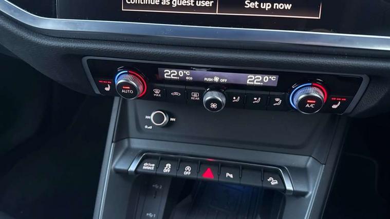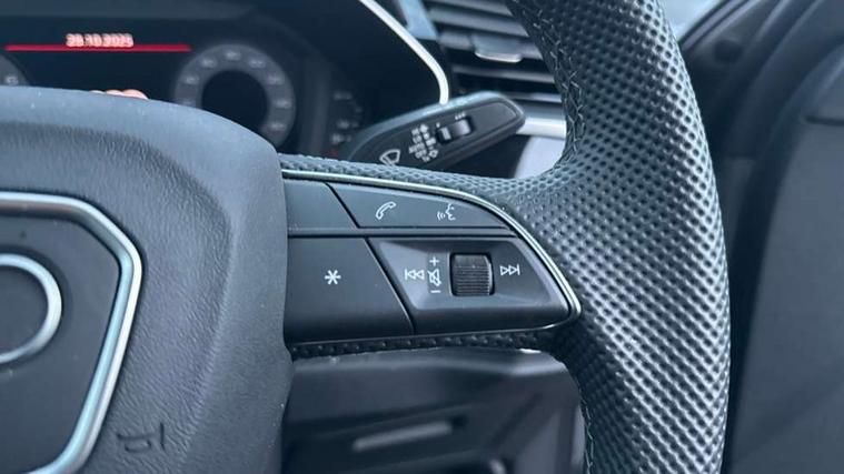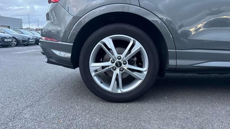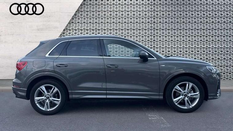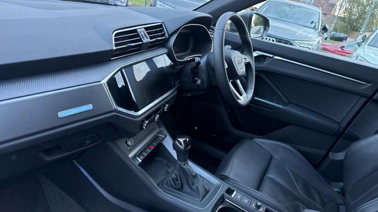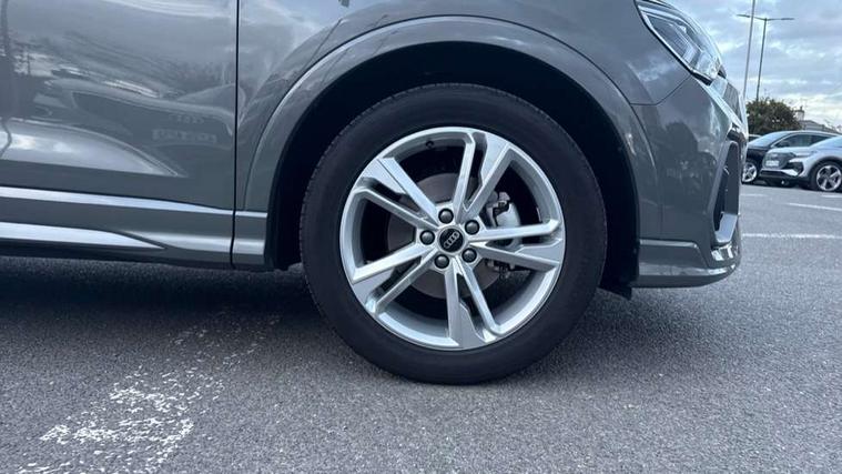 Amazon alexa Integration, Audi connect safety and service, Audi drive select, Audi lane departure warning, Audi Virtual Cockpit - 10.25" display, Bluetooth interface, Camera based traffic sign recognition, Distraction and Fatigue warning, Legal emergency call, MMI Navigation Plus with high resolution 10.1 inch touchscreen colour display, Power operated tailgate, Progressive steering, Service interval indicator, Smartphone interface includes wireless Apple carplay/Android Auto, Start stop system with recuperation, Voice control system with natural language interaction, Sports suspension, 2 USB-C ports with charge and data functions, 6 passive loudspeakers, DAB digital radio module, Acoustic windscreen, Aluminium roof rails, Aluminium window trim, Anthracite black radiator grille, Auto dimming door mirrors, Auto dimming frameless rear view mirror, Body colour front spoiler blade, Electrically folding, adjustable and heated door mirrors with integrated LED side indicators and kerb view function for passenger side, Front and rear electric windows, Front fog lights, Front side air inlets in matt platinum grey, Grille vertical bars in aluminium silver/Matt, High gloss black finish B and C pillars, LED Dynamic rear indicators, LED headlights with LED daytime running lights, LED rear lights, LED third brake light, Privacy glass dark tinted rear and rear-side windows (from B-pillar backwards), Rain and light sensors, Rear diffuser grille in grained matt black, Rear diffuser strip in matt anthracite black, Rear side wing doors, Rear wiper, S line badges on front wings, S line front and rear bumpers and side skirts in contrasting Manhattan grey paint finish, Side skirt insert in matt Platinium grey, Variable front intermittent wipers, 12V socket in rear centre console, 3 seat bench in 2nd row, 3 spoke leather multifunction steering wheel features S badging and grips in perforated leather with contrast stitching, 40:20:40 folding with manual adjustment for 60:40 forwards/backwards position and backrest angle, Adjustable rear seat bench/backrest with centre armrest and cupholder, Black cloth headlining, Dual zone electronic climate control, Electric lumbar support, Front and rear black floor mats with contrast stitching in rock grey, Front and rear headrests, Front centre armrest, Height and reach adjustable steering wheel, Illuminated door sill trims with S logo, ISOFIX child seat mounting for front passenger with airbag deactivation and outer rear seat including top tether attachment point for outer rear seats, Manual front seats with height adjustment, Perforated leather gearknob, Single front passenger seat, Stainless steel luggage compartment sill finisher, Stainless steel pedals, Twin leather upholstery with front sport seats + S embossing, Non smoking pack - Q3, 3x3 point rear seatbelts, 6 airbags - Driver, front passenger, curtain and side windows, Audi pre-sense front with pedestrain and cyclist recognition, Electrically operated child locks on rear doors, Electromechanical parking brake, Electronic stabilisation control including ABS, ASR and EDL, Front seatbelt reminder, Hill descent control, Hill hold assist, Pre sense basic, Seatbelt monitoring, Tyre pressure warning, Warning triangle and first aid kit, Anti theft wheel bolts, Immobiliser, Remote central locking, Thatcham approved category 1 anti theft alarm, Aluminium look interior elements, Dark matt brushed aluminium inlay, Detail dashboard around MMI touch colour display in glass look, black with surround in aluminium look, Leatherette door armrest,