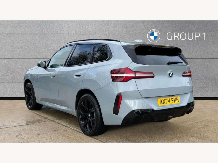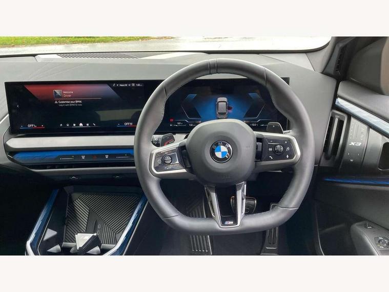 Active guard professional, Attentiveness assist, Automatic operation of tailgate, BMW ConnectedDrive online services, BMW iDrive, BMW Online services, BMW Teleservices, Brake pad wear indicator, Condition based service, Cruise control with brake function + speed limiter, Drive off assistant, Driving Assistant Plus Preparation, Flat tyre monitor, Language version English, My Mode - Personal, Efficient, Sport, Relax, Expressive, Parking assistant, Reversing assist camera, Servotronic system, Variable sport steering, Dynamic stability control, Multiple control arm rear axle, Steptronic transmission with gearshift paddles, Two-joint strut-type front axle with tension strut, DAB tuner, Personal eSim, 4 tailpipe tips, B-pillar trim panel in black high-gloss, BMW badge on front and rear, BMW M-specific front/rear bumpers and side sills, BMW M-specific radiator grille with horizontal bars in Dark Silver and M logo, Daytime running lights, Door handles flush to the surface with lock barrel on driver's side, Dynamic brake lights, Electric adjustable and heated door mirrors, Electric window trap release and convenient opening/closing feature, Headlight beam throw control, Heated rear window, Heated windscreen washer jets, High beam assistant, LED 3rd brake light, LED rear lights, LED tail lights, Locking of the doors, M high-gloss shadowline, M-specific Exterior mirrors, Mirror base and mirror blade in black high-gloss, Mirror triangle in black high-gloss, Rain sensor with automatic headlight activation, Rear side wing doors, Rear wiper, Reversing light, Side window frame in black high-gloss, Windscreen wipers, 12v power socket in front centre console and luggage compartment, 2 x USB Type C ports for charging and data transmission (front centre console) and 2 x USB Type C ports for charging (rear centre console), 3 rear headrests, 3 seat bench in 2nd row, 3 zone automatic air conditioning, 40:20:40 split folding rear seat with loading system, Ambient lighting, Anthracite headlining, Electric adjustable seats with memory function, Floor mats in velour, Footrest and pedals in black plastic, Four grab handles integrated in roof lining, Front armrest with integrated control panel, Front centre console trim in black high-gloss, Front head restraints, Front passenger seat, Front sports seats, Glove compartment, i-Size / ISOFIX attachment points on both outer rear seats, with covers in black, Luggage compartment separating net, M sport leather steering wheel, Multifunction steering wheel, Rear side armrests integrated into door trim, Selector lever with toggle operation, Steering column adjustment, Sun visors with illuminated vanity mirrors, Three upper retaining strap clips integrated into the rear panels of the seat backrests, Through loading system, Two front cupholders and two in the rear center armrest, Wireless charging tray, Connected pro package - X3, Driving assistant package - X3, Interior and exterior mirror package - X3, 3 point seatbelts, Airbag deployment is controlled with respect to the intensity and scope, Anti-lock braking system (ABS), Automatic hold function, BMW emergency call, Brake assist, Brake drying, Brake energy regeneration, Braking readiness, Central airbag, Child locks on rear doors, Cornering brake control (CBC), Crash Sensor - activation of central locking release, hazard warning light and interior lighting, Driver and front passenger front and side airbags, Dynamic brake control, Electromechanical parking brake, Front and rear disc brakes, Head airbags, Integrated braking system, Post Crash Collision Warning with braking function, Trailer stability control, Tyre pressure sensor, Warning triangle, Alarm system, Closing system with central locking, Comfort access system, Locking wheel bolts, Start/stop button with keyless motor start with acoustic drive, Tyre repair kit,