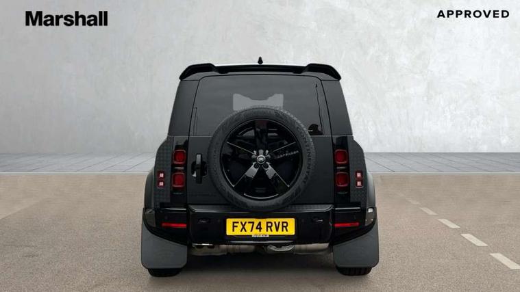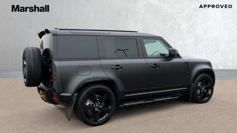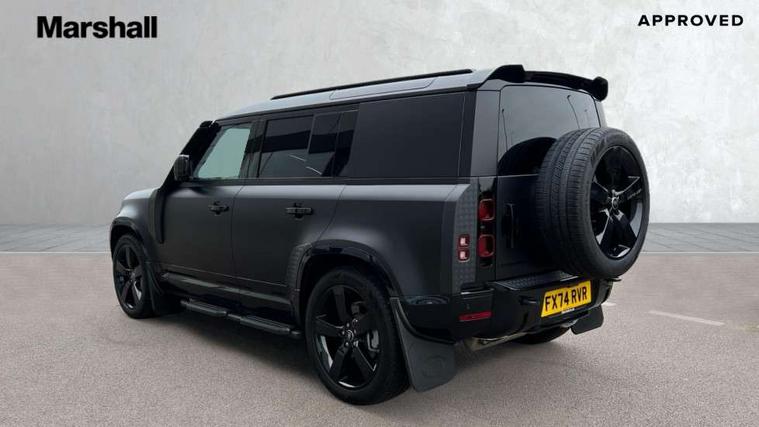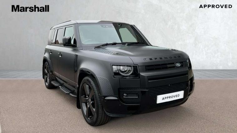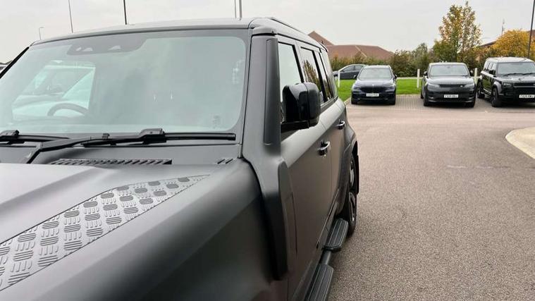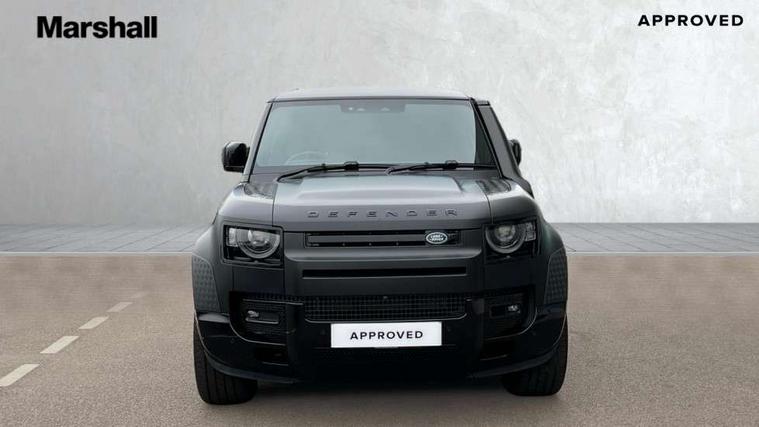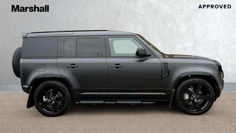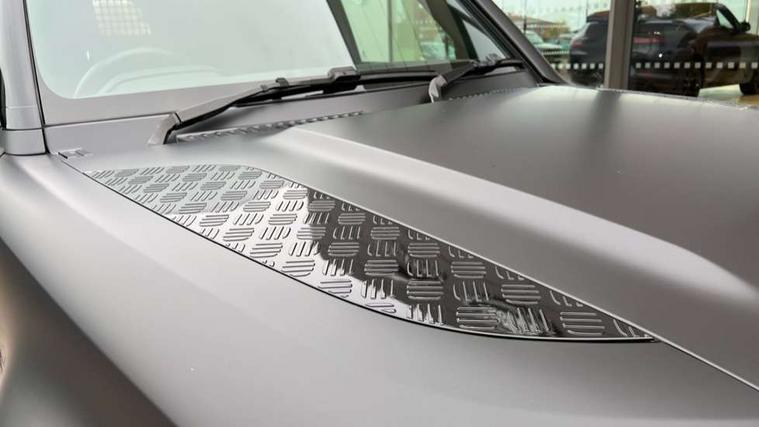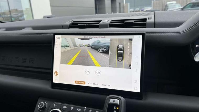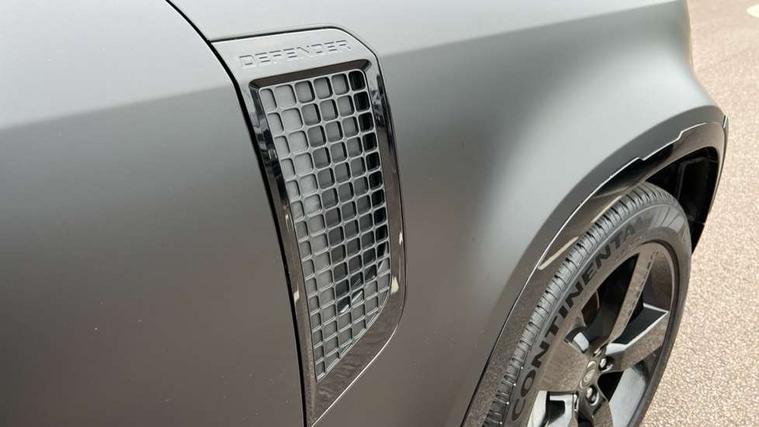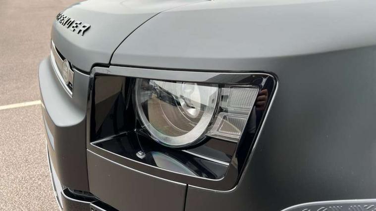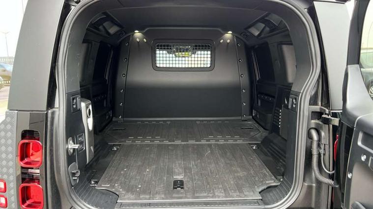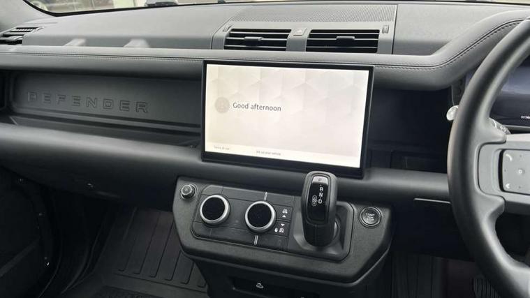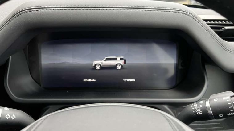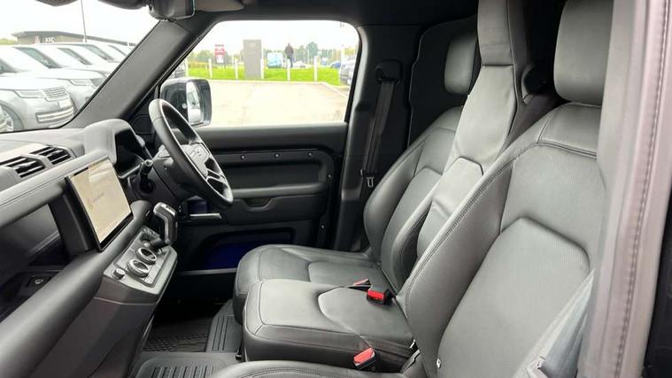 Customer Configurable Autolock, 11.4" touchscreen, 360 parking aid, 3D Surround Camera with 360 View, 180 Rear View, Front Traffic Detection, Forward Vehicle Guidance, Tow Hitch Assist and clear sight Ground View, Adaptive cruise control, Blind spot assist, Brake Hold, Driver condition monitor, Electric power assisted steering (EPAS), Interactive Driver display, Lane keep assist, Low traction launch, Pivi pro connected, Rear collision monitor, Rear traffic monitor, Traffic sign recognition adaptive speed limiter, Trip computer, Tyre pressure monitor, Android Auto, Apple CarPlay, DAB Radio (Digital Audio Broadcasting), Meridian 280W sound audio system with 7 speakers with subwoofer, Alpine lights, Assisted tailgate, Automatic headlight levelling, Automatic headlights and rain sensitive front wipers, Body coloured bonnet, Body coloured exterior Utility Panel, Centre high mounted stop light, Electric heated/power fold door mirrors with approach lights and auto dimming driver side, Electric windows with one touch open/close and anti-trap, Follow me home lighting, Front fog lights, Heated rear window with timer, Heated windscreen, LED tail light, Matrix LED headlights with signature DRL, Privacy glass, Puddle lights, Rear fog lights, Rear wash wiper, Side-hinged tailgate, Soft close tail door, Standard roof, Standard tail door, Standard tread plates, Additional lashing points, Black exposed rear recovery eyes, Configurable cabin lighting, Dual zone climate control, Durable rubber cabin flooring, Electric adjustable steering column, Footwell lights, Front jump seat and folding front centre armrest, Front passenger seat ISOFIX points, Full height bulkhead behind row 1 seats, Glovebox storage, Heated steering wheel, High sided rubber mats, Leather steering wheel, Loadspace cover, Loadspace hooks, Loadspace rubber mat, Lockable and illuminated underfloor storage compartment (x1 under boot floor and x1 accessible via rear doors), Overhead stowage for sunglasses, Rear centre headrest, Rear reading light, Sunvisors with illuminated vanity mirrors, Upgraded loadspace LED lighting, Online pack - Defender with data plan, Brake pad wear indicator, Electronic traction control, Emergency braking, Front airbags, with passenger seat occupant detector, Power operated child locks, Remote for (e-Call, Optimised assistance call, InControl app, Climate, beep and flash and door), Seat belt reminder, Intrusion sensor, Keyless entry system, Locking wheel nuts, Spare wheel lock, 8 speed automatic transmission, ABS and EBA, All wheel drive, CBC - (Cornering brake control), Dynamic stability control, Electronic brake force distribution, Electronic park brake, Gradient acceleration control, Hill Descent Control, Hill start assist, Particulate filter (DPF), Push button start, Roll stability control, Trailer stability assist, Twin speed transfer box (high/low range), Extended leather upgrade,