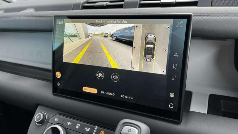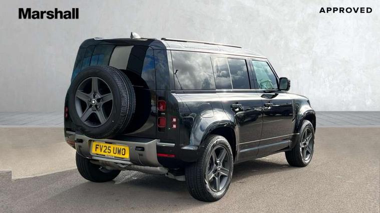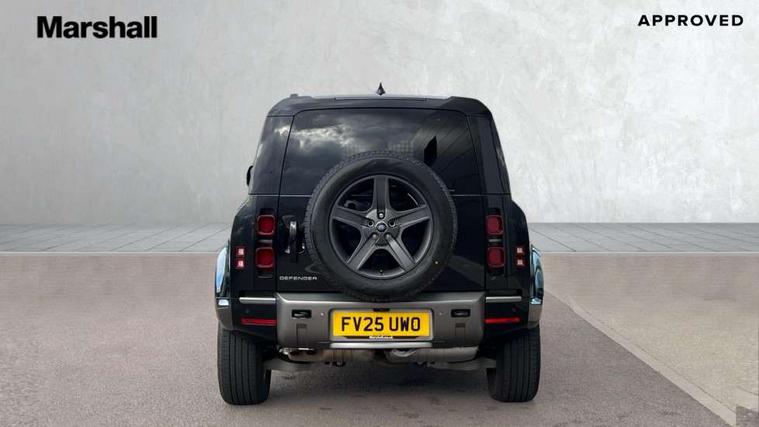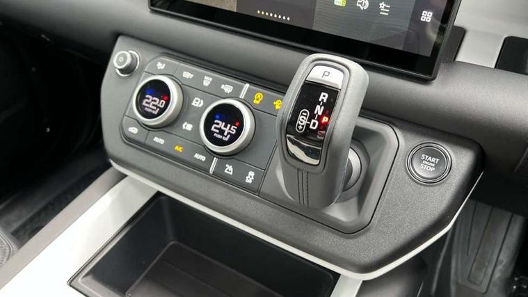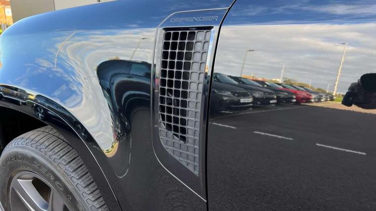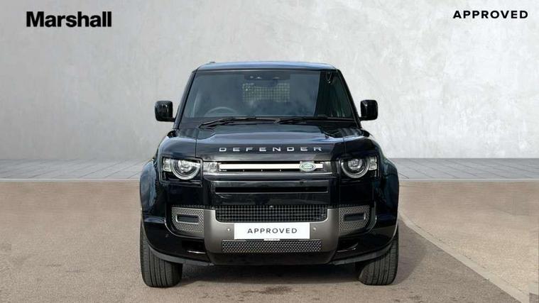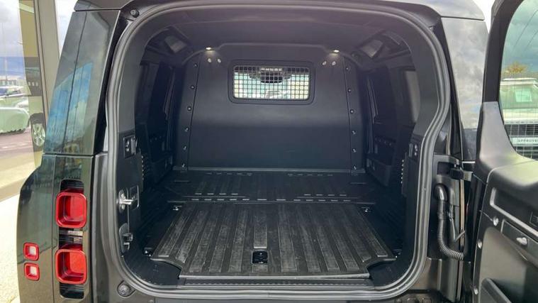 Customer Configurable Autolock, 11.4" touchscreen, 360 parking aid, 3D Surround Camera with 360 View, 180 Rear View, Front Traffic Detection, Forward Vehicle Guidance, Tow Hitch Assist and clear sight Ground View, Adaptive cruise control, Blind spot assist, Brake Hold, Driver condition monitor, Electric power assisted steering (EPAS), Interactive Driver display, Lane keep assist, Low traction launch, Pivi pro connected, Rear collision monitor, Rear traffic monitor, Traffic sign recognition adaptive speed limiter, Trip computer, Tyre pressure monitor, Android Auto, Apple CarPlay, DAB Radio (Digital Audio Broadcasting), Meridian 280W sound audio system with 7 speakers with subwoofer, Alpine lights, Assisted tailgate, Auto High Beam Assist, Automatic headlight levelling, Automatic headlights and rain sensitive front wipers, Body coloured bonnet, Body coloured exterior Utility Panel, Centre high mounted stop light, Electric heated/power fold door mirrors with approach lights and auto dimming driver side, Electric windows with one touch open/close and anti-trap, Follow me home lighting, Heated rear window with timer, Heated windscreen, LED tail light, Privacy glass, Puddle lights, Rear fog lights, Rear wash wiper, Side-hinged tailgate, Standard roof, Standard tail door, Standard tread plates, Additional lashing points, Black exposed rear recovery eyes, Configurable cabin lighting, Dual zone climate control, Durable rubber cabin flooring, Footwell lights, Front passenger seat ISOFIX points, Full height bulkhead behind row 1 seats, Glovebox storage, High sided rubber mats, Loadspace cover, Loadspace hooks, Loadspace rubber mat, Lockable and illuminated underfloor storage compartment (x1 under boot floor and x1 accessible via rear doors), Overhead stowage for sunglasses, Rear centre headrest, Rear reading light, Standard interior, Standard seating configuration, Sunvisors with illuminated vanity mirrors, Upgraded loadspace LED lighting, Online pack - Defender with data plan, Brake pad wear indicator, Electronic traction control, Emergency braking, Front airbags, with passenger seat occupant detector, Power operated child locks, Remote for (e-Call, Optimised assistance call, InControl app, Climate, beep and flash and door), Seat belt reminder, Intrusion sensor, Keyless entry system, Locking wheel nuts, 8 speed automatic transmission, ABS and EBA, All wheel drive, CBC - (Cornering brake control), Dynamic stability control, Electronic brake force distribution, Electronic park brake, Gradient acceleration control, Hill Descent Control, Hill start assist, Particulate filter (DPF), Push button start, Roll stability control, Trailer stability assist, Twin speed transfer box (high/low range),