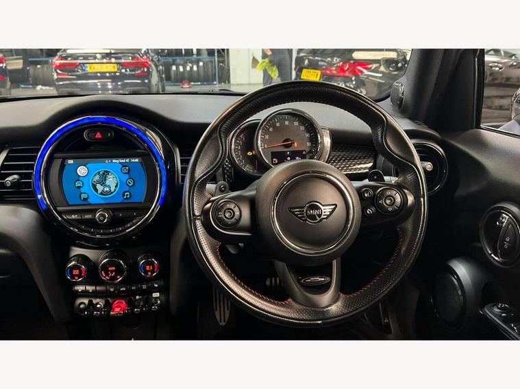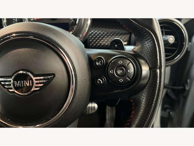Acoustic seat-belt warning, Basic bluetooth function with USB audio, Brake fluid level warning light, Brake pad wear indicator warning light, DTC - Dynamic traction control, Exterior temperature gauge, Intelligent emergency call, MINI TeleServices, Oil level indicator, On board computer, Push button starter, Service interval indicator, Servotronic PAS, Electronic differential lock, Performance Control, Auxiliary input socket, DAB digital radio module, 2 speed wipers+intermittent wipe, Anti dazzle mirror, Anti trapping/one touch open close front windows, Body colour scoop integrated into engine- compartment lid, Body coloured bumpers, Chrome bezels around rear lights and headlights, Chrome door handles, Chrome plated fuel cap, Chrome plated trim on bottom edge of window, Chrome strip on lower grille, Electric front windows, Electric rear windows, Electrically adjustable door mirrors, Flared wheel arches, Follow me home headlights, Green tinted heat insulating glass, Heated door mirrors/heated windscreen washers, Heated rear window with auto timer, High gloss black tailgate, Honeycomb radiator grille, LED fog lights, LED rear lights, Rear wiper, Side scuttles, Twin chromed exhaust pipes, White indicator lights, 2 rear head restraints, 4 boot load lashing points, 4 way manually adjustable passenger seat with height, reach, tilt, backrest and headrest, 6-way manually adjustable driver's seat, Active carbon filter, Adjustable front seats backrest, Air recirculation system, Auxiliary socket in centre console storage compartment, Centre console storage, Driver's seat height adjuster, Driver/passenger sunvisors, Front and rear cupholders, Front head restraints, Front passenger grab handle, Front seat backrest storage nets, Front sports seats, Gear/selector and handbrake in artificial leather, Internal chrome door handles, Isofix child seat preparation, Luggage compartment lighting, Multifunction steering wheel, Reach + rake adjustable steering column, Rear grab handles, Rear storage trays, Split folding rear seats, Storage compartments in doors, Toolkit in luggage compartment, 3 point seatbelts, 3x3 point rear seatbelts, ABS/EBD, ASC+T, Cornering brake control (CBC), Crash Sensor - activates hazard/interior lighting + unlocks doors, Driver and passenger airbags, Driver/front passenger side airbags, DSC - Dynamic Stability Control, Fuel cut off safety device, Head airbags, Hill start assist, Passenger airbag deactivation system, Seatbelt pretensioners, Tyre pressure warning, Ventilated front disc brakes, Drive away door locking, Locking wheel bolts, Remote central locking/doors+fuel cap+tailgate, Second remote key, Thatcham category 1 alarm + immobiliser,