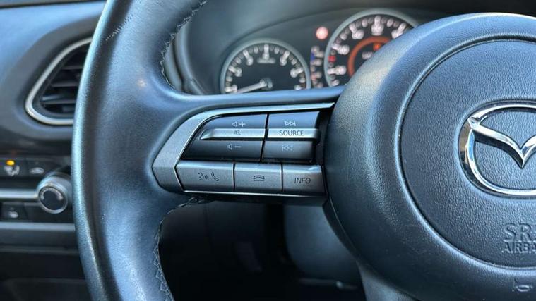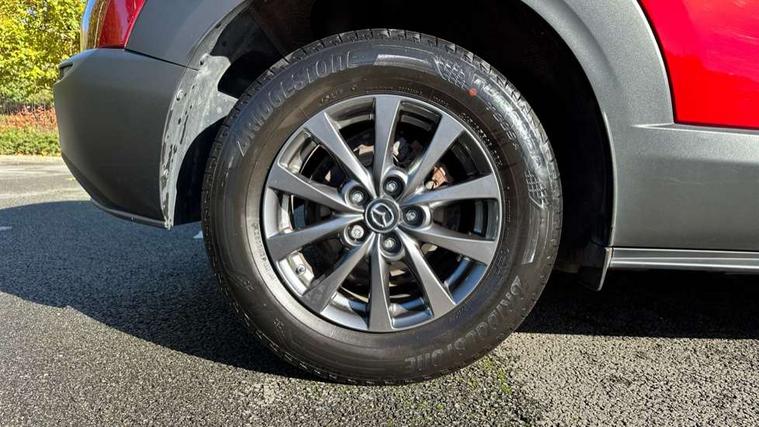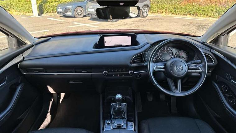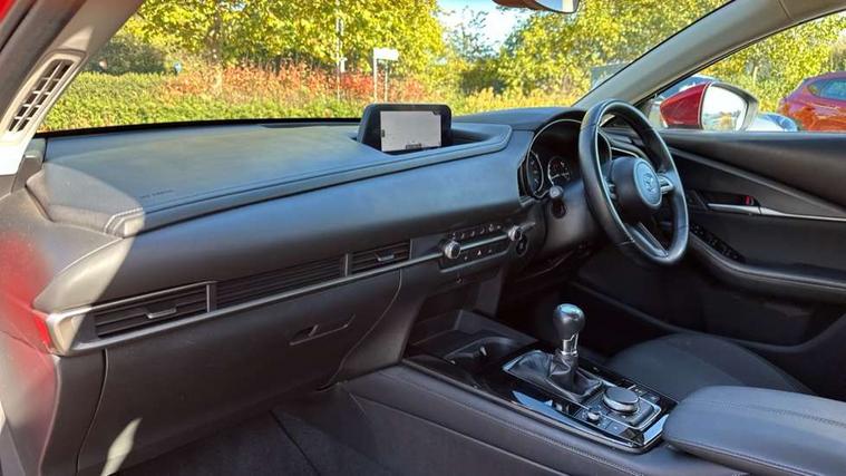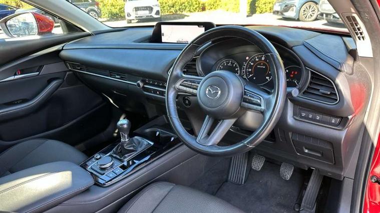 7" TFT Colour driver instrument panel display, 8.8" Colour centre touch screen display with Mazda Connect infotainment, Adaptive cruise control (Mazda radar cruise control), Apple car play/Android Auto, Blind spot monitoring with rear cross traffic alert, Driver attention alert system, E-call with GPS, Emergency stop signalling system, Engine start/stop button, Integrated bluetooth, Integrated Mazda navigation system, Intelligent speed assist, Lane keep assist system (LAS) with Lane departure warning system (LDWS), Mazda connected services, PAS, Rear parking sensor, Service indicator, Traffic sign recognition, Trip computer, Cylinder Deactivation, i-stop, 2 USB charging ports in front inner central armrest, AM / FM / DAB radio with 8 speakers, Multimedia Commander including separate volume dial, Steering wheel mounted audio/bluetooth controls, B-pillar and C-pillar garnishes in satin black finish, Auto headlight levelling, Body coloured, electrically adjustable, heated auto power folding door mirrors with integrated indicators, Chrome finish signature wing in front grille, Coming/leaving home lighting function, Dual chrome exhaust, Dusk sensing headlights, Electric front/rear windows with one touch auto up/down, Front kodo turn signal, Gloss black rear roof spoiler, LED headlights with halogen daytime running lights and high beam control, LED rear combination lights, Rain sensing front wipers with adjustable speed and intermittent wipe, Rear fog lights, Rear side wing doors, Rear wiper, Satin black front grille, Third brake light, 12V power outlet in centre console, 3 seat bench in 2nd row, 60/40 split fold down rear seats, Cloth upholstery with interior accents, Dark cloth door panel inserts, Dashboard, door cards and front centre armrest in black cloth, Driver and front passenger visors with covered vanity mirror and driver ticket holder, Driver seat manual slide, recline, height and seat tilt adjust, Driver, front passenger and two rear door storage, Driver, Front passenger and two rear grab handles with coathooks, Folding rear centre armrest with two cup holders, Front and rear (x3) head restraints, Front and rear LED lighting, Front armrest, Front centre storage with two cupholders, Front passenger seatback pockets, Front passengers seat manual slide, recline and height adjustment, Gear shift indicator, Glovebox illumination, ISOFIX child seat anchorage points attached on outer rear seats, Leather wrapped gear shift knob, Leather wrapped steering wheel with telescopic and tilt adjustment, LED luggage compartment lighting, Light roof headlining and pillars, Manual air conditioning, Roof mounted sunglasses holder, Single front passenger seat, 3 point ELR front seat belts x2 with pretensioners, 3 point ELR rear seat belts, Anti-lock braking system (ABS), Drivers knee airbag, DSC - Dynamic Stability Control, Electronic parking brake with auto disengage function and auto hold function, Front and rear curtain airbags, Front dual stage driver and single stage front passenger airbags, Front passenger airbag cut-off switch, Front side airbags, Front smart city brake support, G-Vectoring control plus, Hill launch assist, Manual child lock in rear doors, Mild Hybrid system with regenerative braking, Seatbelt reminder for driver/front passenger and rear seats, Traction control system (TCS), Tyre pressure monitoring system (TPMS), Remote central locking with deadlocking and automatic door lock when driving, Thatcham accredited alarm and immobiliser, 16" Grey alloy wheels, Emergency tyre repair kit,