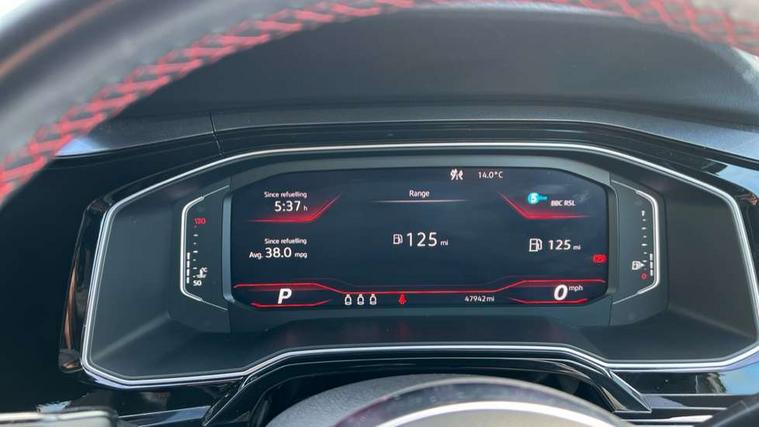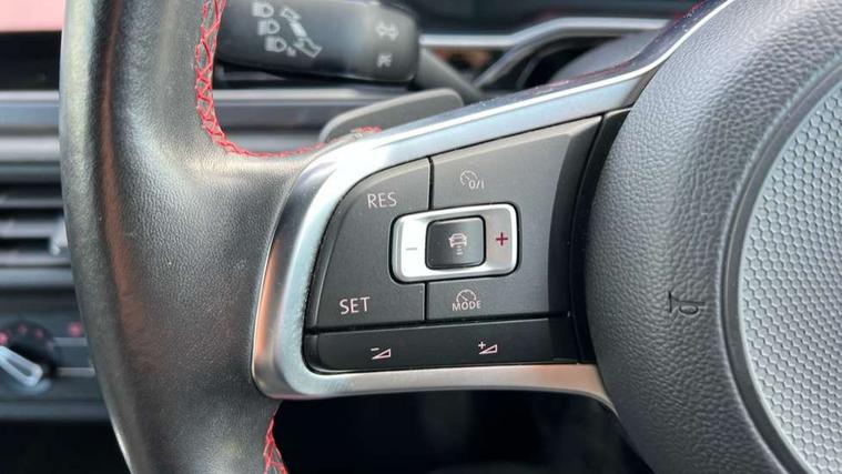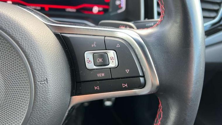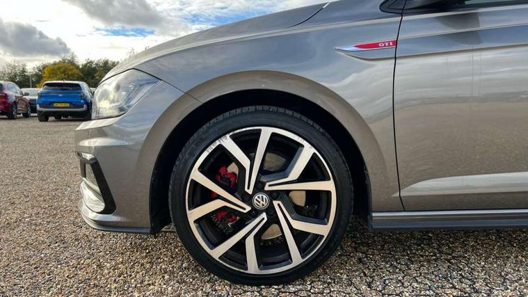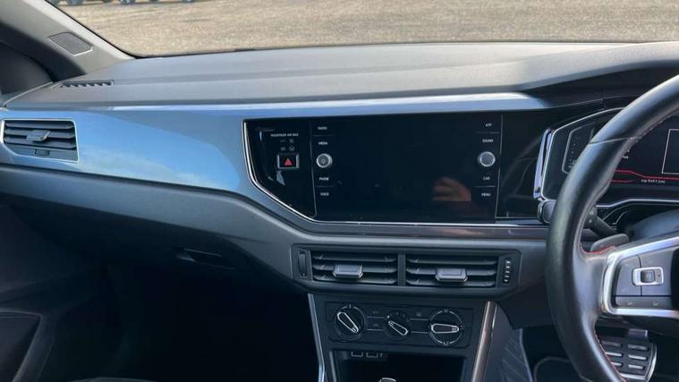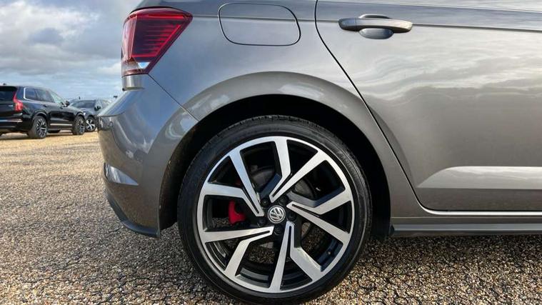 App-Connect, ACC - Adaptive cruise control with front assist, forward collision warning, distance monitoring, city emergency brake and speed limiter, Active Info Display, 10.3" high resolution TFT dash display screen with customised information, Bluetooth Telephone preparation, Driver alert system, Multifunction colour display, PAS - speed related, Service interval indicator, Start/stop system, Trip computer, Warning buzzer and light for front seatbelts unfastened, Battery regeneration during braking, Lowered sports suspension, XDS electronic differential lock, 6 speakers, Composition media system with radio, glovebox mounted CD, colour touch screen, SD card, aux-in, USB, multimedia interface, DAB Digital radio, Driver Personalisation profile selection, Automatic dimming interior rear view mirror with rain sensor, Black grille with chrome surround, Body colour bumpers, Body colour door handles, Body coloured side sills, Chrome insert to lower bumper, Chrome trimmed front air intake surrounds, Dusk sensor + automatic driving lights, Electric folding door mirrors, Electric front windows, Electric operated/heated door mirrors, Extended sill strips flared in black, Front fog lights including static cornering, Front wash/wipe with interval delay, Fully galvanised body, Gloss black rear spoiler, Heated rear window with auto timer, High level 3rd brake light, Honeycomb radiator grille with red stripe, LED darkened rear light clusters, LED daytime running lights, LED headlamps with automatic range adjustment, LED rear number plate lights, Manual coming/automatic leaving home lighting function, Rear electric windows, Rear tinted glass from B-pillar backwards approx 65% tinted, Rear windscreen washer and wiper with interval delay, Stainless steel door sill protections with GTI logo, Twin chrome exhaust tailpipes, Unique GTI badging, 12V power socket in centre console, 2 bag hooks in luggage compartment, 2 cupholders, 3 rear head restraints, 60/40 split folding rear seat, AlumInium look pedals and driver's footrest, Ambient lighting, Black roof lining and sun visors, Chrome-plated electric window button surround, Driver/front passenger seat height adjustment + underseat drawers, Driver/passenger sunvisors with illuminated vanity mirrors, Dust/pollen filter, Front + rear carpet mats, Front centre armrest with storage compartment, Front seat backrest storage nets, Front seats with lumbar support, Front/rear reading lights, Gear change selection via paddle shift on steering wheel, Glovebox, Handbrake grip button in chrome effect, Height/reach adjustable steering column, Instrument lighting, white adjustable panel illumination, Interior light with delay, Isofix Preparation 2 Rear child seats, Jack and tool kit, LED footwell lights, Luggage compartment cover, removable, Luggage compartment lighting, Matt chrome gear lever gaiter surround, Storage compartment in front doors, Storage compartment in rear doors, Storage compartment under front seats, Three spoke leather trimmed multifunction steering wheel with red contrast stitching, Titanium black headlining, Variable boot floor, Variable Luggage compartment, GTI styling pack - Polo, Light and sight pack - Polo, 3 point height adj front seatbelts + pretensioners, 3x3 point rear seatbelts, ABS, Automatic post collision braking, Driver/front passenger airbag, Driver/Passenger whiplash optimised head restraints, ESP with EDL + ASR, Front and rear passengers curtain airbag system including front side airbags, Front passenger airbag deactivation, Front/rear disc brakes, HBA (Hydraulic Brake Assist), Hill hold control, Red brake calipers, Two tone horn, Tyre pressure monitoring system, Alarm with remote central locking and interior protection, Electronic engine immobiliser, Remote keyless entry using key fob including Start/Stop button on centre console, Air vents in Matt chrome, Chrome plated electric mirror adjustment light switch surround, Gloss black instrument surrounds, Space saver spare wheel,