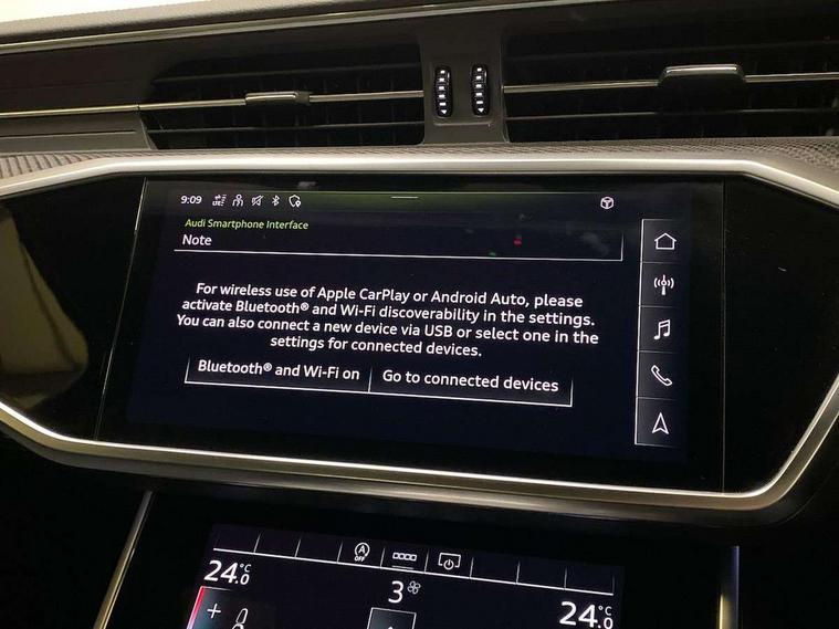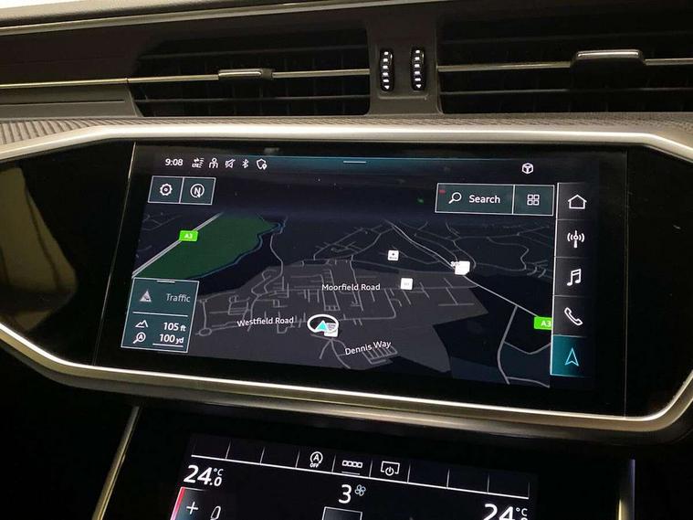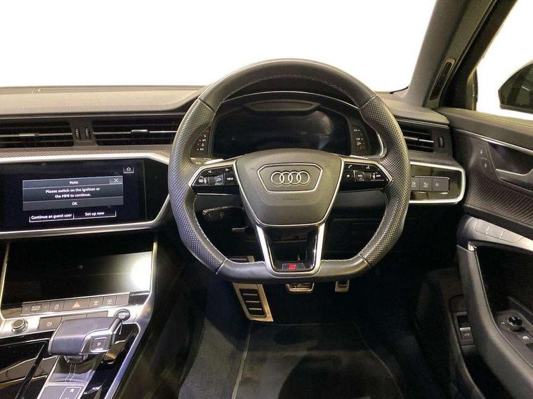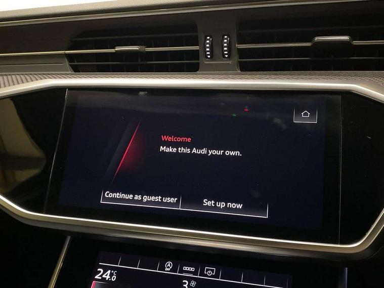 7" high resolution colour driver information display system, Audi connect safety and service (e-call), Audi drive select, Audi parking system plus - acoustic and visual park assist system for front and rear, Audi smartphone interface, Automatic start/stop system with coasting functionality, Bluetooth interface, Lane departure warning system, MMI navigation with MMI touch + twin touch screens 8.8" and 8.6" with haptic and acoustic feedback, Power operated tailgate, Progressive steering, Rear view camera, Service interval indicator, Voice control system, 12V Mild hybrid, 24 litre AdBlue tank, Diesel particulate filter, Quattro on demand, Sports suspension, Audi music interface, Audi sound system, Auxiliary input socket, DAB Digital radio, USB connection, Black roof rails, Electric front/rear windows, Frameless auto dimming interior rear view mirror, Gloss black exterior mirror housings, Gloss black highlights on the exterior area of the Audi Single frame, Gloss black highlights on the front and rear bumpers, Gloss black highlights on the radiator grille, Gloss black highlights on the side windows trim strips, Headlight washers, Heat insulating darkened glass in side and rear windows, Heat insulating glass in windshield, LED rear lights, LED signature front daytime running light, Matrix LED headlights with dynamic rear indicators, Matt black rear diffuser with diffuser strip and tailpipes in chrome, Matt black side air intake grille with inlay in matt aluminium, Privacy glass, Rain and light sensors, Rear roof spoiler, Signature rear LED light design, 2 zone deluxe electronic climate control, 4 way electric lumbar support for driver and front passenger, 40/20/40 split folding 3 rear seat bench in 3 parts with rear centre armrest, Black cloth headlining, Electrically adjustable front seats with driver memory, Front centre armrest, Front head restraints, Front/rear floor mats, Heated front seats, Height/reach adjust steering wheel, Illuminated door sill trims with S logo, Illuminated sun visors with vanity mirrors, ISOFIX child seat mounting and Top Tether with front passenger airbag deactivation, Leather gear knob, Luggage compartment system, Rear headrests, Stainless steel pedals and foot rest, Tool kit and car jack, LED Interior Ambient Lighting Pack - A6, Non smoking pack - A6, 3 point seatbelts on all seats, Airbags - Front side, front and rear including head, Audi pre-sense front, Black seatbelts, EBD - Electronic brakeforce distribution, Electromechanical parking brake, Electronic Stability Control (ESC) including ABS, ASR and EDL, Extended pedestrian protection measures, Seatbelt monitoring, Tyre pressure warning light, Warning triangle and first aid kit, Anti theft alarm with tow away protection, Anti-theft wheel bolts and wheel loosening detection, Immobiliser, Keyless Go, Remote central locking, Matt brushed aluminium dark inlays, 20" 5 V spoke star design Audi sport cast aluminium alloy wheels in matt titanium look,