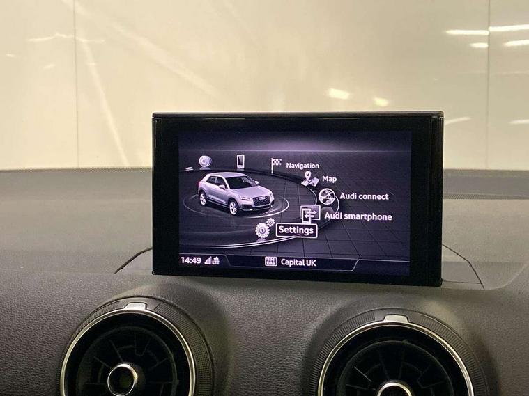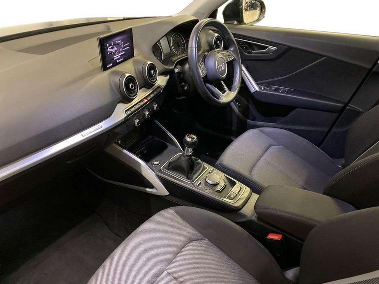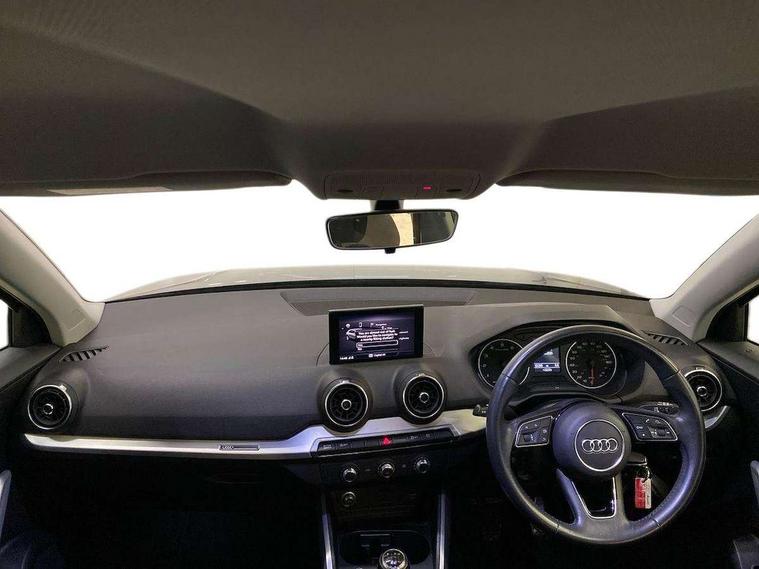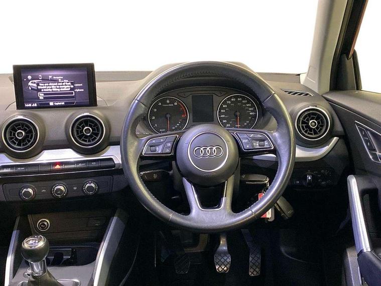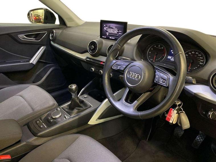 Audi drive select, Audi smartphone interface, Automatic start/stop system with recuperation, Bluetooth interface includes bluetooth audio streaming, Cruise control, MMI - Multi Media Interface control system, MMI SD card integrated nav with 3D map display, dynamic route guidance with TMC, MMI search, natural voice recognition and myAudi special destinations, Power operated tailgate, Progressive steering, Service interval indicator, Dynamic suspension, 2 x SDXC card reader, Audi music interface - apple iPod, apple iPhone, USB storage media, compatible MP3 players, 2 x USB charging points and 1 x Aux-in, CD Drive, DAB digital radio and AM/FM radio, MMI radio plus with 7" colour MMI screen and MMI controller, Air inlet in manhattan grey metallic, Black window trims, Body colour door mirrors, Chrome exhaust tailpipe, Electrically adjustable and heated door mirrors with integrated LED side indicators, Front and rear electric windows, Front underbody guard and rear diffuser trim in selenite silver, Front windscreen with grey tinted sunband, Halogen headlights including headlight range adjustment, High gloss black radiator grille, Interior mirror, LED indicator lights, Manual folding door mirrors, Rain and light sensors, Rear wiper, Side skirts in manhattan grey, Wheel arch trims in manhattan grey, 60/40 split folding rear seat bench, Door sill trims with aluminium inlay, Electronically operated child locks, Front centre armrest, Front headrests, Front sports seats, Front/rear floor mats, Height/reach adjust steering wheel, ISOFIX child seat mounting for front passenger with airbag deactivation and outer rear seat including top tether attachment point for outer rear seats, Manual seat adjustment including seat height adjustment for front seats, Storage compartments - Glovebox, cupholder compartment in centre console, storage compartment in rear centre console, front and rear door pockets, Three rear headrests, Titanium grey cloth headlining, Non smoking pack - Q2, 3x3 point rear seatbelts, 6 airbags - Front, curtain and front side airbags, Electromechanical parking brake, Electronic stabilisation control including ABS, ASR and EDL, Extended and proactive pedestrian protection, Hill hold assist, Multi collision brake assist, Pre-sense front with pedestrian recognition, Seatbelt monitoring, Tyre pressure warning light, Warning triangle and first aid kit, Anti theft alarm, Anti theft wheel bolts, Central locking system with remote control key, Aluminium interior element,