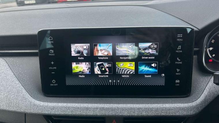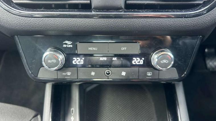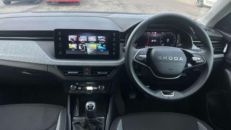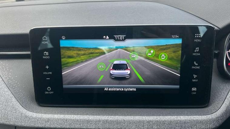 Advanced driver attention and drowsiness monitor, Bluetooth, e-Call (emergency call), Front assist system, PAS, Rear parking sensors, Rear view camera, Speed limiter, Tailgate, Traffic sign recognition, Virtual Cockpit - 10.25" digital display, Voice control system, Wireless smartlink, 4 USB C ports, 8 Speakers, 9.2" Skoda navigation display, DAB radio, Auto dimming rear view mirror, Automatic headlamp activation with Coming home and Leaving home feature, Automatic high/low beam, Body colour bumpers, Body colour door mirrors and handles, Chrome moulding around grille, Front and rear electric windows, Full LED headlights, Heated rear window, LED 3rd brake light, LED brake lights, LED daytime running lights, LED front turning lights, LED high beam, LED low beam, LED taillights, Rear LED fog light, Rear side wing doors, Rear wiper, Tinted windows, Unique dark chrome design logo on alloy wheels, 12V socket in luggage compartment, 3 seat bench in 2nd row, Black / Grey armrest stitching, Black hotstamping, Cargo elements, Chrome inner door handles, Door inserts in satin black, Driver and passenger sun visors with vanity mirror, Dual zone climate control, Front and rear roof lights, Front centre armrest, Front head restraints, Glasses storage in roof liner, Height adjustable driver seat, Height adjustable passenger seat, Ice scraper, Illuminated glove compartment, Inner circulation control with pollen filter, ISOFIX for front passenger seat, Isofix preparation for back seats, Leather gearknob and handbrake lever, Loft cloth upholstery, Luggage net under rear parcel shelf, Manual lumbar support for front seats, Net package and top tether hooks in boot space, Pearl grey ceiling, Pocket on the back of both front seats, incl. mobile phone pockets, Single front passenger seat, Skoda lettering on steering wheel, Textile floor mats, Third rear headrest, Ticket holder, Top tether for front passenger seat, Umbrella in driver's door, 3x3 point rear seatbelts, ABS, Child locks, Curtain airbags and front side airbags, Disc brakes, Driver and front passenger airbags, ESP, Hill hold control, Manual leather parking brake, One tone horn, Passenger airbag switch off function, Seatbelt reminder for driver and front passenger, Tyre pressure monitoring system, Anti theft alarm system with interior monitoring, backup horn and towing protection, Anti-theft wheel bolts, Remote central locking with 2 remote folding keys, SAFE function for remote central locking, Decord pad, door inserts Kota uni,