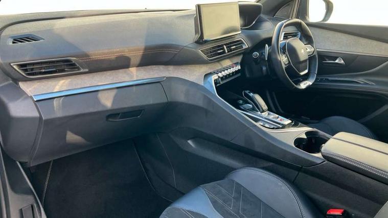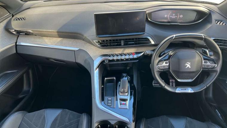 3D connected navigation with 10" HD touchscreen, Bluetooth telephone facility, Drive modes select (Eco, normal and sport), Driving Time Warning (DAA1), Emergency services call system, Extended traffic sign recognition, Exterior temperature indicator with ice warning, Front and rear parking sensors, Mirror screen with mirror link, apple carplay and android auto, Multi function trip computer, Passive blind spot monitoring without Steering correction, PEUGEOT i-Cockpit with 10" high definition capacitive touchscreen, Peugeot i-cockpit with compact multi-function sports steering wheel, PEUGEOT i-Cockpit with configurable 12.3" Head-up digital instrument panel, PEUGEOT SOS and assistance, Rear passenger USB charging sockets (x2) (type A), Speed limit recognition and recommendation, Visio park assist 360 with colour camera system + automatic parking assist, Voice recognition, Dynamic stability control and electronic anti-skid system, Stop/start function, DAB Digital radio, Focal premium HiFi sound system, USB socket, Auto self levelling headlights, Automatic hazard light activation upon heavy brake application, Automatic triggered rear windscreen wiper in reverse gear, Black with chrome detailed front wing trim, Body colour door handles, Body colour rear roof spoiler with stainless steel edging trim, Body protectors (bottom of front and rear bumpers + wheel arches + protection at bottom of doors) in black, Dark tinted rear side windows + tailgate window, Diamond Black door mirror shells, Door mirror mounted LED courtesy floor lighting, Electric folding door mirrors with exterior courtesy LED lighting, Electric operated/heated door mirrors, Fog Mode, Front windscreen wiper with magic wash cleaning system, Full LED headlights with LED fog lights with static cornering function, Gloss black B and C pillar and aerodynamic deflector trim, Gloss black front bumper air scoops, Gloss black rear cluster connecting strip, Gloss black windscreen trim, GT emblem in satin copper (front wings and tailgate), Headlights left on audible warning, Heated rear windscreen with integrated antenna, LED daytime running lights, LED front indicator, LED rear number plate lighting, LED side indicator lights integrated into door mirrors, LED third brake light, One touch electric front/rear windows with pinch protection, Rear LED Peugeot signature 'Claw Effect' lights, Rear side wing doors, Stainless steel roof arches, Twin exhaust tailpipe, 1/3 to 2/3 split folding rear seats, 12V Sockets in dashboard, rear cabin and load area, 2 cupholders in front centre console, 2 cupholders in rear armrest, 2 x Rear reading spotlights, 2x Rear coat hooks, 3x Isofix child seat fittings in the front passenger and outer rear seats, 4 Grab handles retractable and damped, Aikinite stitching in armrest, gear lever and dashboard facia, Aluminium pedals, Blue ambient lighting for connecting zone, Blue ambient lighting to front door panels, central storage and cupholders, Blue ambient lighting to headup instrument panel, Centre front armrest with butterfly wing opening and illuminated storage compartment, Dual zone automatic climate control, Electric power steering with reach and rake adjustable steering column, Flocked front door pocket interior with blue ambient lighting, Flocked glovebox interior, Focal tweeter speaker grilles in Belem bronze metal effect finish, Foldable front passenger seat with picnic table, Footwell illumination, Front interior light with 2 reading spotlights and rear interior light with timer, Front passenger seat manual adjustment (longitudinal and back rest angle), Front seat back map pockets, Gear shift indicator, Illuminated glovebox, Individual left and right controls in boot for seat folding, LED interior lighting in storage spaces and load area, LED roof interior lighting, Mistral floor mats with Aikinite contrast stitching, Mistral full grain perforated leather steering wheel with aikinite stitch detail and satin chrome 'GT' emblem, Rear bench seat with central armrest and ski hatch, Rear centre console ventilation system, Roof lining - Mistral black, Satin chrome dashboard trim, Satin chrome digital instrument panel and touchscreen trim, Satin chrome front door panel recess trim, Satin chrome interior door handles, Satin chrome scorpion's tail and toggle switch trim, Seatbelt not fastened audible and visual alert for front seats, Seatbelt unfastened on the move audible and visual alert for front and rear seats, Sunvisors with illuminated vanity mirrors, Two position boot floor, Drive assist plus pack - 3008, Driver sport pack - 3008 Auto, Safety plus pack with high beam assist - 3008, Visibility pack - 3008, 3x Rear three-point retractable seatbelts with force limiters in the outer rear seats, ABS (Anti-lock Braking System) with EBD (Electronic Brakeforce Distribution) and EBA (Emergency Braking Assistance), Adaptive driver and front passenger airbags with passenger airbag deactivation function, Driver and front passenger side airbags, Electric child locking functionality on rear windows and doors, Electric parking brake, Front and rear curtain airbags, Front optimised safety headrests and 3 x rear retractable headrests with height adjustable, Front three point retractable seatbelts with pre tensioners and force limiters, Front ventilated disc brakes and rear disc brakes, Hill start assist, Two tone horn, Automatic door locking when moving off, Electronic immobiliser, key operated exterior door lock from the left hand door, Perimetric and volumetric alarm with lift and tilt sensor, Peugeot Open and Go System, Remote control central locking with two plip keys, Puncture repair kit including compressor, sealant cartridge and towing eye,