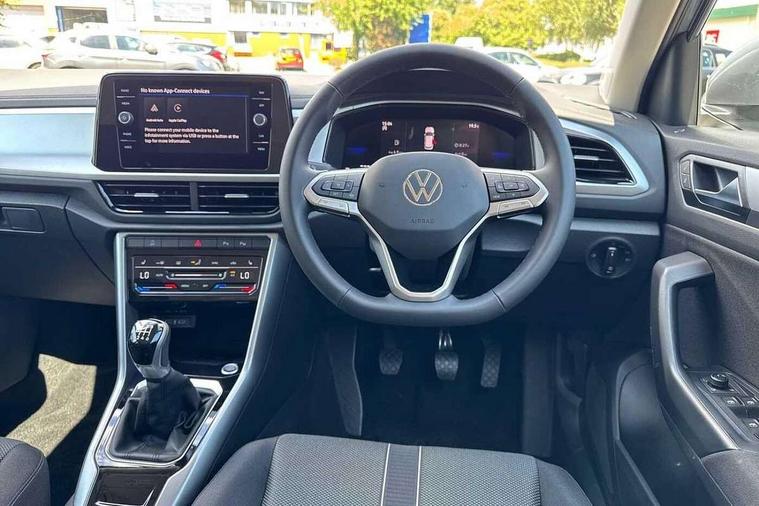 Advanced driver attention and drowsiness monitor, Dynamic road sign display, Emergency call service, Lane keeping system Lane Assist, Mobile phone interface, Modified key software - reduce switch off time for key status change to Long no motion, Online services, Park assist including front and rear parking sensors, Power assisted speed sensitive steering, Rear view camera, Service interval indicator, Tailgate/trunk lid release from outside, Think blue trainer driver tips and journey analysis, Warning sound and light for front seatbelts unfastened, Wireless app connect, Battery regeneration during braking, Front shock absorption, Rear shock absorption chassis with increased ride height, Start/stop function with battery regeneration, DAB Digital radio, Diversity antenna for FM reception, Music playback - MP3, WMA and AAC files, Premium USB cable in choice of either Apple or Android smartphone compatibility, SD card slot, Simultaneous pairing of 2 compatible mobile devices, Title and cover art display, We Connect and We Connect Plus functionality, Auto dimming interior rear view mirror, Automatic hazard lights activation under emergency braking, Automatic headlight control with LED separate daytime running lights with coming/leaving home function, Black roof rails, Body coloured bumpers and radiator grille with chrome trim and front fog lamps with chrome bezel, Body coloured exterior mirror housings and door handles, Electrically adjustable and heated door mirrors, Extended roof spoiler, Exterior mirrors aspherical on driver side, convex on front passenger side, External USB type C socket and charging sockets, Front windscreen wiper with intermittent wipe and 4 position delay, Heated rear window, LED 3rd brake light, LED rear combination lamps, LED rear number plate lights, Power windows with comfort operation and circuit breaker, Privacy glass for rear side windows and rear window, Rain sensor, Rear exhaust tailpipe, Rear fog light on one side and reversing lights on both sides, Rear side wing doors, Rear wash/wipe with intermittent wipe setting, Remote electrically foldable door mirrors, puddle lights and reverse activated passenger's door mirror, 12V power socket in centre console, 3 rear head restraints, 3 seat bench in 2nd row, 4 load lashing points in luggage compartment, Air care climatronic air conditoning system with active combination filter and 2-zone temperature control, Black stitching for floor mats, Ceramique roof liner, Cloth upholstery, Door and side trim panel in cloth, Drawer under drivers seat, Driver/front passenger seat height adjustment, Front centre armrest, Front comfort sports seats, Front cupholders x 2, Front reading light, Front seat back storage pockets, Glove compartment door with light, Instrument lighting, white adjustable panel illumination, Interior ambient lighting and surround lighting, Interior light delay, Isofix child seat preparation, Leather gearshift handle, Load-through provision with cup holder when folded down ('Unsplit rear seat bench, split folding backrest, with centre armrest), Luggage compartment lighting, Lumbar support for driver's and front passengers seat, Non-folding front passenger seat backrest, Single front passenger seat, Storage compartment in left and right luggage area, Storage compartment in rear doors, Storage compartments in driver and front passenger doors, Sunvisors with illuminated vanity mirrors, Variable boot floor, height adjustable and removable, Driver assistance pack without proactive passenger protection - T-Roc Life/Match, 3 point height adj front seatbelts + pretensioners, 3 point seatbelts in outer rear with ECE label, ABS, Child locks on rear doors, City emergency braking and pedestrian monitoring, Driver and front passenger airbag with front passenger airbag deactivation, Driver and front passenger safety-optimised head restraints, Drivers seatbelt reminder, Electronic parking brake, Electronic Stability Control (ESC) inc EDL (Electronic Differential Lock) and ASR (Traction Control), Front and rear passengers curtain airbag system including front side airbags, Front disc brakes, Hill start assist, Predictive pedestrian protection, Rear disc brakes, Two tone horn, Tyre pressure loss indicator, Volkswagen roadside assistance, Alarm with interior protection, Keyless locking and starting system keyless access with safelock, Pewter matt decorative inserts for intrument panel, centre console and door panels at the front, Trims for alloy wheels,