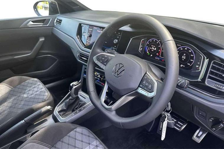 Adaptive cruise control, Advanced driver attention and drowsiness monitor, App-Connect including App-Connect Wireless, Digital cockpit pro - 10.25" high resolution TFT dash display screen with customizable menus and information, Driving profile selection, Dynamic road sign display, e-Call (emergency call), Power Steering, Travel assist including emergency assist, Washer fluid level indicator, Wireless Charging including Bluetooth, Start-stop system with battery regeneration (recuperation - energy recovery during braking), XDS electronic differential lock for improved traction and handling, Digital radio reception (DAB+), Diversity antenna for FM reception, WeConnect plus, Ambient lighting with logo projection, Aspherical driver's exterior mirror, Auto headlights, Body coloured bumpers, Bumpers in R-Line style, Electric windows, External USB type C socket and charging sockets, Front scuff plates with R-Line logo, LED rear combination lamp, LED third brake light, Left convex exterior mirror, Power folding adjustable/heated exterior mirrors and front passenger exterior mirror lowering function, Rear fog light on one side, reversing light on both sides, Rear side wing doors, Rear wash/wipe with intermittent wipe setting, 12V socket in centre console, 2 front reading lights, 3 rear head restraints, 3 seat bench in 2nd row, Air care climatronic air conditoning system with active combination filter and 2-zone temperature control, Black carpets, Black roof lining, Child seat anchor for child seat system i-Size, 2x top tether and child seat anchor in front on front passenger side, Chrome bezel for instrument cluster, vents, door handles + gear shift, Driver and front passenger seat height adjustment, Front + rear carpet mats, Front centre armrest, Front footwell illumination, Front sports comfort seats, Height and reach adjustable steering wheel, Interior ambient lighting and surround lighting, Karoso artvelours cloth upholstery, Leather trimmed gear knob, Leather wrapped multifunction steering wheel, Luggage compartment floor, Luggage compartment light, Lumbar support for driver's and front passengers seat, Seat covers in grey + titanium black, Single front passenger seat, Split folding backrest with centre armrest and unsplit rear seat bench, Stainless steel pedals, Storage compartment under front seats, Sun visors with illuminated vanity mirrors, Chrome Package - Taigo, Drivers assistance pack - Taigo, Light and Sight pack including High beam assist - Taigo, 2 x 3-point seatbelts/outer rear seats with ECE label, 3-point seat belts in front with pretensioner and height adjustment, 3-point seatbelt for centre rear seat, Adaptive driver and front passenger airbags with passenger airbag deactivation function, Driver and front passenger safety-optimised head restraints, Electronic stability control, Extended and predictive pedestrian/ cyclist protection, Front and rear disc brakes, Front curtain and side airbags with center airbag, Hill start assist, Manual rear child locks, Single tone horn, Tyre pressure loss indicator, Anti-theft alarm system with interior monitoring, backup horn, and towing protection, Grey anodised matte decorative inserts in dash and front door panels, Low rolling resistance tyres,