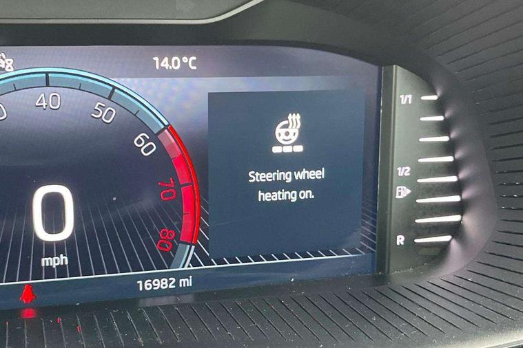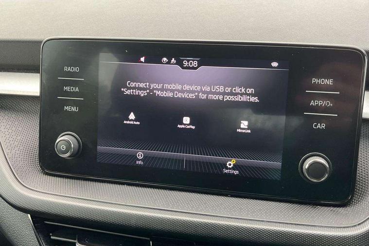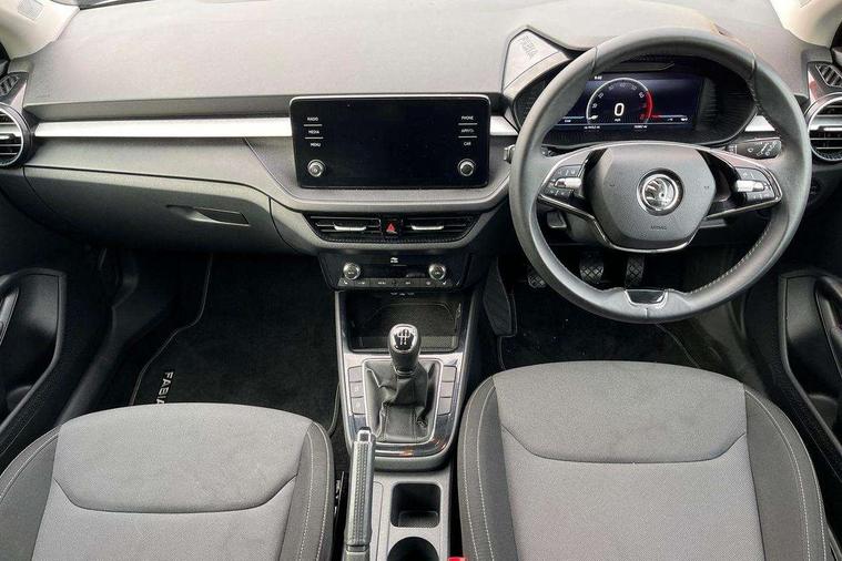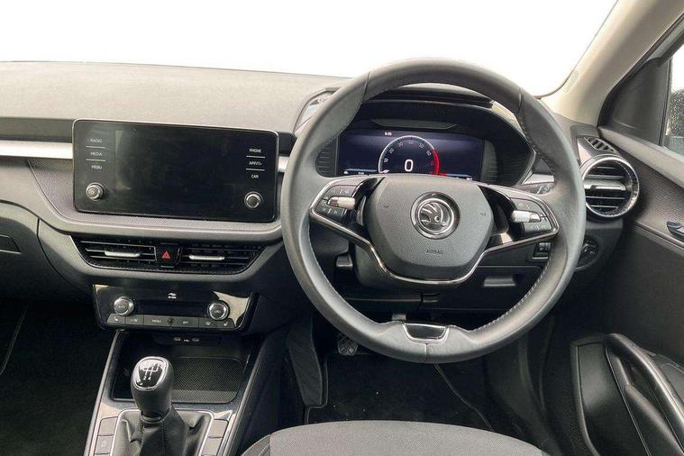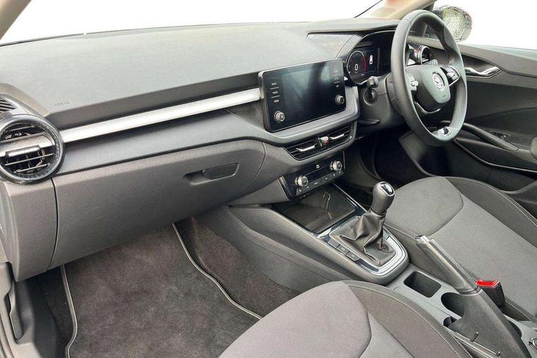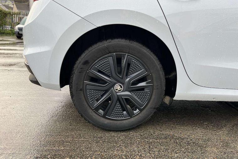 Advanced driver attention and drowsiness monitor, Bluetooth connection, Electromechanical power steering, Exterior temperature gauge, Service interval indicator, Traffic sign recognition, Virtual cockpit with 10.25" colour display, Wireless SmartLink for Apple CarPlay and Android Auto, 6 Speakers (4 in front and 2 in rear), Auxiliary socket for external MP3 player, DAB digital radio reception, Body coloured bumpers, Dimming rear view mirror with black frame, Door mirror integrated indicators, Front and rear electric windows, Front window wiper intermittent control, Headlight range control - Automatic, Ice scraper in fuel cap, LED daytime running lights with coming and leaving home feature, LED rear lights, Privacy glass, Rear LED fog light, Rear side wing doors, Rear window wiper with washing nozzles, Roof mounted spoiler, SKODA tailgate lettering in chrome, Third brake light, 2 reading lights in front and 2 reading lights in rear, 3 rear headrests, Backrest split and folding, Central console with removable cup holder and storage box, Chrome handbrake release button, Fabric upholstery, Front centre armrest, Gearshift knob/handle in leather, Grain satin black interior door handles, Hand brake lever handle in leather, Height adjustable front headrests, Height adjustable steering wheel, ISOFIX and TopTether anchorage points to the outer rear seats, ISOFIX and TopTether on the front passenger seat, Luggage compartment lighting, Manually adjustable lumbar support in front seats, Pollen filter, Rear seat bench unsplit, Single front passenger seat, Storm grey headlining, Sun visors with mirror and airbag label on passenger side, Textile floor mats, Ticket holder, Umbrella in drivers door, 3-point height adjustable front seats belts with pretensioner and force limiter, Automatic warning lights in case of crash, Driver and passengers airbag with switch off function, e-Call+, ESC including ABS, MSR, ASR, EDS, HBA and XDS, Front and rear seat belt warning, FRONT ASSIST (AEB City and AEB Inter Urban), Front side airbags, Head airbags, Hill hold control, One tone horn, Pedestrian protection, Three rear 3-points safety seat belts with pretensioner and force limiter including stop function for outer rear seat belts, Tyre pressure monitoring system, Anti-theft alarm system including immobiliser, interior monitoring, backup horn, and towing protection, Central locking with radio remote control, interior controls, SAFE function and 2 foldable keys, Colour Edition air vents, Grain satin black central console cover, Metallic grey upper decorative trim, Satin black door and side trim panel in front, Textile Kota grey lower decorative inserts, Anti-theft wheel bolts protection, Super-low rolling resistance tyres,
