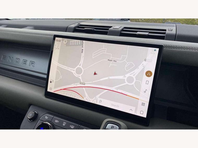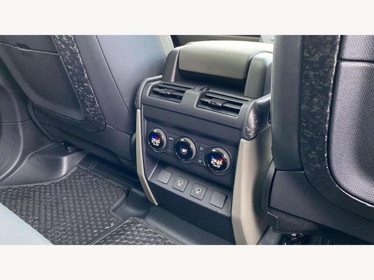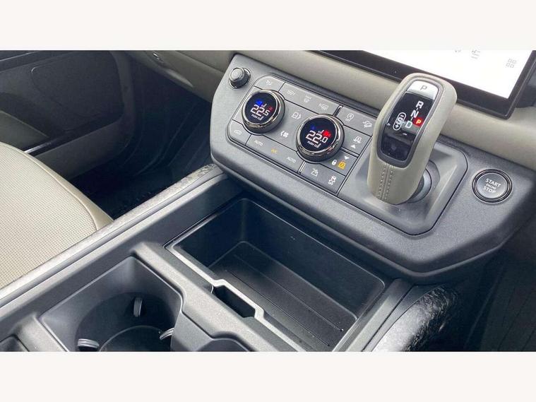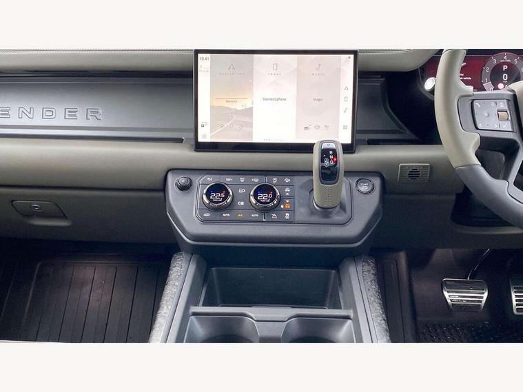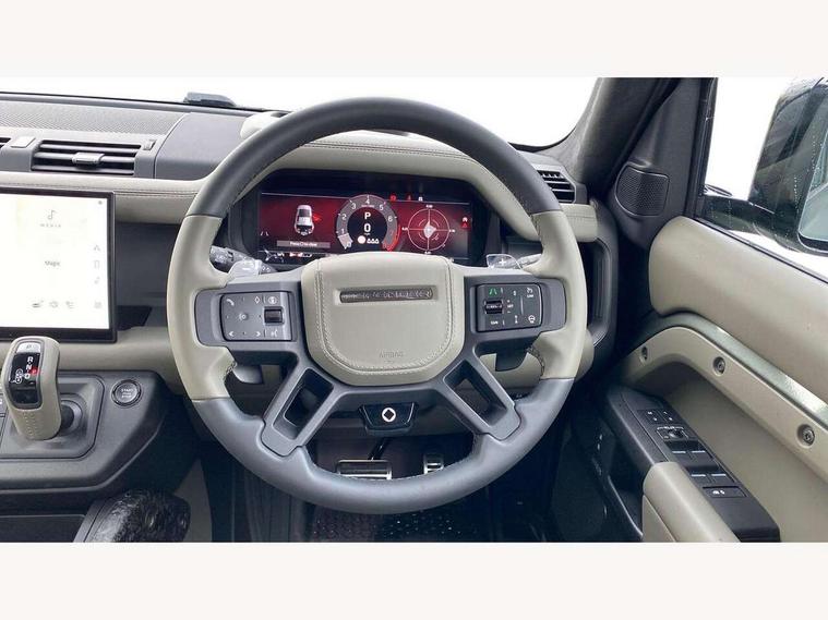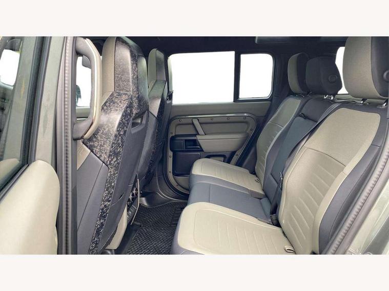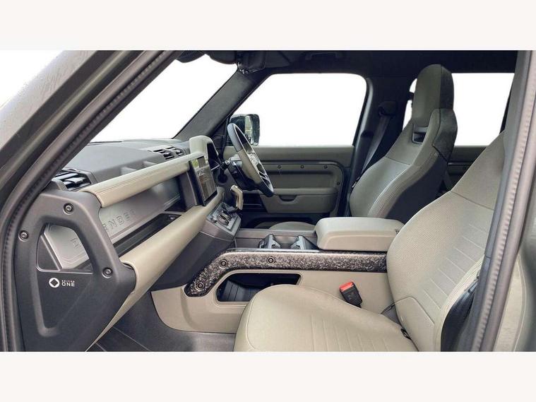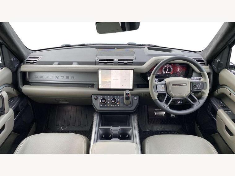 1 x USB-C (power only) & 1 x USB-C (power & data) in Row 1, 2 x USB-C in Row 2, 11.4" touchscreen, 360 degree parking aid, 3D Surround Camera with 360 View, 180 Rear View, Front Traffic Detection, Forward Vehicle Guidance, Tow Hitch Assist and clear sight Ground View, Adaptive cruise control, Android Auto, Apple CarPlay, Blind spot assist, Bluetooth system, Brake pad wear indicator, Clear exit monitor, Configurable programs, Connected navigation pro, Driver condition monitor, Electric power assisted steering (EPAS), Garage door opener (Homelink), Head up Display, Interactive driver display, Lane keep assist, Push button start, Rear collision monitor, Rear traffic monitor, Traffic sign recognition with adaptive speed limiter, Trip computer, Wade Sensing, Wireless device charging, 6D Dynamics, 8 speed automatic transmission, All terrain progress control, All wheel drive system, Electronic active differential with brake torque vectoring, Terrain Response 2 with dynamic program, Twin speed transfer box, DAB Radio (Digital Audio Broadcasting), Meridian 700w surround sound audio system with 15 speakers, Pivi pro connected, Advanced tow assist, Automatic headlight levelling, Automatic headlights, Black contrast roof, Black contrast tail door, ClearSight interior rear view mirror, Darkened LED tail lights, Electric heated/power fold door mirrors with approach lights and auto dimming driver side, Electric windows with one touch open/close and anti-trap, Follow me home lighting, Front fog lights, Graphite front undershield, Headlamp power wash, Heated rear window with timer, Heated washer jets, Heated windscreen, Illuminated metal treadplates with brand name script, LED 3rd brake light, Matrix LED headlights with signature DRL, Octa badge, Phosphor bronze exposed rear recovery eyes, Privacy glass, Puddle lights, Rain sensing windscreen wipers, Rear fog lights, Rear side wing doors, Rear wiper, Satin black exhaust finisher, Side hinged tailgate, Signature graphic (with interior storage), Sliding panoramic roof, Solar attenuating windscreen, Trailer stability assist, 12V power socket in loadspace, 14 way heated and cooled electric memory performance front seats, 3 seat bench in 2nd row, 40:20:40 folding, heated rear seats with centre armrest, Air quality sensor, Alpine lights, Body and soul seat, Bright metal pedals, Cabin Air Purification plus, Chopped carbon fibre seatback, Configurable cabin lighting, Domestic plug socket, Durable rubber cabin flooring, Durable rubber loadspace flooring, Edge illuminated paddle shifters, Electric cabin pre conditioning, Electric reach + rake adjustable steering column, Electrically adjustable steering column, Footwell lights, Front centre console refrigerator compartment, Front head restraints, Front passenger isofix child seat attachment, Heated steering wheel, Loadspace cover, Loadspace Hook, Multifunction steering wheel, No flat load floor storage, Overhead stowage for sunglasses, Rear headrests, Rear ISOFIX, Rear reading lights, Signature carpet mats, Signature interior upgrade, Single front passenger seat, Soft close tail door, Standard seat configuration, Storage glovebox, Sunvisors with illuminated vanity mirrors, Three-zone Climate Control with Rear Cooling Assist, Twin front cupholders, Chopped carbon fibre exterior pack - Defender, Non-smoker package, Online pack with data plan - Defender, 5 x 3 point seatbelts, ABS, Brake hold function, Cornering brake control (CBC), Cross car beam in metallic grey powder coat brushed finish, Customer configurable autolock, Driver and passenger airbags, DSC - Dynamic Stability Control, EBD - Electronic brakeforce distribution, Electric parking brake (EPB), Emergency brake assist, Emergency braking, ESP + traction control, Front airbags with passenger seat occupant detector, HDC - Hill descent control, Hill launch assist, Low traction launch, Phosphor bronze front brake calipers, Power operated child locks, Remote for (e-Call, Optimised assistance call, InControl app, Climate, beep and flash and door), RSC - Roll stability control, Seat belt reminder, TPMS (Tyre pressure monitoring system), Alarm, Immobiliser, Intrusion sensor, Keyless entry, Locking wheel nuts, Secure tracker pro, Chopped carbon fibre finisher,