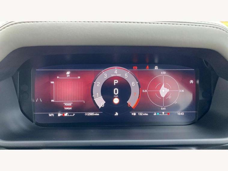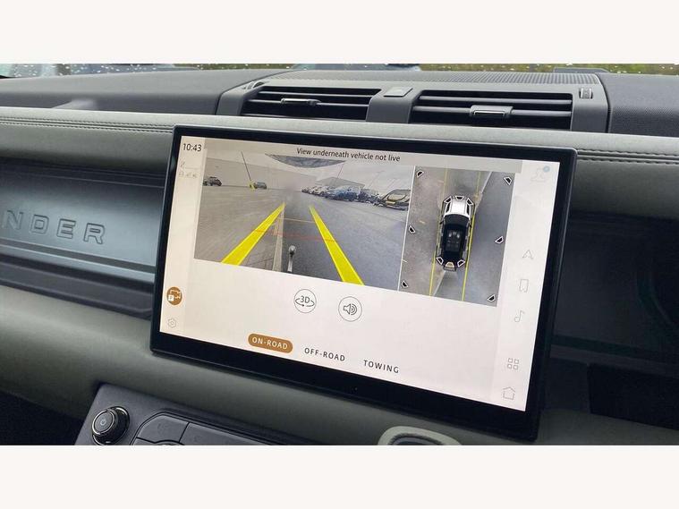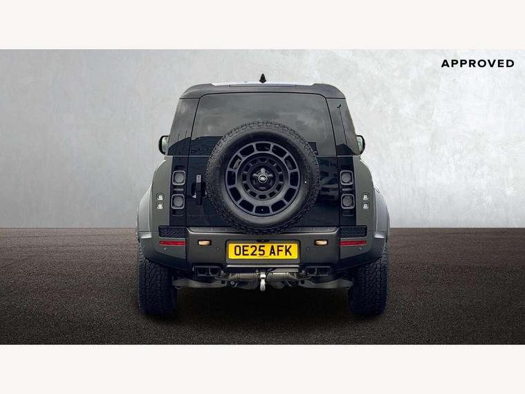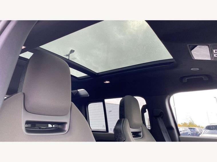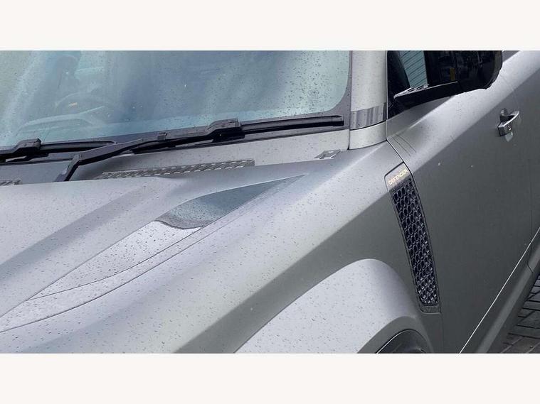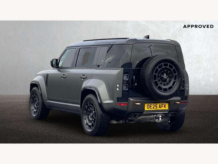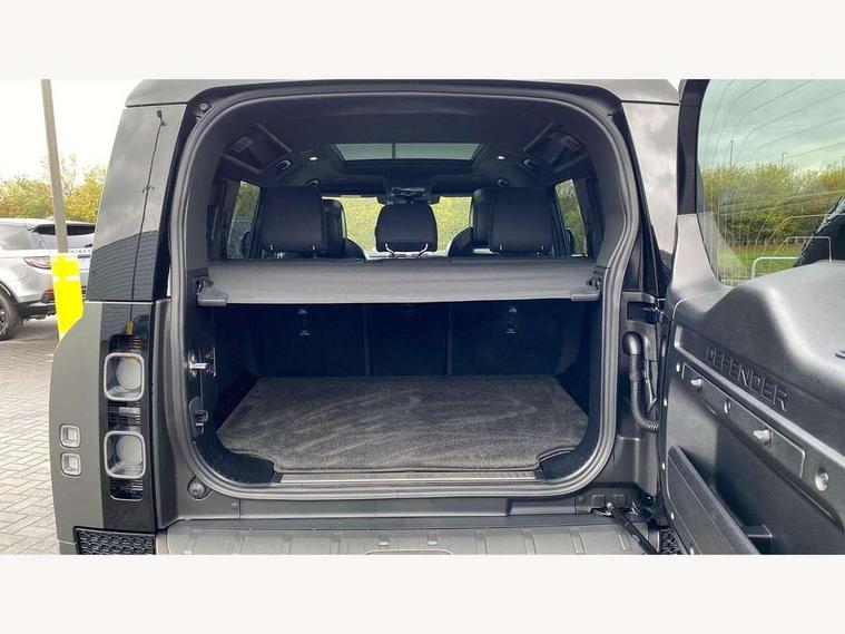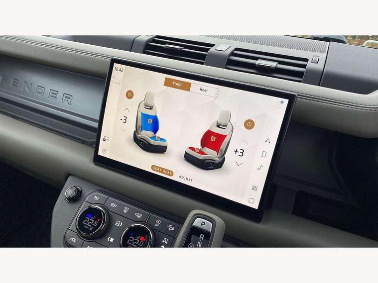 1 x USB-C (power only) & 1 x USB-C (power & data) in Row 1, 2 x USB-C in Row 2, 11.4" touchscreen, 360 degree parking aid, 3D Surround Camera with 360 View, 180 Rear View, Front Traffic Detection, Forward Vehicle Guidance, Tow Hitch Assist and clear sight Ground View, Adaptive cruise control, Android Auto, Apple CarPlay, Blind spot assist, Bluetooth system, Brake pad wear indicator, Clear exit monitor, Configurable programs, Connected navigation pro, Driver condition monitor, Electric power assisted steering (EPAS), Garage door opener (Homelink), Head up Display, Interactive driver display, Lane keep assist, Push button start, Rear collision monitor, Rear traffic monitor, Traffic sign recognition with adaptive speed limiter, Trip computer, Wade Sensing, Wireless device charging, 6D Dynamics, 8 speed automatic transmission, All terrain progress control, All wheel drive system, Electronic active differential with brake torque vectoring, Terrain Response 2 with dynamic program, Twin speed transfer box, DAB Radio (Digital Audio Broadcasting), Meridian 700w surround sound audio system with 15 speakers, Pivi pro connected, Advanced tow assist, Automatic headlight levelling, Automatic headlights, Black contrast roof, Black contrast tail door, ClearSight interior rear view mirror, Darkened LED tail lights, Electric heated/power fold door mirrors with approach lights and auto dimming driver side, Electric windows with one touch open/close and anti-trap, Follow me home lighting, Front fog lights, Graphite front undershield, Headlamp power wash, Heated rear window with timer, Heated washer jets, Heated windscreen, Illuminated metal treadplates with brand name script, LED 3rd brake light, Matrix LED headlights with signature DRL, Octa badge, Phosphor bronze exposed rear recovery eyes, Privacy glass, Puddle lights, Rain sensing windscreen wipers, Rear fog lights, Rear side wing doors, Rear wiper, Satin black exhaust finisher, Side hinged tailgate, Signature graphic (with interior storage), Sliding panoramic roof, Solar attenuating windscreen, Trailer stability assist, 12V power socket in loadspace, 14 way heated and cooled electric memory performance front seats, 3 seat bench in 2nd row, 40:20:40 folding, heated rear seats with centre armrest, Air quality sensor, Alpine lights, Body and soul seat, Bright metal pedals, Cabin Air Purification plus, Chopped carbon fibre seatback, Configurable cabin lighting, Domestic plug socket, Durable rubber cabin flooring, Durable rubber loadspace flooring, Edge illuminated paddle shifters, Electric cabin pre conditioning, Electric reach + rake adjustable steering column, Electrically adjustable steering column, Footwell lights, Front centre console refrigerator compartment, Front head restraints, Front passenger isofix child seat attachment, Heated steering wheel, Loadspace cover, Loadspace Hook, Multifunction steering wheel, No flat load floor storage, Overhead stowage for sunglasses, Rear headrests, Rear ISOFIX, Rear reading lights, Signature carpet mats, Signature interior upgrade, Single front passenger seat, Soft close tail door, Standard seat configuration, Storage glovebox, Sunvisors with illuminated vanity mirrors, Three-zone Climate Control with Rear Cooling Assist, Twin front cupholders, Chopped carbon fibre exterior pack - Defender, Non-smoker package, Online pack with data plan - Defender, 5 x 3 point seatbelts, ABS, Brake hold function, Cornering brake control (CBC), Cross car beam in metallic grey powder coat brushed finish, Customer configurable autolock, Driver and passenger airbags, DSC - Dynamic Stability Control, EBD - Electronic brakeforce distribution, Electric parking brake (EPB), Emergency brake assist, Emergency braking, ESP + traction control, Front airbags with passenger seat occupant detector, HDC - Hill descent control, Hill launch assist, Low traction launch, Phosphor bronze front brake calipers, Power operated child locks, Remote for (e-Call, Optimised assistance call, InControl app, Climate, beep and flash and door), RSC - Roll stability control, Seat belt reminder, TPMS (Tyre pressure monitoring system), Alarm, Immobiliser, Intrusion sensor, Keyless entry, Locking wheel nuts, Secure tracker pro, Chopped carbon fibre finisher,